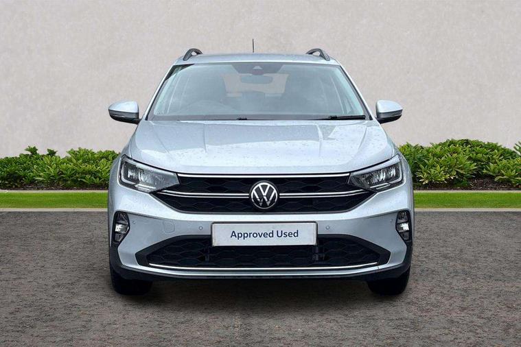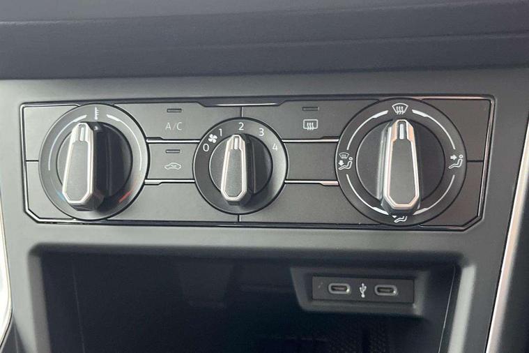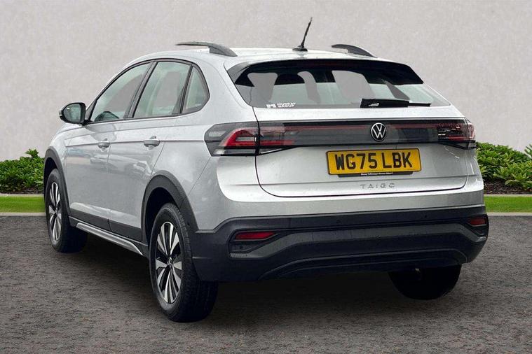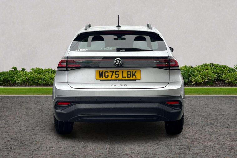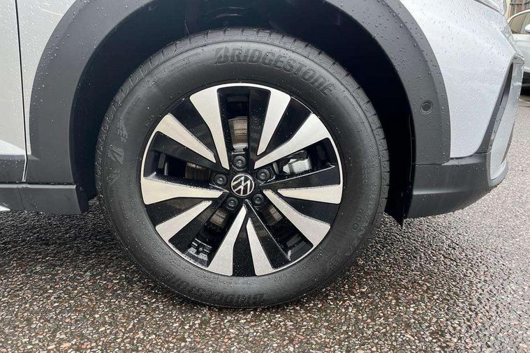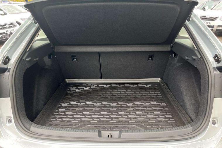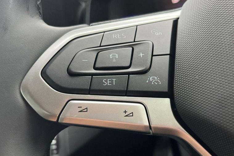 8" Digital cockpit basic display, Advanced driver attention and drowsiness monitor, Dynamic road sign display, e-Call (emergency call), Power Steering, Predictive adaptive cruise control, Travel assist including emergency assist, Washer fluid level indicator, Wireless Charging including Bluetooth, Start-stop system with battery regeneration (recuperation - energy recovery during braking), Digital radio reception (DAB+), WeConnect plus, Ambient lighting with logo projection, Aspherical driver's exterior mirror, Auto headlights, Body coloured bumpers, Body coloured exterior mirror housings and door handles, Electric windows, External USB type C socket and charging sockets, Heat insulating glass windscreen, LED rear combination lamp, LED third brake light, Left convex exterior mirror, Power folding adjustable/heated exterior mirrors and front passenger exterior mirror lowering function, Rear fog light on one side, reversing light on both sides, Rear side wing doors, Rear wash/wipe with intermittent wipe setting, 'Slash/ Austin' Cloth upholstery, 12V socket in centre console, 2 front reading lights, 3 rear head restraints, 3 seat bench in 2nd row, Black carpets, Child seat anchor for child seat system i-Size, 2x top tether and child seat anchor in front on front passenger side, Door and side trim panels in titan black, Driver and front passenger seat height adjustment, Front centre armrest, Handbrake lever handle in leather, Height and reach adjustable steering wheel, Leather trimmed gear knob, Leather wrapped multifunction steering wheel, Luggage compartment floor, Luggage compartment light, Lumbar support for driver's and front passengers seat, Seat covers in titanium black, Single front passenger seat, Split folding backrest with centre armrest and unsplit rear seat bench, Storage compartment under front seats, Sun visors with illuminated vanity mirrors, Chrome Package - Taigo, Drivers assistance pack - Taigo, Light and Sight pack including High beam assist - Taigo, 2 x 3-point seatbelts/outer rear seats with ECE label, 3-point seat belts in front with pretensioner and height adjustment, 3-point seatbelt for centre rear seat, Adaptive driver and front passenger airbags with passenger airbag deactivation function, Driver and front passenger airbags with front passenger airbag de-activation, front side and curtain airbags, Driver and front passenger safety-optimised head restraints, Electronic stability control, Extended and predictive pedestrian/ cyclist protection, Front and rear disc brakes, Front curtain and side airbags with center airbag, Hill start assist, Manual rear child locks, Single tone horn, Tyre pressure loss indicator, Anti-theft alarm system with interior monitoring, backup horn, and towing protection, Lava stone black gloss/matt decorative inserts in dash and front door panels, Low rolling resistance tyres,