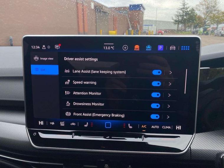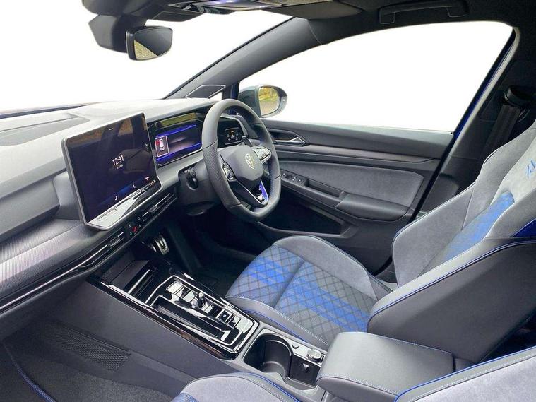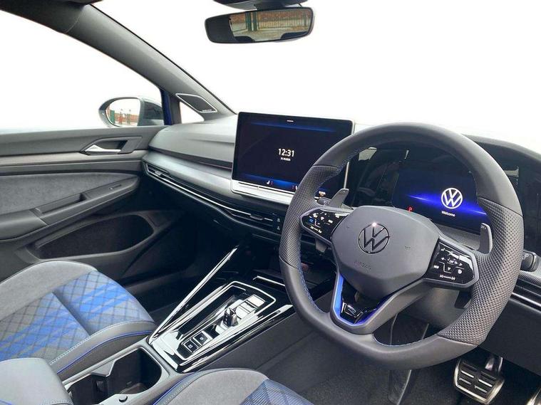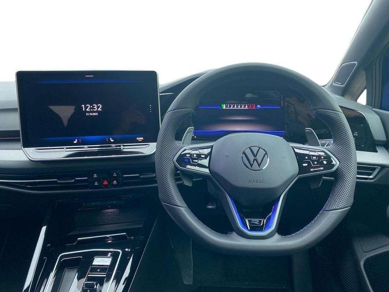 Activated carbon canister, Adaptive cruise control (ACC), Advanced driver attention and drowsiness monitor, Dynamic road sign display, E-Sim card for online connectivity, eCall emergency call system, Electronic maximum speed limit increased to 270 km/h, includes driving Modes 'drift' and 'special', larger roof spolier and GPS laptimer + G-Meter, Multi-color Digital cockpit pro, selection of different info profile possible, Multifunction front facing camera for distance control, Navigation system, Oncoming vehicle braking when turning including swerve support, Progressive steering, Side assist blind spot lane change system, rear traffic alert and exit warning system, Speed limiter, Speedo, rev counter, electronic odometer, trip, service interval display, exterior temperature and fuel gauge, Traffic jam assist, Voice enhancer and voice control, Warning signal and warning light for front and rear seatbelts not fastened, We connect plus preparation, We connect preparation, Wireless app connect, All wheel drive - 4Motion, Petrol Particulate Filter, Start-stop system with battery regeneration (recuperation - energy recovery during braking), XDS electronic differential lock for improved traction and handling, 2 USB C ports in front, 2 USB charging sockets on the centre console in the rear charging capacity upto 45W, Digital radio reception (DAB), Diversity antenna for FM reception, Gaming platform via car app, Infotainment system with 12.9" display, Mobile phone interface with inductive charging feature, 3rd brake light, Auto dimming rear view mirror, Automatic headlamp activation with Coming home and Leaving home feature, Black badge on B-pillar, Black mirror caps, Black strips on radiator grille and headlights, Body colour door handles, Darkened headlights, Darkened R Logos and VW logos in front, rear and on fender, Exterior mirrors convex on the left and aspherical on the right, Front and rear electric windows, Front fog lamps and cornering light, Heat insulating windshield made of laminated glass, Illuminated lighting animation with wake up/goodbye scenario, LED matrix headlights with ambient light V2, advanced high beam, dynamic range contol with cornering, LED rear lamp with indicator, poor weather, LED separate daytime running light, Light assist with High beam control, R name plate, Rain sensor, Rear fog light on one side and reversing lights on both sides, Rear side wing doors, Rear tinted glass 65% light absorbing from B pillar backwards, Rear windscreen washer and wiper with interval delay, Remote electrically foldable door mirrors, puddle lights and reverse activated passenger's door mirror, Welcome light with surround lighting, 12V socket in front centre console, 12V socket in luggage compartment, 3 rear head restraints, 3 seat bench in 2nd row, 30 colour ambient lighting, illuminated center console storage compartment in front, Air care climatronic 3 Zone automatic climate control with rear air conditioning control panel, Aluminium gearshift handle, Brushed stainless steel pedals, Chrome plated radiator grille inserts, air vent surrounds and light switch surrounds, Entry lights, Front + rear black carpet mats, Front centre armrest, Integrated front head restraints, ISOFIX anchors for child seats on outer rear bench seats and on front passanger seat compatible for i-Size, Luggage compartment lighting, Rear cupholder and loadthough, Single front passenger seat, Soul black instrument panel, Soul black roof lining, Split folding backrest with centre armrest and unsplit rear seat bench, Sun visors with illuminated vanity mirrors, Driver assistance pack - Golf Estate/Hatchback Auto, R styling pack - Golf, Technology park and comfort pro package - Golf Hatchback, 3 point height adj front seatbelts + pretensioners, 3 rear three point seatbelts, ABS, Autonomous emergency braking front assist with pedestrian and cyclist monitoring, Child locks on rear doors, Driver and front passenger airbag with front passenger airbag deactivation, Electronic parking brake with auto hold, ESC (Electronic Stability Control), Extended pedestrian protection measures, Front and rear black brake calipers with darkened R-logo, Hill start assist, Rear disc brakes, Two tone horn, Tyre pressure loss indicator, Volkswagen roadside assistance, Anti theft wheel bolts, Preparation for alcohol interlock, Sporty vehicle dynamics, Tool kit for tyre mobility set, Tyre mobility kit Includes 12V compressor and tyre sealant, Wheel hub cover with darkened R-logo,