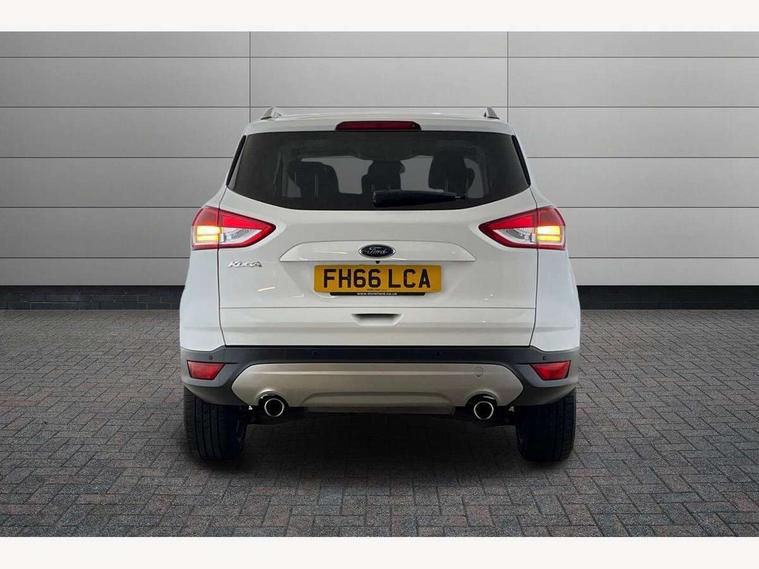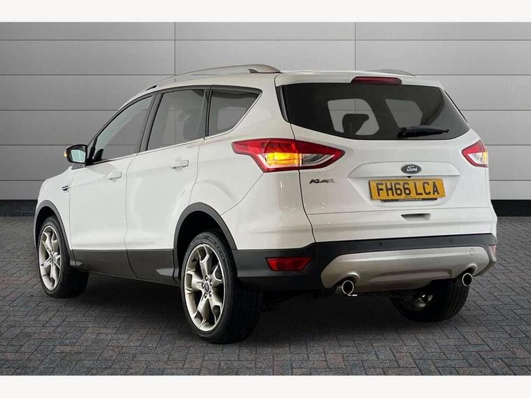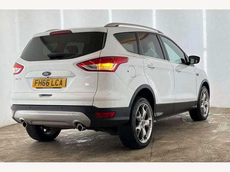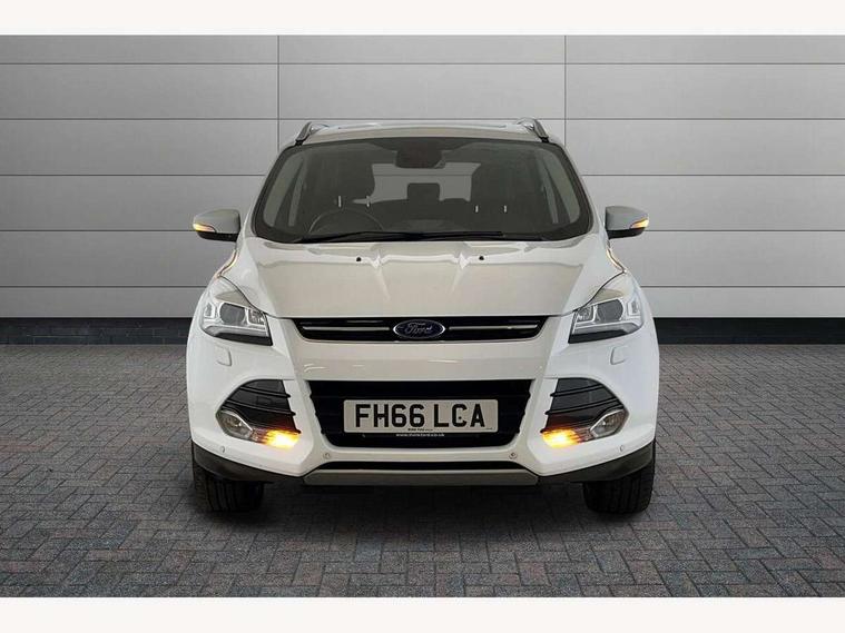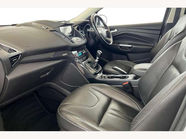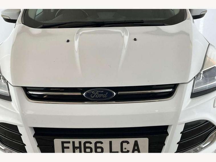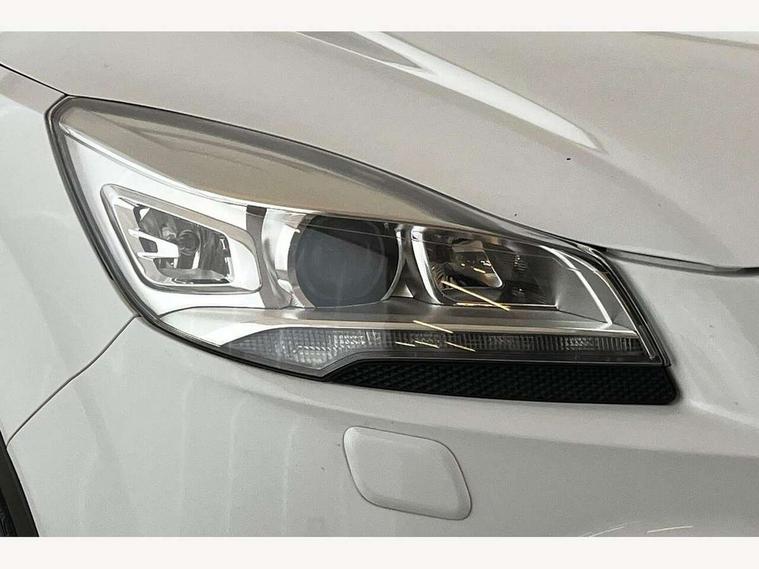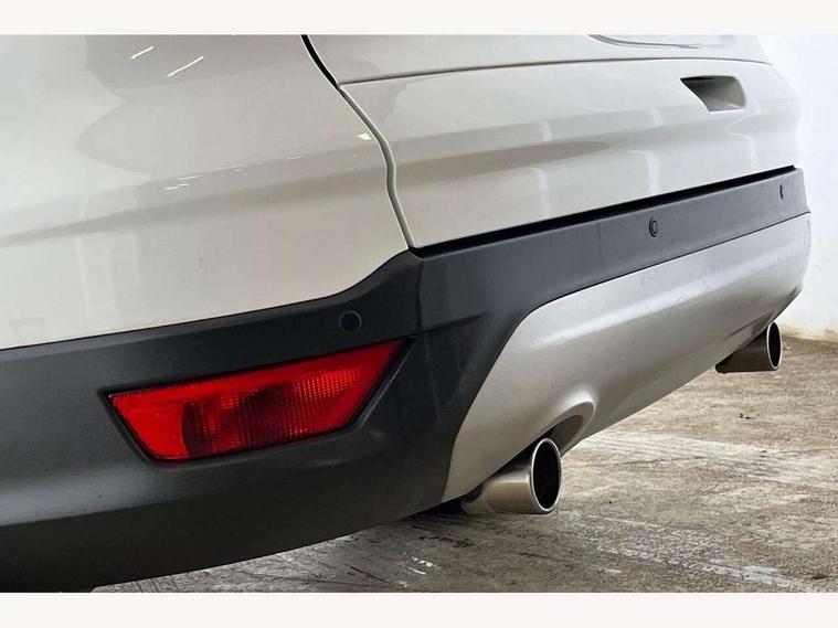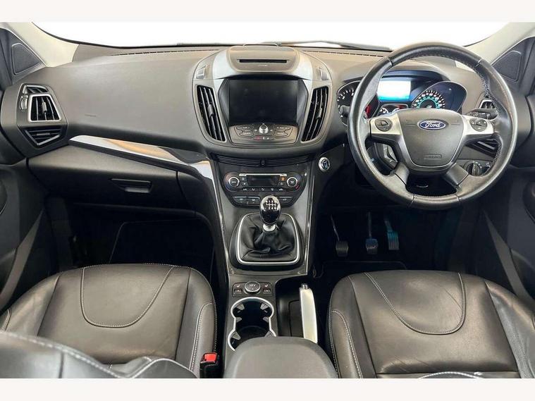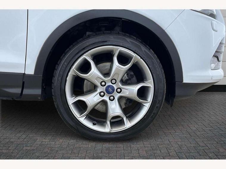 'Ford Power' starter button, Active park assist, EPAS, Ford SYNC bluetooth connection with advanced voice control and USB port, Front and rear parking sensors, Power tailgate, Premium SYNC 2 nav system with DAB, rear view camera + 9 speakers, SYNC Emergency Assistance, Trip computer, Auxiliary socket for external device, Remote audio controls on steering wheel, 'Quickclear' heated windscreen/heated washer jets, Auto dimming rear view mirror, Automatic headlights, Bi-Xenon headlights and headlight washers, Body colour bumpers, Body colour front/rear/side skirts, Body colour rear spoiler, Electric front and rear windows + one touch + global open/closing, Electrically heated door mirrors, Front fog lights, LED daytime running lights, Panoramic opening glass sunroof, Rain sensor windscreen wipers, Rear diffuser, Rear privacy glass, Scuff plates, Silver roof rails, Tailgate wash/wipe, Twin exhaust pipes, 10 way electric adjustable drivers seat, 2nd row air vents, 2nd row seat back tables, 4 spoke leather steering wheel with silver accents, 6 way manually adjustable passenger seat, 60/40 split/folding rear back and cushion, Advanced multicolour ambient light and LED interior light, Auxiliary power socket in luggage area, Centre console with stowage tray/bottle holder/CD stowage/front and rear 12V power point, Driver/front passenger manual lumbar adjust, Driver/passenger front seatback pockets, Driver/passenger seats fore/aft adjustment, Dual electronic automatic temperature control, Folding rear centre armrest with storage compartment + cupholders, Footwell courtesy lights front and rear, Front head restraints, Front overhead courtesy lights with theatre style dimming and delay, Front seatback folding tables, Front/rear floor mats, Front/rear reading lights, Heated front seats, Isofix system on outer rear seats, Leather gearknob, Reach + rake adjustable steering column, Rear head restraints, Sports style front seats, Stowage unit in upper instrument panel, Tie down hooks, Tonneau cover, Variable intensity instrument illumination, Appearance pack - Kuga, Convenience pack - Kuga, 3 point seatbelts on all 3 rear seats, ABS/EBD, Driver and passenger airbags, Driver and passenger side airbags, Electric traction assist system, ESP+EBA, Front and rear curtain airbags, Hill start assist, Intelligent Protection System (IPS), Roll stability control, Tyre pressure monitoring system, Immobiliser, Keyless Start, Locking wheel nuts, Remote central locking, Thatcham Cat 1 volume sensing perimeter alarm, 19" 5x2 spoke alloy wheels, Mini steel spare wheel,