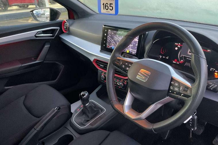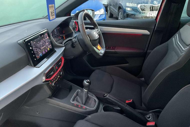 'Lights On' Reminder warning buzzer, 8" Digital cockpit, 9.2" touchscreen navigation system with type C USB socket, Voice control and DAB/AM/FM radio, Auto start and stop system, Bluetooth audio streaming with handsfree system, Digital clock, E-call, Full link smartphone integration with mirror link, wireless apple carplay, Google android auto + USB Type C cable for apple and android devices, Lane assist, Low fuel warning light, Outside temperature gauge, Power Steering, Rear parking sensor, Seat connect plus with safety, service, remote and online, SEAT logo boot release, Speed limiter, Traffic sign recognition, Trip computer, Sports suspension, Auxiliary input socket, Radio/MP3 player, SD card slot, Steering wheel mounted controls, Anti theft roof antenna, Auto dimming rear view mirror, Automatic rain sensing wipers, Black door mirror caps, Body colour bumpers, Body colour door handles, Brilliant black window surrounds, Dark tinted rear windows, Electric adjustable/heated/folding door mirrors, Electric front windows, Electric headlight adjustment, Electric rear windows, Front/rear fog lights, FULL LED automatic headlights with dynamic headlight range control, coming and leaving home, LED daytime running lights, LED tail lights, Rear roof spoiler with FR twin exhausts, Rear side wing doors, Rear wiper, Third brake light, 3 seat bench in 2nd row, 60/40 split folding rear seat, Ambient interior lighting, Chrome detailing and black headlining, Cloth upholstery, Dual zone climate control with combination filter, Front courtesy lights, Front cupholders x 2, Front reading lights, Gear shift indicator, Glovebox, Height adjustable front and rear headrests (five), Height adjustable front seats, Height/reach adjust steering wheel, Illuminated air vent surrounds, Illuminated boot, Instrument lighting with brightness control, Isofix, Leather multifunction flat bottomed sports steering wheel, Passenger sunvisor, Single front passenger seat, Sports seats, Sunvisors with mirror and driver side card holder, Safety and driving pack (S) - Ibiza, 3 point seatbelts on all 3 rear seats, ABS, Active front headrests, Child locks on rear doors, Electronic stability control, Energy recovery system, Front driver and passenger side airbags with curtain airbag and front passenger airbag deactivation, Hill hold control, Multi-Collision braking, Seat belt reminder for front and rear seats, Tiredness recognition system, Tyre pressure monitoring system, Electronic engine immobiliser, Locking wheel bolts, Perimeter alarm and interior monitoring inc.backup horn, tow away protection and electronic engine immobiliser, Remote central locking + deadlocks, 17" Alloy wheels in Brilliant silver,