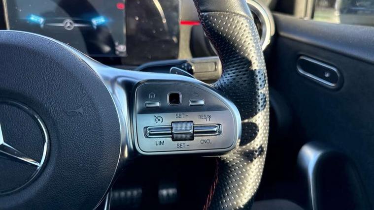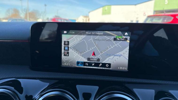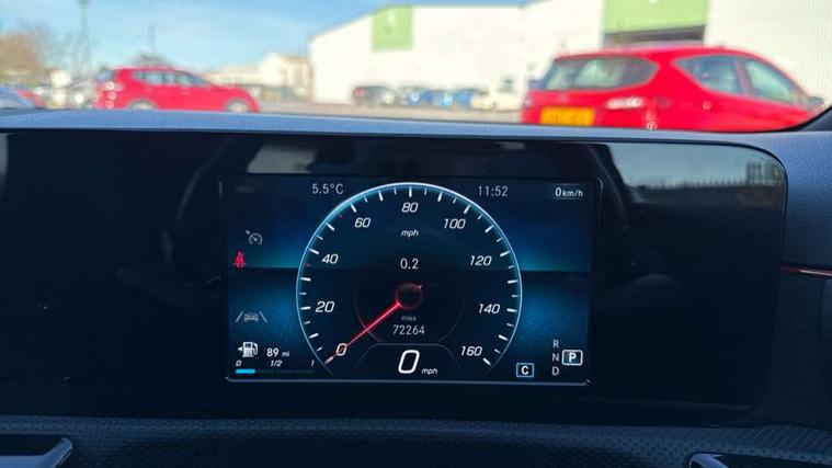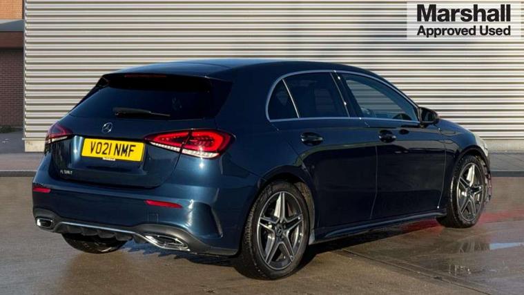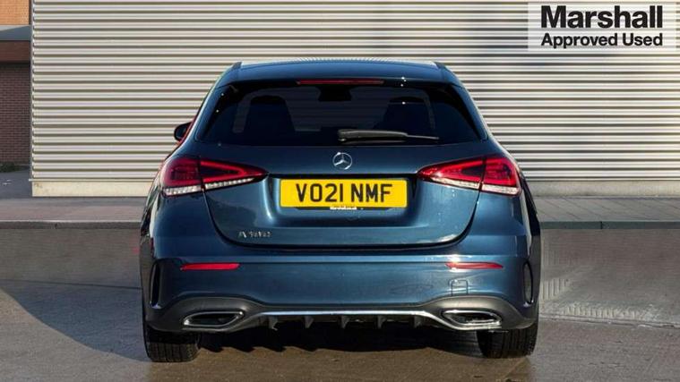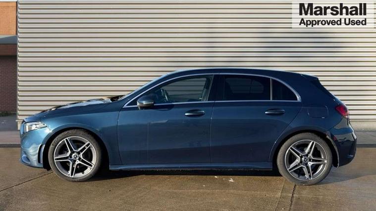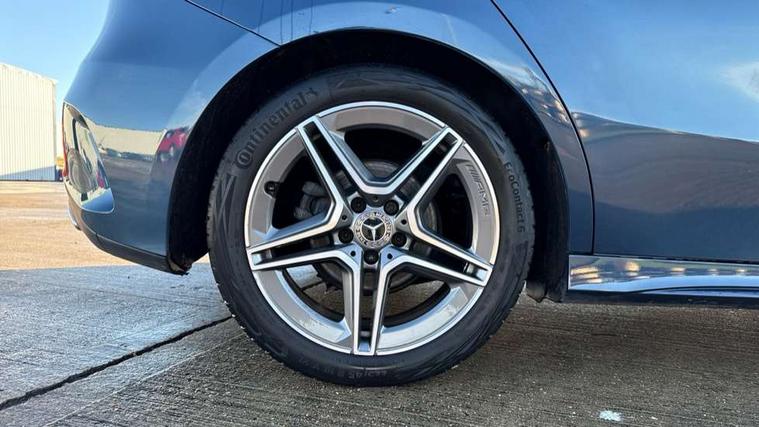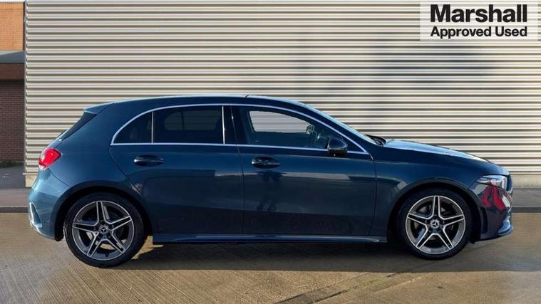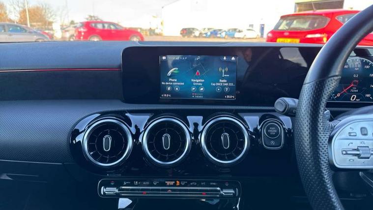 180 degree rear view camera with parking guidelines, 7" colour screen in instrument panel, 7" touchscreen media display, Attention assist, Brake pad wear indicator warning light, Car wash mode, Cruise control + speed limiter, Direct steering, Dual bluetooth interfaces, DYNAMIC SELECT with a choice of driving modes (ECO, Comfort, Sport and Individual), ECO start/stop function, Fluid level warning indicator for fuel, oil, coolant and washer fluid, Hard-disk navigation, Hey Mercedes Voice activation, Lamp failure indicator, Mercedes me connect including emergency call system, accident recovery, breakdown and maintenance management, Mercedes me remote services, Outside temperature gauge, Owners manual in English, Pre-installation for private car sharing, Preinstallation for Mercedes Benz link, Service indicator (ASSYST), Speed sensitive power steering, Trip computer, Lowered comfort suspension, Rear axle torsion beam, 2 USB ports (type C) in rear stowage compartment and one in front of center console, 6 speakers, DAB Digital radio, MBUX multimedia system with DAB digital radio and touchpad including satellite navigation, Mercedes-Benz sound system - 100W, 4 Electric Front and Rear windows, Adaptive brake lights, AMG bodystyling - Front apron with splitter in chrome, rear apron with chrome trim and chrome visible trim elements in tailpipe, Black weather strip, Body colour bumpers, Body colour door handles, Body colour side skirt, Body coloured door mirrors, Chrome beltline trim, Diamond radiator grille with chrome pins and silver louvre + chrome insert, Electric adjustable and heated door mirrors with integrated LED side indicators, Exhaust system - Twin visible tailpipes in polished stainless steel, Headlamp assist automatic headlamp activation, Heated glass rear windscreen + timer control, LED high performance headlamps with integrated LED daytime running lights, LED tail lamp, LED third brake light, Privacy glass, Radio aerial, Rain sensing windscreen wipers with two sensitivity settings, Rear fog lights, Rear wiper, Window line trim strip in chrome, 3 Spoke flat bottom leather multi function steering wheel with perforated leather in grip area, 40:20:40 split folding rear seats, Artico man-made leather/Microfibre Dinamica upholstery with red contrast stitching, Auto Mercedes-Benz child seat recognition sensor, Black air vents with surround in silver chrome, Black roof lining, Brushed stainless steel sports pedals with rubber studs, Controller on centre console with chrome surround, Floor mats with stitched edging and AMG lettering, Front centre armrest with storage compartment, Front door sills with Mercedes Benz lettering, Front seat backs luggage nets, Front seat cushion length adjustment, Galvanished gear shift paddles on steering wheel, Heated front seats, Height/reach adjustable steering column, Interior mirror with reading lamps in black and frameless, Manual height adjustable front seats, Rear head restraints, Seat occupancy sensor for front passenger seat, Sports seats with integrated headrests, Stowage compartment in centre console with retractable cover, Sunvisors with illuminated vanity mirrors, Touchpad on center console, Twin front cupholders, Two zone thermotronic luxury automatic climate control, Light and sight pack - A Class, Seat comfort pack - A Class, 3 rear 3 point seatbelts, ABS with Brake Assist, Active bonnet, Active brake assist includes forward collision warning system with autonomous braking, Adaptive brake assist with hold function and hill start assist, Black seatbelts, Childproof locks manually operated for rear doors and electrically operated for rear power windows, Crash responsive emergency lighting, Driver and passenger head and side airbags, Drivers knee airbag, Dual stage driver/passenger airbags, Electronic parking brake, ESP curve dynamic assist, ESP with ASR, Front and rear seatbelt reminder, Front brake callipers with Mercedes Benz lettering, ISOFIX and top tether child seat fixing points in two outer rear seats, Tyre pressure monitoring system, Warning triangle and first aid kit, Window airbags, Alarm system/interior protection/immobiliser, Keyless Go, Remote central locking and crash sensor with emergency opening function, Urban guard vehicle protection system with immobiliser and interior protection, Dinamica microfibre trim in black, 18" AMG 5 twin spoke light alloy wheels in titanium grey with highsheen finish, Summer tyres, Tirefit sealant kit,