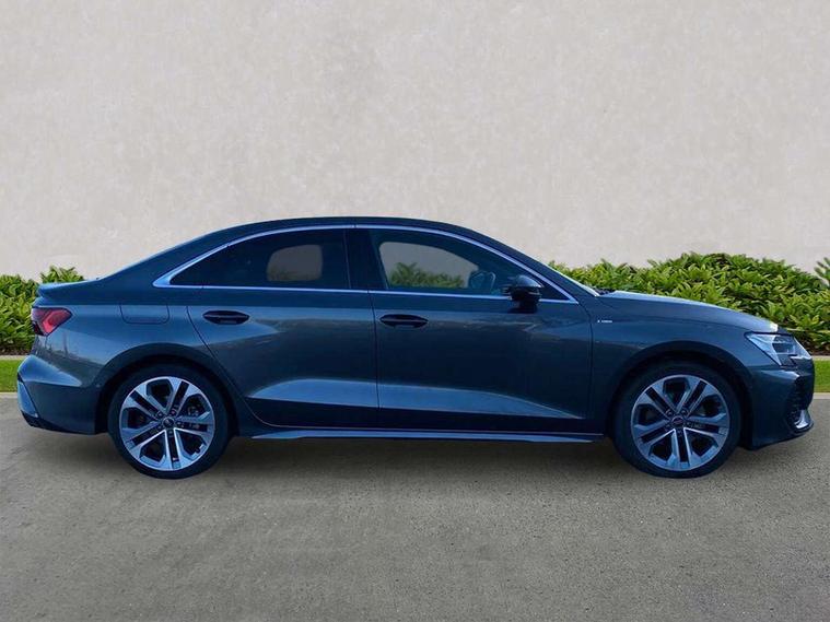 Adjustable speed limiter, Audi drive select, Audi smartphone interface with app store includes wireless Apple carplay, Android auto and Amazon alexa integration, Audi virtual cockpit plus - 12.3" full HD resolution dynamic digital instrument cluster, Automatic start/stop system with recuperation, Bluetooth interface, Camera based traffic sign recognition, Collision avoidance assistant, Cruise control, Distraction and Fatigue warning, e-Call (emergency call), Electromechanical power speed sensitive steering, Emergency assist, Lane departure warning system, MMI Navigation Plus with high resolution 10.1" colour touch screen display, Park Assist with parking system Plus, Service indicator, Trip computer, Voice control system with natural language interaction, Sports suspension, Audi Phonebox light with wireless charging, Audi sound system - 10 loudspeakers including centre loudspeaker and subwoofer, DAB Digital radio, USB ports with charging function in the rear, Acoustic glass windscreen, All weather light, Aluminium window trim, Auto dimming frameless rear view mirror, Automatic dynamic range control, Body colour exterior mirrors, Chrome exhaust tailpipes, Dipped beam, main beam, position light and turning light, Electrically adjustable/heated/folding/auto dimming door mirrors with integrated LED indications + kerb view function for passenger side, Exterior model badging, Front and rear side air inlets in grained matt black with dark liquid chrome frame, Front electric windows, Front radiator grill in high gloss dark chrome, Heat insulating glass windscreen, Illuminated door sills with aluminium inserts at the front with S logo, Intersection light, LED 3rd brake light, LED brake lights, LED daytime running x3, LED headlights with LED rear lights and dynamic rear indicators, LED rear number plate lights, LED reverse light, LED tail lights, Light and rain sensors, Manoeuvring light, Motorway light, Privacy glass - dark tinted rear window, rear door and side windows, Rear boot, Rear diffuser and grill in grained matt black with inlay in dark liquid chrome, Rear electric windows, Rear side wing doors, S line bumpers, Side S line emblems on front wings, Side sill trim in dark liquid chrome, Static cornering light, 12V socket and storage compartment in front centre console, 3 seat bench in 2nd row, 3 spoke flat bottomed leather multifunction sport steering wheel with gear shift paddles, 3-zone deluxe automatic air conditioning, 4 way electrically adjustable lumbar support for driver and front passenger, 40/20/40 split folding rear seat bench, Black cloth headlining, Black front and rear floor mats, Front and rear centre armrest in artificial leather with contrasting stitching on armrests and instrument panel, Front and rear headrests, Heated front seats, Height and reach adjustable steering wheel, Manual boot compartment lid, Manually adjustable front seats, Rear centre armrest with cupholder, S badging on the steering wheel, Seat side bolsters, Single front passenger seat, Stainless steel pedals and front footrest in black, Twin leather upholstery with front sports seats S embossed logo, Aluminium interior elements pack - A3, Multi-coloured LED interior lighting package with Multi-coloured contour lighting of instrument panel - A3, 3x3 point rear seat belts, Driver and front passenger airbag with passenger airbag deactivation, Electronic Stabilisation Control (ESC) including ABS, ASR and EDL, First aid kit with warning triangle and 2 safety vests, Front side airbags with head airbags and interaction airbag, Hill hold assist, Pre-sense front with pedestrian and cyclist detection, Seatbelt monitoring, Tyre pressure loss indicator, Anti theft alarm, Anti-theft wheel bolts, Electronically operated child locks, Immobiliser, Remote central locking with safelock, Black dashboard, Inlay in dark aluminium spectrum,