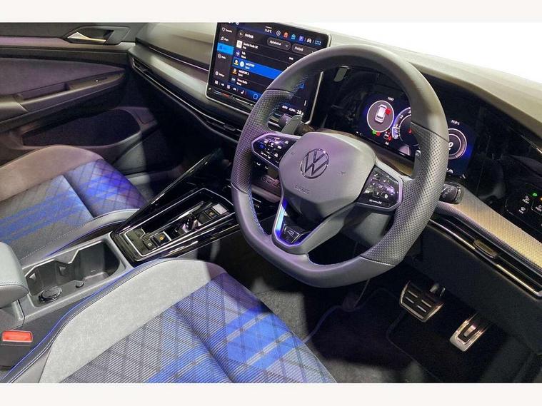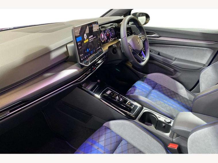 Activated carbon canister, Adaptive cruise control (ACC), Advanced driver attention and drowsiness monitor, Dynamic road sign display, E-Sim card for online connectivity, eCall emergency call system, Electronic maximum speed limit increased to 270 km/h, includes driving Modes 'drift' and 'special', larger roof spolier and GPS laptimer + G-Meter, Multi-color Digital cockpit pro, selection of different info profile possible, Multifunction front facing camera for distance control, Navigation system, Oncoming vehicle braking when turning including swerve support, Progressive steering, Side assist blind spot lane change system, rear traffic alert and exit warning system, Speed limiter, Speedo, rev counter, electronic odometer, trip, service interval display, exterior temperature and fuel gauge, Traffic jam assist, Voice enhancer and voice control, Warning signal and warning light for front and rear seatbelts not fastened, We connect plus preparation, We connect preparation, Wireless app connect, All wheel drive - 4Motion, Petrol Particulate Filter, Start-stop system with battery regeneration (recuperation - energy recovery during braking), XDS electronic differential lock for improved traction and handling, 2 USB C ports in front, 2 USB charging sockets on the centre console in the rear charging capacity upto 45W, Digital radio reception (DAB), Diversity antenna for FM reception, Gaming platform via car app, Infotainment system with 12.9" display, Mobile phone interface with inductive charging feature, 3rd brake light, Auto dimming rear view mirror, Automatic headlamp activation with Coming home and Leaving home feature, Black badge on B-pillar, Black mirror caps, Black strips on radiator grille and headlights, Body colour door handles, Darkened headlights, Darkened R Logos and VW logos in front, rear and on fender, Exterior mirrors convex on the left and aspherical on the right, Front and rear electric windows, Front fog lamps and cornering light, Heat insulating windshield made of laminated glass, Illuminated lighting animation with wake up/goodbye scenario, LED matrix headlights with ambient light V2, advanced high beam, dynamic range contol with cornering, LED rear lamp with indicator, poor weather, LED separate daytime running light, Light assist with High beam control, R name plate, Rain sensor, Rear fog light on one side and reversing lights on both sides, Rear side wing doors, Rear tinted glass 65% light absorbing from B pillar backwards, Rear windscreen washer and wiper with interval delay, Remote electrically foldable door mirrors, puddle lights and reverse activated passenger's door mirror, Welcome light with surround lighting, 12V socket in front centre console, 12V socket in luggage compartment, 3 rear head restraints, 3 seat bench in 2nd row, 30 colour ambient lighting, illuminated center console storage compartment in front, Air care climatronic 3 Zone automatic climate control with rear air conditioning control panel, Aluminium gearshift handle, Brushed stainless steel pedals, Chrome plated radiator grille inserts, air vent surrounds and light switch surrounds, Entry lights, Front + rear black carpet mats, Front centre armrest, Integrated front head restraints, ISOFIX anchors for child seats on outer rear bench seats and on front passanger seat compatible for i-Size, Luggage compartment lighting, Rear cupholder and loadthough, Single front passenger seat, Soul black instrument panel, Soul black roof lining, Split folding backrest with centre armrest and unsplit rear seat bench, Sun visors with illuminated vanity mirrors, Driver assistance pack - Golf Estate/Hatchback Auto, R styling pack - Golf, Technology park and comfort pro package - Golf Hatchback, 3 point height adj front seatbelts + pretensioners, 3 rear three point seatbelts, ABS, Autonomous emergency braking front assist with pedestrian and cyclist monitoring, Child locks on rear doors, Driver and front passenger airbag with front passenger airbag deactivation, Electronic parking brake with auto hold, ESC (Electronic Stability Control), Extended pedestrian protection measures, Front and rear black brake calipers with darkened R-logo, Hill start assist, Rear disc brakes, Two tone horn, Tyre pressure loss indicator, Volkswagen roadside assistance, Anti theft wheel bolts, Preparation for alcohol interlock, Sporty vehicle dynamics, Tool kit for tyre mobility set, Tyre mobility kit Includes 12V compressor and tyre sealant, Wheel hub cover with darkened R-logo,