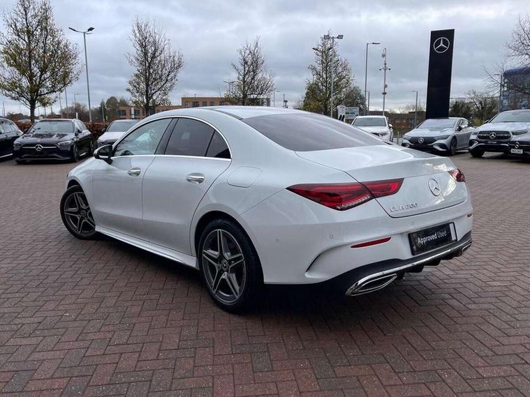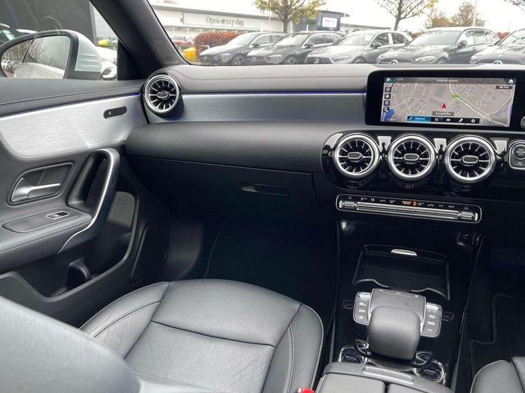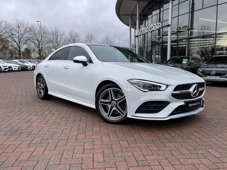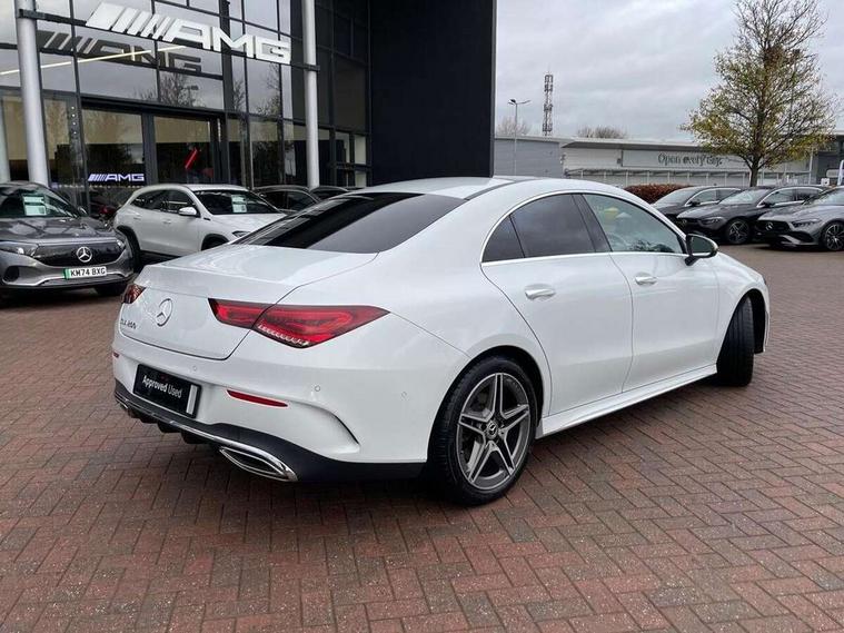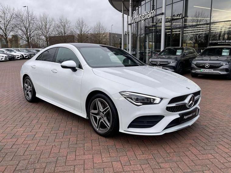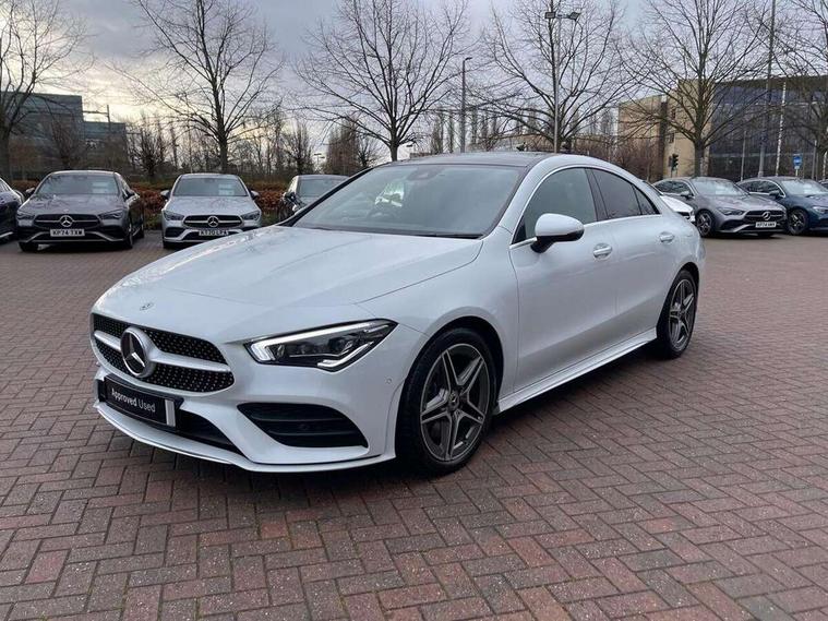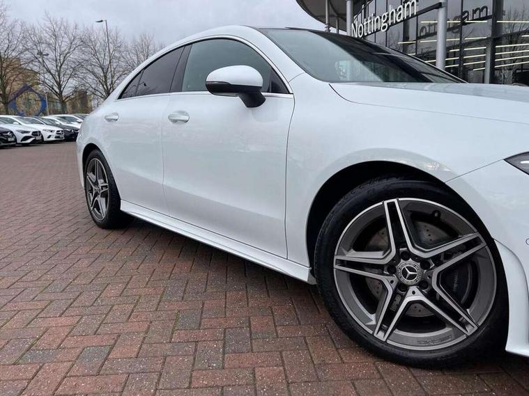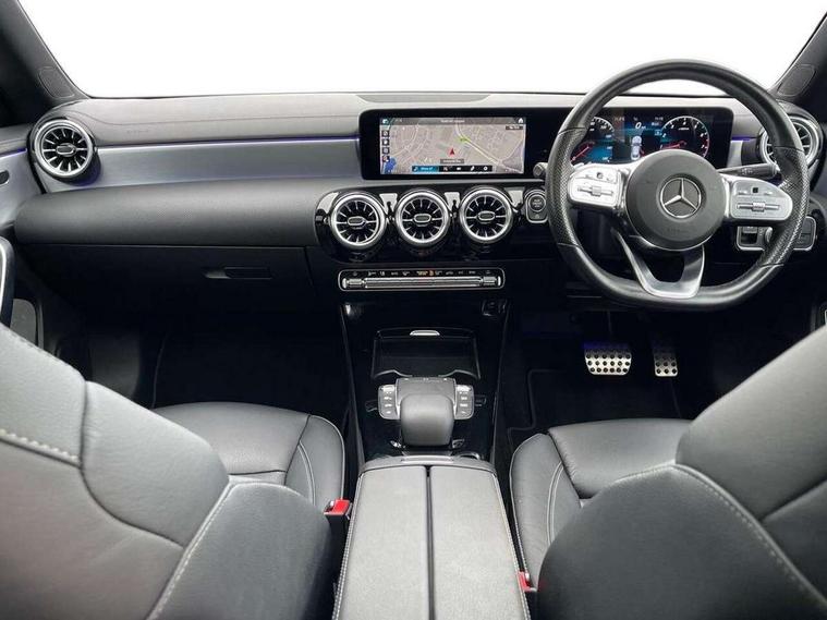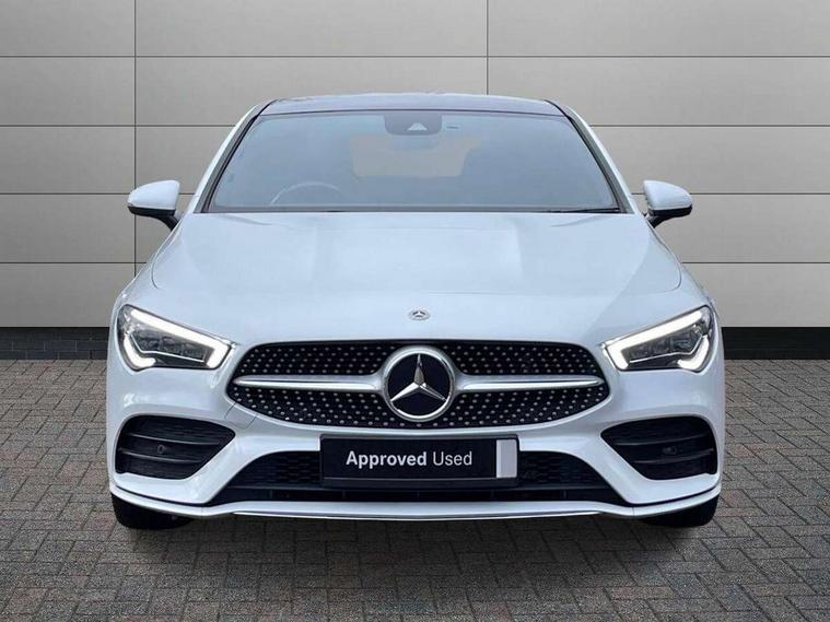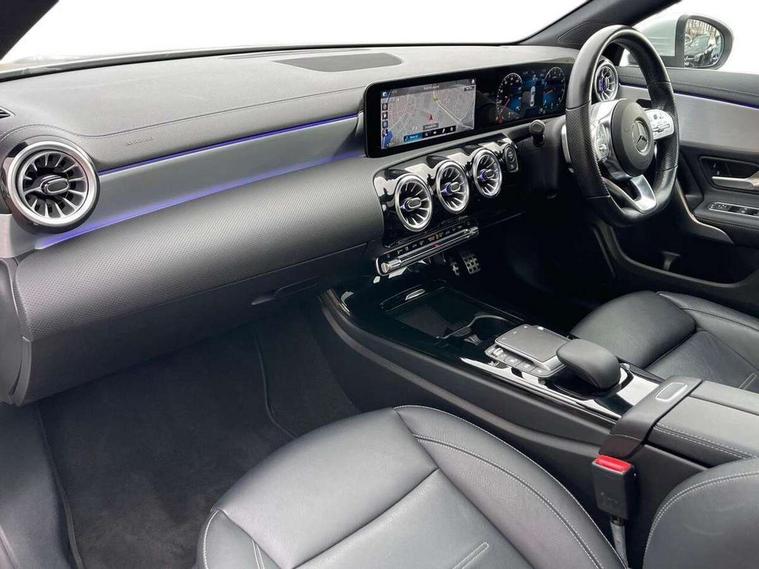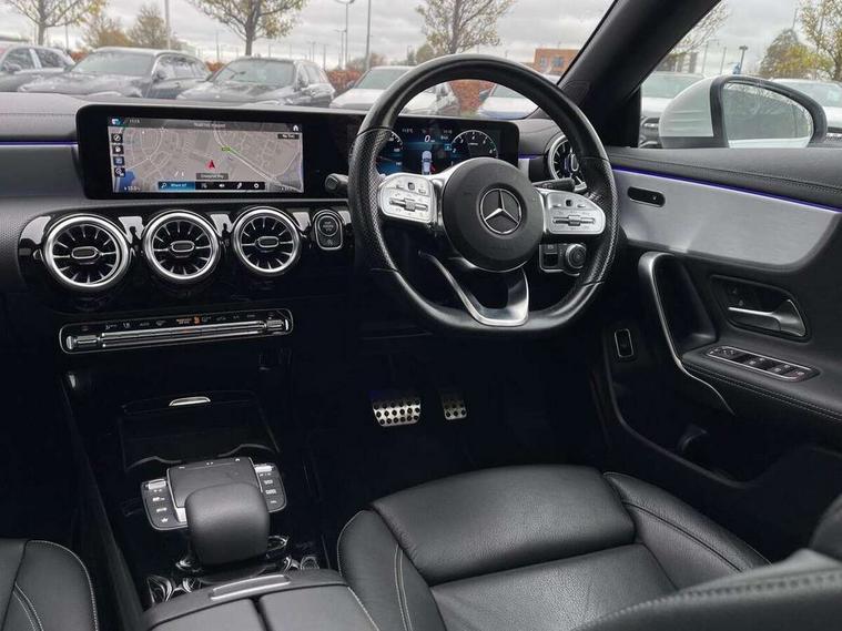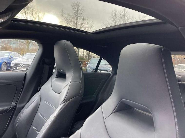 10.25 inch Instrument display with digital cockpit, 10.25 inch touchscreen central media display, Attention assist - Monitors steering behaviour and long journey fatigue, Bluetooth connection, Car wash mode, DYNAMIC SELECT with a choice of driving modes (ECO, Comfort, Sport and Individual), ECO start/stop function, Fluid level warning indicator for fuel, oil, coolant and washer fluid, Hard-disk navigation, Hey Mercedes Voice activation, Lamp failure indicator, Mercedes me connect including emergency call system, accident recovery, breakdown and maintenance management, Mercedes me remote services, Outside temperature gauge, Owners manual and service booklet in English, Pre-installation of private car share, Preinstallation for Mercedes Benz link, Radio aerial integrated into front and rear windshields, Service indicator (ASSYST), Smartphone integration with Apple CarPlay and Android auto, Traffic sign assist, Trip computer in multifunction display with current consumption indicator, 7G-DCT 7 speed automatic transmission, Lowered comfort suspension, Rear axle multi-link, DAB digital radio tuner, MBUX multimedia system with DAB digital radio and touchpad including satellite navigation, Mid-range sound system, USB (type C) ports (2) in stowage compartment and 1 in front of centre console, Adaptive brake lights, AMG body styling with AMG front apron and rear apron and visible exhaust tailpipe in chrome trim elements, AMG bodystyling side skirts, Auto headlights, Body colour bumpers, Body colour door handles, Chrome beltline strips, Chrome weather strip, Diamond radiator grille pins in chrome with silver painted louvres and chrome insert, Electric panoramic sliding sunroof, Electric windows, Electrically adjustable and heated door mirrors with integrated LED indicators, Exhaust system with 2 Visible tailpipe trim elements and rear apron with trim in chrome, Headlamp assist automatic headlamp activation, Heated glass rear windscreen + timer control, High level LED third brake light, Integrated LED daytime running lights, Interior mirror with black reading lamps and frameless, LED tail lamp, Multibeam LED headlamps with adaptive highbeam assist plus, Privacy glass with dark tinting on rear side windows and rear window, Rain sensing windscreen wipers with two sensitivity settings, Rear boot, Rear fog lamp, Rear side wing doors, Window line trim strip in chrome, 3 seat bench in 2nd row, 3 spoke flattened bottom nappa leather multifunction steering wheel with perforated leather in grip area, 40:20:40 split folding rear seat backrests, Air conditioning - Two zone thermotronic luxury automatic climate control with display, Air vents with surround in silver chrome, Automatic child seat recognition sensor, Black roof lining, Brushed stainless steel sports pedals with rubber studs, Floor mats with stitched AMG lettering, Front centre armrest with stowage, Galvanished gear shift paddles on steering wheel, Heated front seats, Illuminated front door sills with changeable cover, Illuminated glove compartment stowage, Interior lighting - 64 colour Ambient lighting, Luggage net on driver/front passenger seat backrest, Manually height and reach adjustable steering column, Rear armrest with two integral cup holders for drinks, Rear head restraints, Single front passenger seat, Sport seats with fixed head restraints, Stowage compartment in centre console with retractable cover, Sunvisors with illuminated vanity mirrors, Touchpad on center console, Twin front cupholders, Two outer rear seat isofix and top tether child seat fixing points, Keyless go pack - CLA, Light and sight pack - CLA, Mirror pack - CLA, Parking package - CLA, Seat comfort pack - CLA, Active bonnet pedestrain safety measure which detects an impact and raises bonnet by 65mm, Adaptive brake assist with hold function and hill start assist, Anti-lock braking system (ABS), Black seat belts, Bonnet with power domes, Brake pad wear warning indicator, Childproof locks manually operated for rear doors and electrically operated for rear power windows, Crash responsive emergency lighting, Driver and front passenger head and sidebags, Driver and front passenger windowbags, Drivers knee airbag, Dual stage driver and front passenger airbags, Electric parking brake, Electronic stability programme with acceleration skid control, ESP curve dynamic assist, Front and rear seatbelt reminder, Front passenger seat occupancy sensor, Three point rear seat belts, Tyre pressure monitoring system, Warning triangle and first aid kit, Remote central locking and crash sensor with emergency opening function, Urban guard vehicle protection system with immobiliser and interior protection, Light aluminium with longitudinal grain interior trim, 18" 5 twin spoke design alloy wheels painted in titanium grey with high sheen finish, Summer tyres, Tirefit tyre sealant kit,