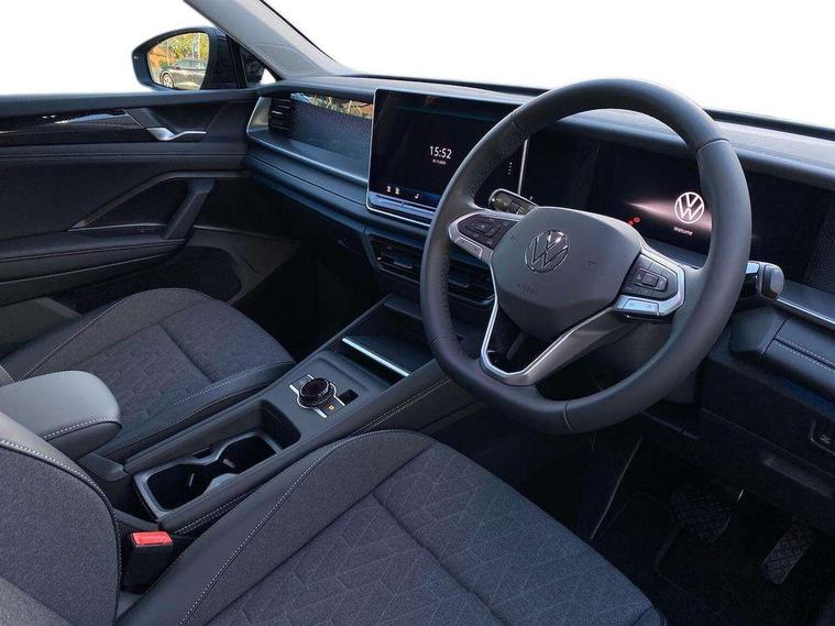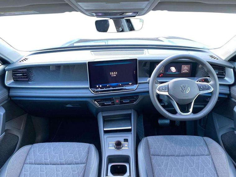 Adaptive cruise control (ACC), Digital Cockpit Pro - 10.25" high resolution dash display screen with customisable menus and information, Driver alert system, Driver attention monitoring system, Dynamic road sign display, E-Sim card for online connectivity, eCall emergency call system, Lane change system, Side assist, Rear traffic alert and Exit warning system, Multifunction front facing camera, Oncoming vehicle braking when turning including swerve support, Start/stop system with regenerative braking, Voice activation spoken voice commands for telephone and navigation system, Warning signal and warning light for front and rear seatbelts not fastened, Wireless App-Connect, Front wheel drive, Digital radio reception (DAB), Diversity antenna for FM reception, Auto dimming interior rear view mirror, Automatic headlight control system, Body colour door handles, Body-coloured exterior mirror housings, Chrome moldings on the side windows, Comfort bumpers, Coming/leaving home lighting function, Exterior mirrors convex on the left and aspherical on the right, Heat insulating glass in side and rear windows, Laminated safety glass winshield, heat insulating, LED 3rd brake light, Puddle lights, Rain sensor windscreen wipers, Rear fog light on one side, reversing light on both sides, Rear side wing doors, Rear wiper, Reverse activated passenger's door mirror, Surround lighting with welcome light, 12V outlet in center console rear and in luggage compartment, 3 rear headrests, 3 rear seat bench in 2nd row, backrest split folding with centre armrest and 2 seats in 3rd row of seats, Carpet mats, front and rear, Centre console with illuminated storage compartment with sliding cover and two drinks holders, Door and side trim panel with leatherette insert, Flat luggage compartment floor, Front centre armrest, ISOFIX anchors for child seats on outer rear seats and front passenger seat compatible with i-Size, Mechanical rear seat release, Power adjustable lumbar support in front, Single front passenger seat, Sun visors with illuminated vanity mirrors, 3 Point seat belts in front with pretensioners, 3 point seatbelts in outer rear with ECE label, Autonomous emergency braking front assist with pedestrian and cyclist monitoring, Driver and front passenger airbag with front passenger airbag deactivation, Electronic parking brake with auto hold, First aid kit with warning triangle and safety vest, Front and rear curtain airbags, Front and rear side airbags, Front centre airbag, Front disc brakes, Hill start assist, Rear disc brakes, Two tone horn, Decorative material set,