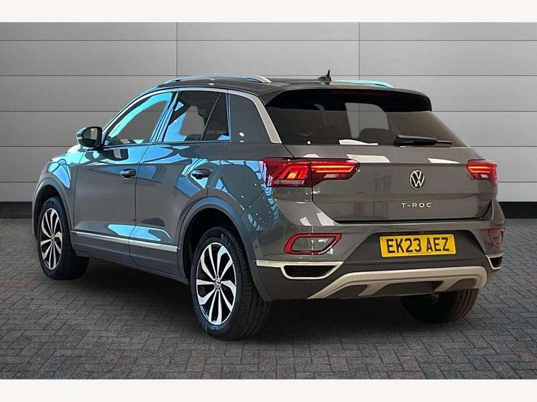 10.25" Digital cockpit pro, Bluetooth mobile phone interface, Driver alert system with fatigue detection, Driver tips and journey analysis, Emergency call service, Lane keeping system Lane Assist, Modified key software - reduce switch off time for key status change to Long no motion, Online services, Park assist including front and rear parking sensors, Service interval indicator, Tailgate/trunk lid release from outside, Think blue trainer driver tips and journey analysis, Warning sound and light for front seatbelts unfastened, Wireless app connect, Battery regeneration during braking, Start/stop function with battery regeneration, Diversity antenna for FM reception, Front and rear 6 speakers, Music playback - MP3, WMA and AAC files, Premium USB cable in choice of either Apple or Android smartphone compatibility, SD card slot, Simultaneous pairing of 2 compatible mobile devices, Title and cover art display, We Connect and We Connect Plus functionality, 3rd brake light, Auto dimming interior rear view mirror, Automatic hazard lights activation under emergency braking, Automatic headlight control with LED separate daytime running lights with coming/leaving home function, Body colour sports bumpers with silver metallic underbody fascia, Dynamic headlight range control with self adjusting whilst driving, Extended roof spoiler, Exterior mirrors aspherical on driver side, convex on front passenger side, External USB type C socket and charging sockets, Front windscreen wiper with intermittent wipe and 4 position delay, Heated rear window, LED Plus headlamps, LED rear combination lamps, LED rear number plate lights, LED tail lamp rear comination lamps, Light mode for poor weather, rain, fog or snow, Power windows with comfort operation and circuit breaker, Rain sensor, Rear exhaust tailpipe, Rear fog light on one side and reversing lights on both sides, Rear side wing doors, Rear wash/wipe with intermittent wipe setting, Remote electrically foldable door mirrors, puddle lights and reverse activated passenger's door mirror, 12V power socket in centre console, 3 rear head restraints, 3 seat bench in 2nd row, 4 load lashing points in luggage compartment, Air care climatronic air conditoning system with active combination filter and 2-zone temperature control, Chrome plated radiator grille inserts, air vent surrounds and light switch surrounds, Door and side trim panel with leatherette insert, Drawer under drivers seat, Front + rear carpet mats, Front centre armrest, Front comfort sports seats, Front cupholders x 2, Front footwell illumination, Instrument lighting, white adjustable panel illumination, Interior ambient lighting and surround lighting, Interior light delay, Isofix child seat preparation, Leather gearshift handle, LED interior light with switch off delay/dimmer and 2 front/rear LED reading lights, Load-through provision with cup holder when folded down ('Unsplit rear seat bench, split folding backrest, with centre armrest), Luggage compartment lighting, Non-folding front passenger seat backrest, Single front passenger seat, Storage compartment in left and right luggage area, Storage compartment in rear doors, Storage compartments in driver and front passenger doors, Sunvisors with illuminated vanity mirrors, Variable boot floor, height adjustable and removable, Driver assistance pack without proactive passenger protection - T-Roc, 3 point height adj front seatbelts + pretensioners, 3 point seatbelts in outer rear with ECE label, ABS, Child locks on rear doors, Driver and front passenger airbag with front passenger airbag deactivation, Driver and front passenger safety-optimised head restraints, Drivers seatbelt reminder, Electronic parking brake, Electronic Stability Control (ESC) inc EDL (Electronic Differential Lock) and ASR (Traction Control), Front and rear passengers curtain airbag system including front side airbags, Front assist with city emergency braking and pedestrian monitoring, Front seat side impact airbags, Predictive pedestrian protection, Rear disc brakes, Single tone horn, Tyre pressure loss indicator, Volkswagen roadside assistance, Alarm with interior protection, Anti-theft alarm system with interior monitoring, backup horn, and towing protection, Remote central locking with SAFELOCK, radio remote control with 2 remote control folding keys, Trims for alloy wheels,
