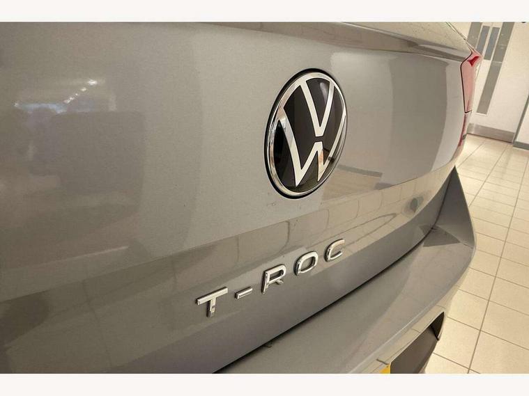 10.25" Digital cockpit pro, Bluetooth mobile phone interface, Driver alert system with fatigue detection, Driver tips and journey analysis, Emergency call service, Lane keeping system Lane Assist, Modified key software - reduce switch off time for key status change to Long no motion, Online services, Park assist including front and rear parking sensors, Service interval indicator, Tailgate/trunk lid release from outside, Think blue trainer driver tips and journey analysis, Warning sound and light for front seatbelts unfastened, Wireless app connect, Battery regeneration during braking, Start/stop function with battery regeneration, Diversity antenna for FM reception, Front and rear 6 speakers, Music playback - MP3, WMA and AAC files, Premium USB cable in choice of either Apple or Android smartphone compatibility, SD card slot, Simultaneous pairing of 2 compatible mobile devices, Title and cover art display, We Connect and We Connect Plus functionality, 3rd brake light, Auto dimming interior rear view mirror, Automatic hazard lights activation under emergency braking, Automatic headlight control with LED separate daytime running lights with coming/leaving home function, Body colour sports bumpers with silver metallic underbody fascia, Dynamic headlight range control with self adjusting whilst driving, Extended roof spoiler, Exterior mirrors aspherical on driver side, convex on front passenger side, External USB type C socket and charging sockets, Front windscreen wiper with intermittent wipe and 4 position delay, Heated rear window, LED Plus headlamps, LED rear combination lamps, LED rear number plate lights, LED tail lamp rear comination lamps, Light mode for poor weather, rain, fog or snow, Power windows with comfort operation and circuit breaker, Rain sensor, Rear exhaust tailpipe, Rear fog light on one side and reversing lights on both sides, Rear side wing doors, Rear wash/wipe with intermittent wipe setting, Remote electrically foldable door mirrors, puddle lights and reverse activated passenger's door mirror, 12V power socket in centre console, 3 rear head restraints, 3 seat bench in 2nd row, 4 load lashing points in luggage compartment, Air care climatronic air conditoning system with active combination filter and 2-zone temperature control, Chrome plated radiator grille inserts, air vent surrounds and light switch surrounds, Door and side trim panel with leatherette insert, Drawer under drivers seat, Front + rear carpet mats, Front centre armrest, Front comfort sports seats, Front cupholders x 2, Front footwell illumination, Instrument lighting, white adjustable panel illumination, Interior ambient lighting and surround lighting, Interior light delay, Isofix child seat preparation, Leather gearshift handle, LED interior light with switch off delay/dimmer and 2 front/rear LED reading lights, Load-through provision with cup holder when folded down ('Unsplit rear seat bench, split folding backrest, with centre armrest), Luggage compartment lighting, Non-folding front passenger seat backrest, Single front passenger seat, Storage compartment in left and right luggage area, Storage compartment in rear doors, Storage compartments in driver and front passenger doors, Sunvisors with illuminated vanity mirrors, Variable boot floor, height adjustable and removable, Driver assistance pack without proactive passenger protection - T-Roc, 3 point height adj front seatbelts + pretensioners, 3 point seatbelts in outer rear with ECE label, ABS, Child locks on rear doors, Driver and front passenger airbag with front passenger airbag deactivation, Driver and front passenger safety-optimised head restraints, Drivers seatbelt reminder, Electronic parking brake, Electronic Stability Control (ESC) inc EDL (Electronic Differential Lock) and ASR (Traction Control), Front and rear passengers curtain airbag system including front side airbags, Front assist with city emergency braking and pedestrian monitoring, Front seat side impact airbags, Predictive pedestrian protection, Rear disc brakes, Single tone horn, Tyre pressure loss indicator, Volkswagen roadside assistance, Alarm with interior protection, Anti-theft alarm system with interior monitoring, backup horn, and towing protection, Remote central locking with SAFELOCK, radio remote control with 2 remote control folding keys, Trims for alloy wheels,
