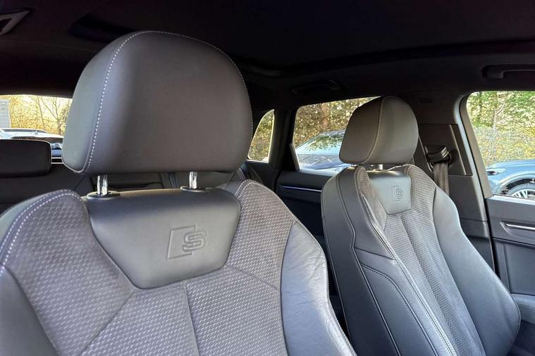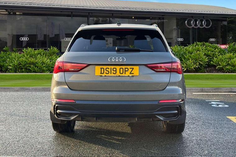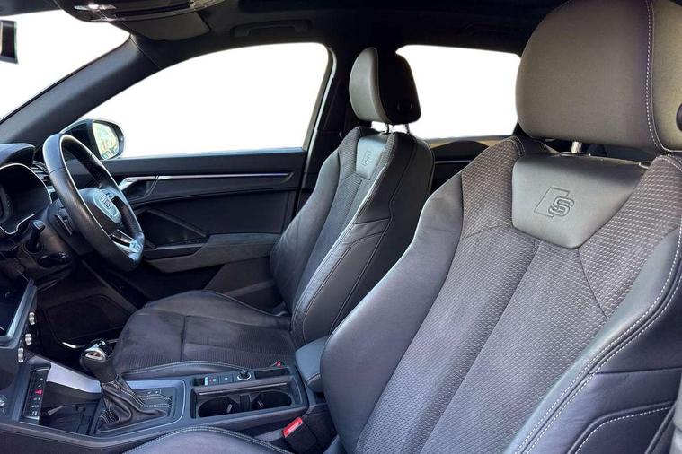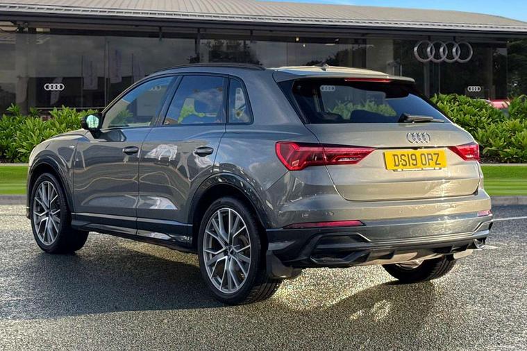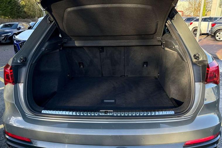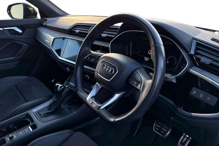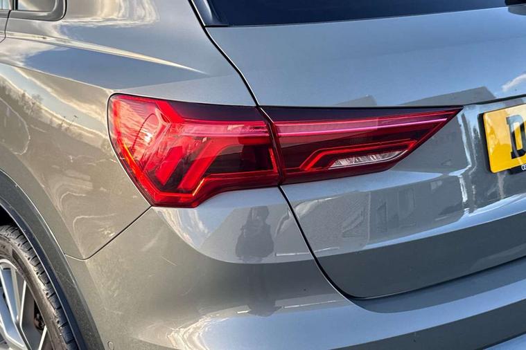 360 degree parking camera, Audi connect safety and service (e-call), Audi drive select, Audi lane departure warning, Audi parking system plus with front and rear sensors, Audi phone box with wireless charging, Audi side assist, Audi smartphone interface, Audi virtual cockpit plus, Bluetooth interface, MMI navigation plus with MMI touch, Power opening/closing tailgate, Progressive steering, Rear cross traffic alert, Service interval indicator, Stop/start system, Voice control system, Adaptive suspension with damping control, 1 x USB type C and 1 USB type A charging points, Bang & Olufsen 3D Premium Sound System, DAB digital radio module, Acoustic windscreen, Auto dimming and folding door mirrors, Auto dimming rear view mirror, Black roof rails, Contrast bumpers in Manhattan grey paint finish, Diffuser in matt Platinum grey, Electrically adjustable and heated door mirrors with integrated LED side indicators, Front and rear electric windows, Front fog lights, Front side air inlets in matt platinum grey, Front spoiler blade in matt platinum grey, Front spoiler in matt selenite silver, Grille vertical bars in aluminium silver/Matt, Headlight washers, High gloss black finish B and C pillars, Matrix LED headlights with LED rear lights and dynamic front and rear indicator, Panoramic opening glass sunroof, Privacy glass, Rain and light sensors, Rear diffuser strip in selenite silver, S line bumpers in contrasting Manhattan grey, 12V socket in rear centre console, 3 spoke flat bottomed high multi-function leather sport steering wheel with gearshift paddles, 4 way electric lumbar support for driver and front passenger, 40:20:40 split folding rear bench seat, Adjustable rear seat bench/backrest with centre armrest and cupholder, Aluminium door sill trims, Black cloth headlining, Dual zone climate control, Electrically adjustable front seats, Front and rear black floor mats with contrast stitching in rock grey, Front and rear headrests, Front centre armrest with storage compartment and angle adjustment, Heated front seats, ISOFIX child seat mounting and Top Tether with front passenger airbag deactivation, Perforated leather gearknob, Stainless steel luggage compartment sill finisher, Stainless steel pedals, Black styling pack - Q3, Driver Assistance Pack - Q3, Multi coloured extended ambient interior lighting pack - Q3, Non smoking pack - Q3, 3x3 point rear seatbelts, 6 airbags - Driver, front passenger, curtain and side windows, Audi pre-sense front with pedestrain and cyclist recognition, Electrically operated child locks on rear doors, Electromechanical parking brake, Electronic stabilisation control including ABS, ASR and EDL, Hill hold assist, Pre sense basic, Seatbelt monitoring, Tyre pressure warning, Warning triangle and first aid kit, Advanced key, Anti theft alarm, Anti theft wheel bolts, Remote central locking, Dark matt brushed aluminium inlay, MMI touch colour display in gloss black with aluminium surround, Tool kit, Tyre repair kit,
