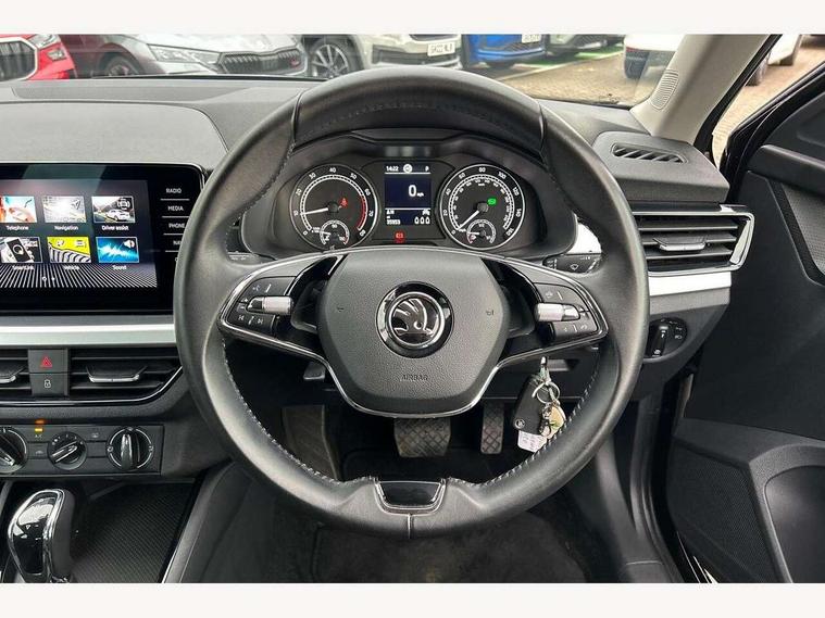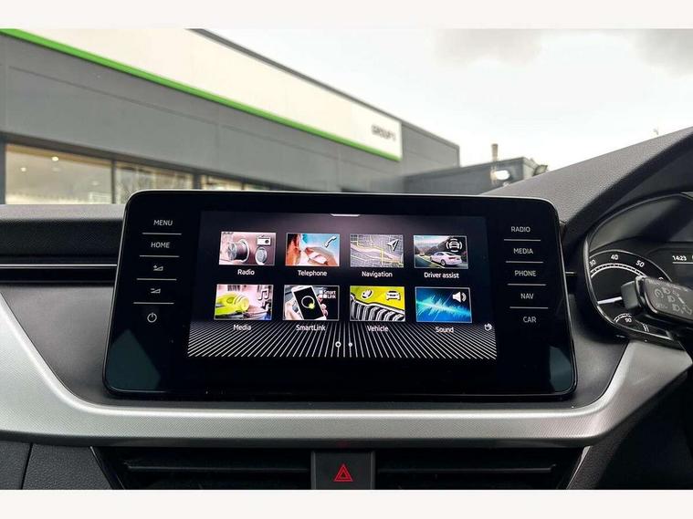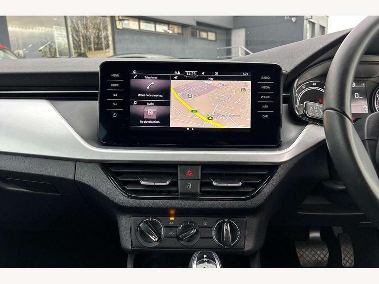 Amundsen satellite navigation with 9.2" glass colour touchscreen display, web radio, voice control and traffic sign recognition, Bluetooth system, E-call, Front assist system, Gesture control, PAS, Service indicator, Speed limiter, Wireless SmartLink for apple car play, android auto and mirrorlink, 8 Speakers, Auxiliary input socket, DAB Digital radio, Body colour bumpers, Body colour door mirrors and handles, Chrome grille surround, Dimming rear view mirror with black surround, Electrically adjustable and heated door mirrors, Front and rear electric windows, Headlight range control, Heated rear window, LED rear lights - low functionality, LED third brake light, Light sensors, Privacy glass, Rear fog lights, Rear side wing doors, Rear wiper, 12V Accessory socket in centre console, 3 seat bench in 2nd row, Chrome inner door handles, Cloth upholstery, Front head restraints, Glove compartment with illumination, Height adjustable driver and front passenger seats - manual, Ice scraper, Isofix child seat fittings on outer rear seats, ISOFIX on front passenger seat, Manual lumbar support for front seats, Rake/reach adjustable steering wheel, Reading lights, Single front passenger seat, Sun visors with illumination on front passenger, Textile floor mats, Third rear headrest, Top tether for front passenger seat, Umbrella in driver's door, 3x3 point rear seatbelts, Airbags - driver and front passenger, ESP, Front passenger airbag deactivation switch, Front side airbags with curtain airbags, Hill hold control, Manual parking brake, Manual rear child locks, One tone horn, Rear disc brakes, Seatbelt reminder for driver an co-driver, Traction control, Tyre pressure monitor, Anti-theft alarm system with interior monitoring, backup horn, towing protection and remote central locking with SAFE system, Anti-theft wheel bolts, Electronic engine immobilizer, Silver haptic decorative insert on the dashboard with hot stamping in glossy black,