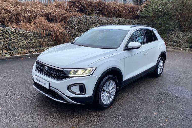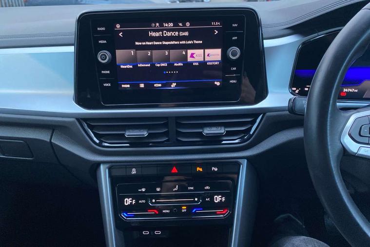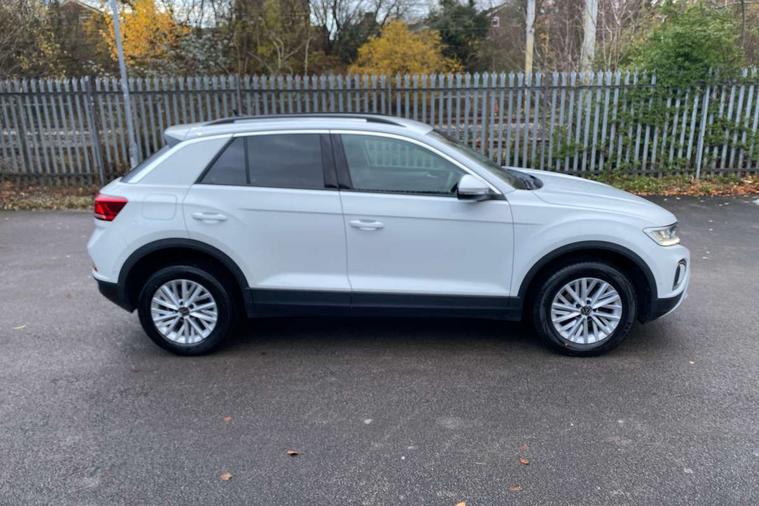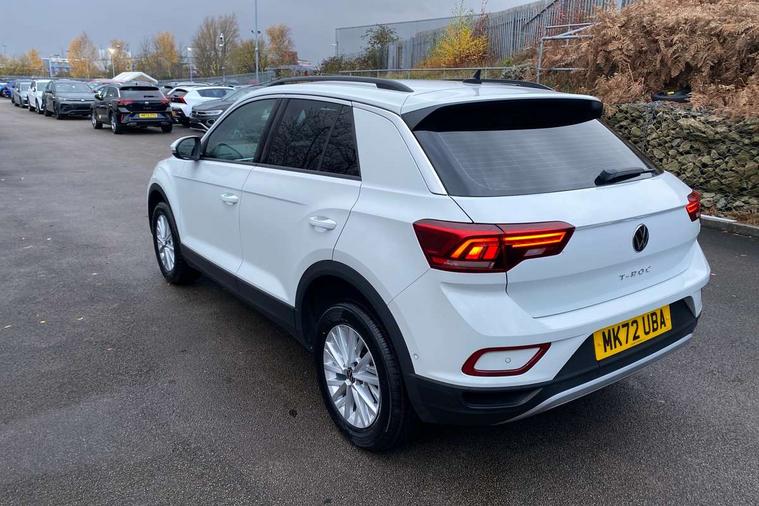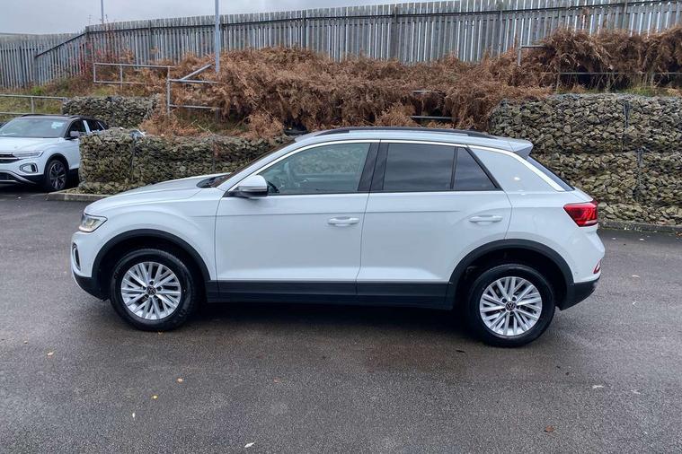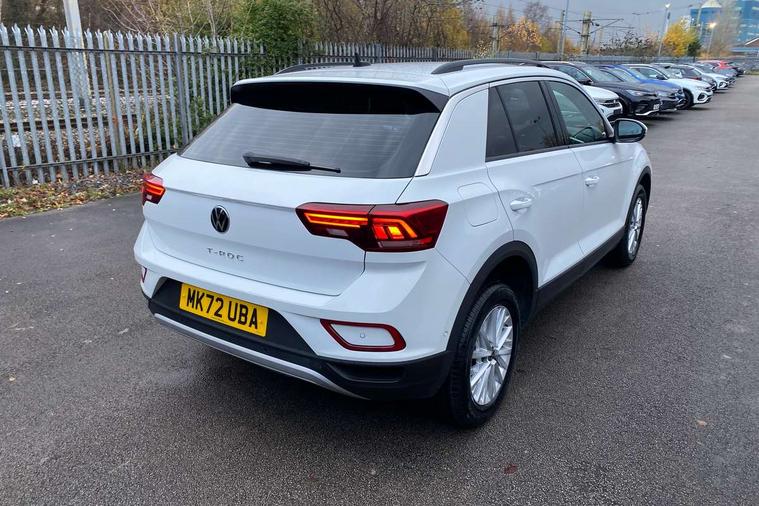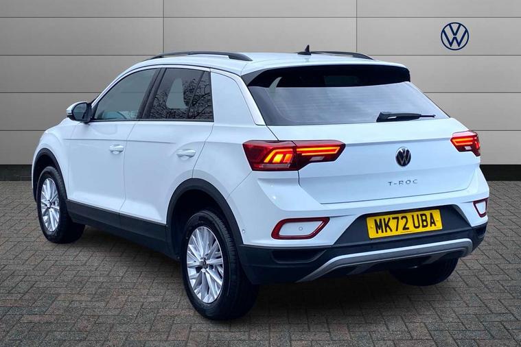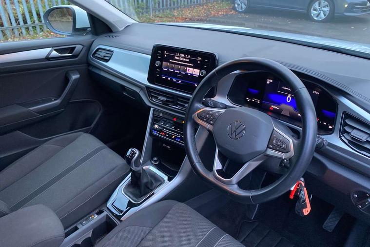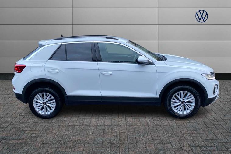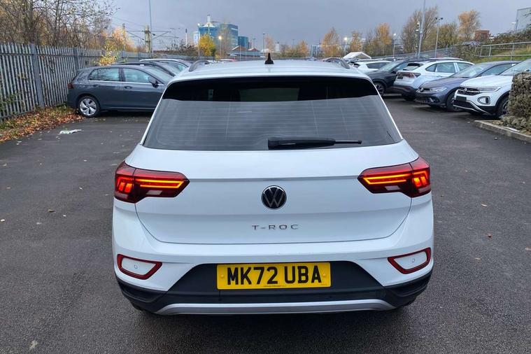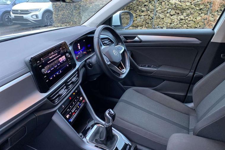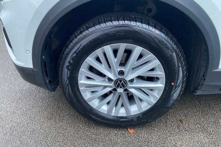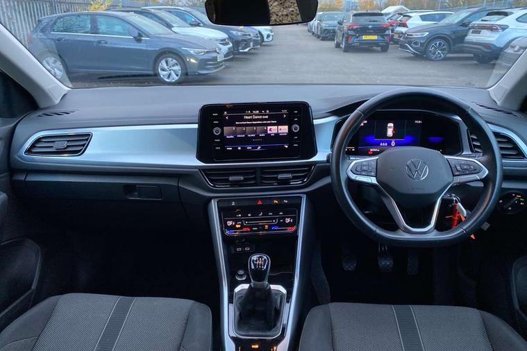 Bluetooth mobile phone interface, Driver alert system with fatigue detection, Driver tips and journey analysis, Emergency call service, Lane keeping system Lane Assist, Modified key software - reduce switch off time for key status change to Long no motion, Online services, Park assist including front and rear parking sensors, Power assisted speed sensitive steering, Service interval indicator, Tailgate/trunk lid release from outside, Think blue trainer driver tips and journey analysis, Warning sound and light for front seatbelts unfastened, Wireless app connect, Battery regeneration during braking, Front shock absorption, Rear shock absorption chassis with increased ride height, Start/stop function with battery regeneration, DAB Digital radio, Diversity antenna for FM reception, Front and rear 6 speakers, Music playback - MP3, WMA and AAC files, Premium USB cable in choice of either Apple or Android smartphone compatibility, SD card slot, Simultaneous pairing of 2 compatible mobile devices, Title and cover art display, We Connect and We Connect Plus functionality, 3rd brake light, Auto dimming interior rear view mirror, Automatic hazard lights activation under emergency braking, Automatic headlight control with LED separate daytime running lights with coming/leaving home function, Black roof rails, Body coloured bumpers and radiator grille with chrome trim and front fog lamps with chrome bezel, Body coloured exterior mirror housings and door handles, Extended roof spoiler, Exterior mirrors aspherical on driver side, convex on front passenger side, External USB type C socket and charging sockets, Front windscreen wiper with intermittent wipe and 4 position delay, Heated rear window, LED Headlights, LED rear combination lamps, LED rear number plate lights, LED tail lamp rear comination lamps, Power windows with comfort operation and circuit breaker, Rain sensor, Rear exhaust tailpipe, Rear fog light on one side and reversing lights on both sides, Rear side wing doors, Rear wash/wipe with intermittent wipe setting, Remote electrically foldable door mirrors, puddle lights and reverse activated passenger's door mirror, 12V power socket in centre console, 3 rear head restraints, 3 seat bench in 2nd row, 4 load lashing points in luggage compartment, Air care climatronic air conditoning system with active combination filter and 2-zone temperature control, Ambient lighting with mirror logo projection, Cloth upholstery, Door and side trim panel in cloth, Drawer under drivers seat, Driver/front passenger seat height adjustment, Front centre armrest, Front comfort sports seats, Front cupholders x 2, Front reading light, Instrument lighting, white adjustable panel illumination, Interior light delay, Isofix child seat preparation, Leather gearshift handle, Load-through provision with cup holder when folded down ('Unsplit rear seat bench, split folding backrest, with centre armrest), Luggage compartment lighting, Lumbar support for driver's and front passengers seat, Non-folding front passenger seat backrest, Single front passenger seat, Storage compartment in left and right luggage area, Storage compartment in rear doors, Storage compartments in driver and front passenger doors, Sunvisors with illuminated vanity mirrors, Variable boot floor, height adjustable and removable, Driver assistance pack without proactive passenger protection - T-Roc, 3 point height adj front seatbelts + pretensioners, 3 point seatbelts in outer rear with ECE label, ABS, Child locks on rear doors, Driver and front passenger airbag with front passenger airbag deactivation, Driver and front passenger safety-optimised head restraints, Drivers seatbelt reminder, Electronic parking brake, Electronic Stability Control (ESC) inc EDL (Electronic Differential Lock) and ASR (Traction Control), Front and rear passengers curtain airbag system including front side airbags, Front assist with city emergency braking and pedestrian monitoring, Front disc brakes, Front seat side impact airbags, Hill start assist, Predictive pedestrian protection, Rear disc brakes, Single tone horn, Tyre pressure loss indicator, Volkswagen roadside assistance, Alarm with interior protection, Anti-theft alarm system with interior monitoring, backup horn, and towing protection, Remote central locking with SAFELOCK, radio remote control with 2 remote control folding keys, Pewter matt decorative inserts for intrument panel, centre console and door panels at the front, Trims for alloy wheels,