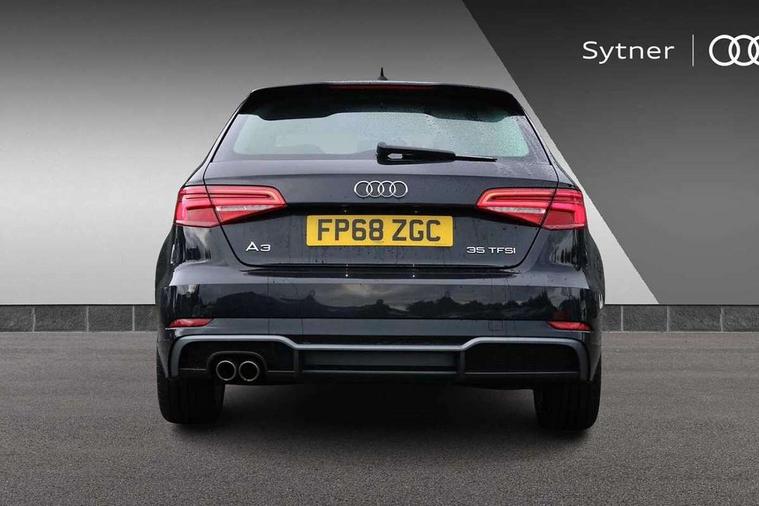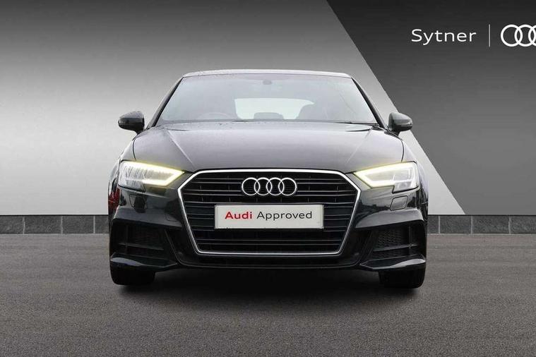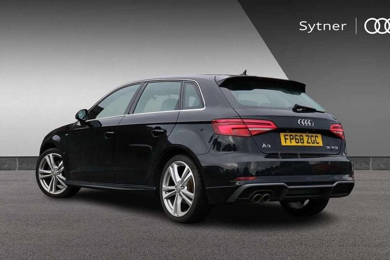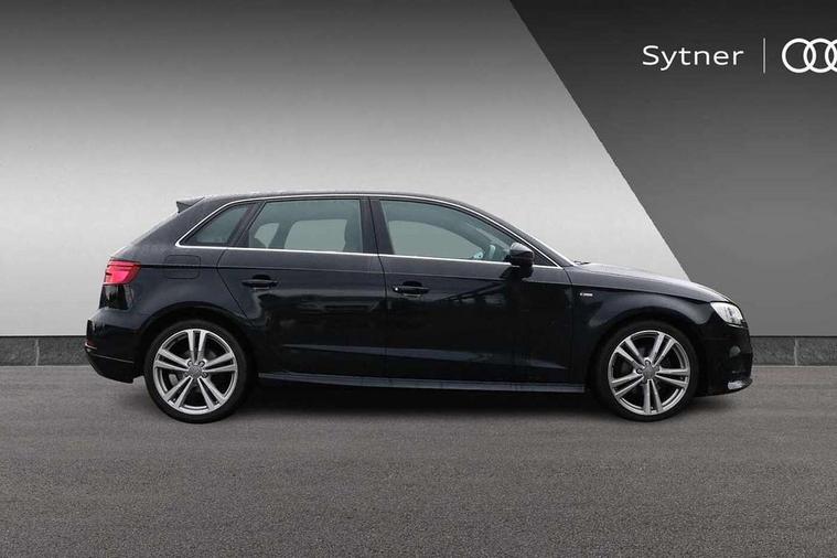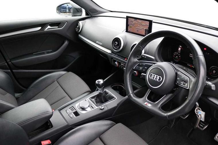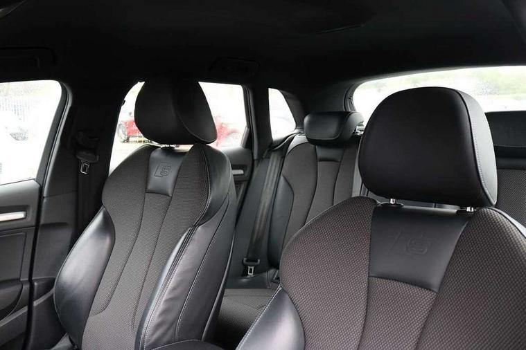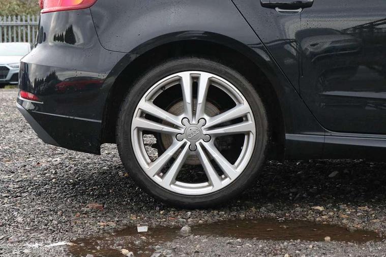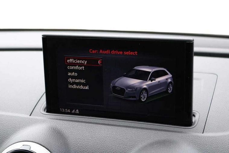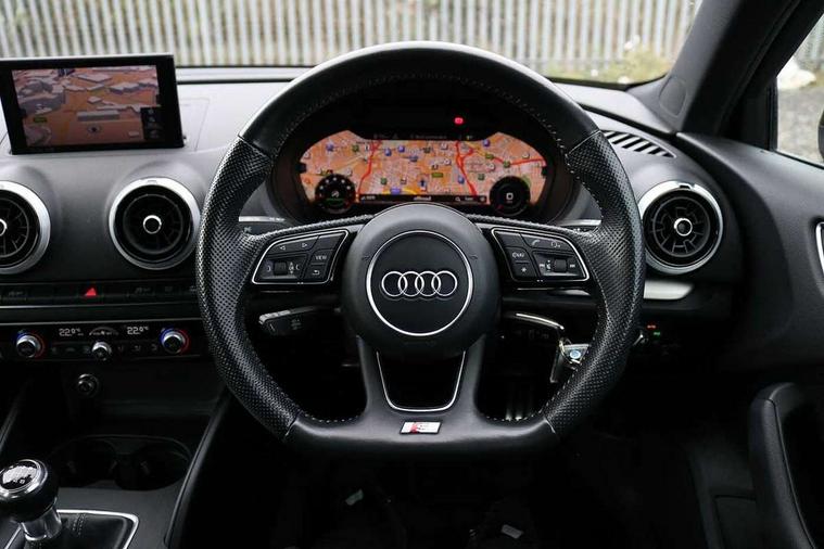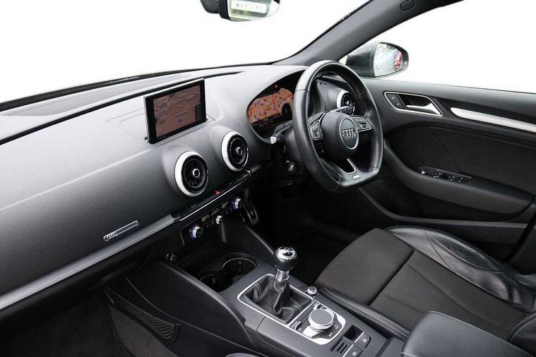 Audi connect, Audi drive select, Audi smartphone interface, Automatic start/stop system, Colour driver's information system display, Electro - mechanical power assisted steering, Mobile telephone preparation - bluetooth interface, SD card based satellite navigation system, Service interval indicator, Speed limit display, Voice control system, Voice recognition for navigation system, 2 USB interfaces and Aux-In jack, Audi music interface, CD player, DAB Digital radio, MMI radio plus with 7" colour MMI screen and MMI controller, Aluminium window trim, Auto dimming rear view mirror with light and rain sensors, Body colour door mirrors, Chrome exhaust tailpipes, Electric front windows, Electric rear windows, Electrically adjustable and heated door mirrors with integrated LED side indicators, Heated windscreen washer jets, LED daytime running lights, Matt black radiator grille, Rear wiper, S line badges on front wings, S Line body styling with front & rear bumpers and side skirts, radiator grille and rear diffuser insert, roof spoiler, Sport specific side air inlet grille and diffuser insert, 3 adjustable rear headrests, 3 spoke flat bottomed multi-function leather sport steering wheel, 4 lashing points to secure luggage, Adjustable front centre armrest, Black cloth headlining, Dual zone electronic climate control, Front and rear interior lights with delay, Front/rear floor mats, Glovebox light, Height and reach adjustable steering wheel, Illuminated door sill trims with S logo, Isofix child seat preparation for front passenger/outer rear seats inc passenger airbag deactivation, Stainless steel pedals, Storage compartments in doors side trims, centre console and under front drivers seat, Tool kit, LED interior light pack - A3/RS3, Non smoking pack - A3, Storage and luggage pack - A3/RS3, 3 point seatbelts on all seats, ABS/EBD, Active bonnet, Active front headrests, Airbags - front driver/passenger, front & rear side, curtain, drivers knee, ASR, EDL, Electromechanical parking brake, ESC - Electronic Stability Control + traction control, Front passenger airbag deactivation, Hill hold assist, Manual rear child locks, Multi-Collision braking, Seatbelt warning, Tyre pressure warning, Warning triangle and first aid kit, Anti theft alarm, Anti-theft wheel bolts, Remote control central locking, Thatcham category 1 alarm + immobiliser, Aluminium air vent surrounds, Aluminium trim elements, Matt brushed aluminium inlays, Tyre repair kit,