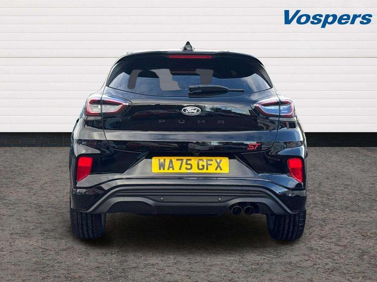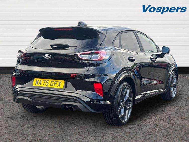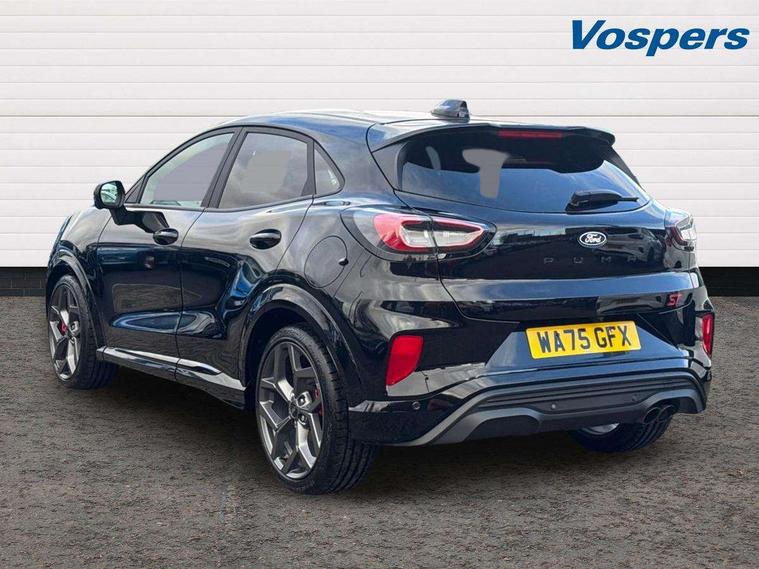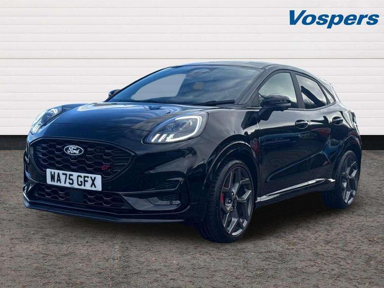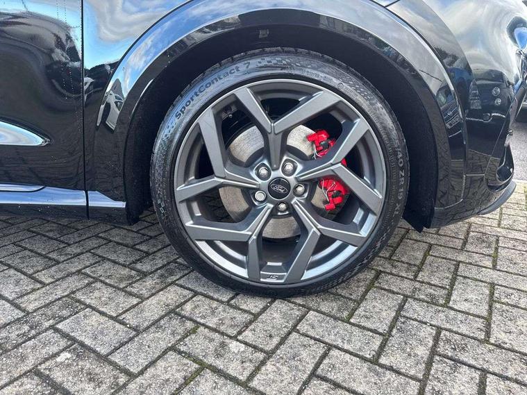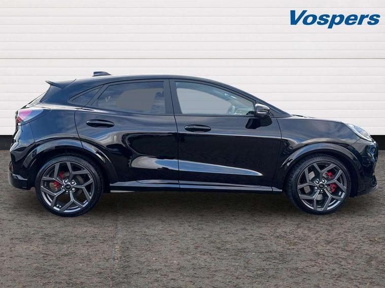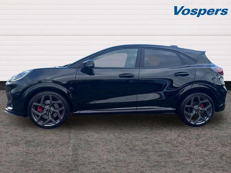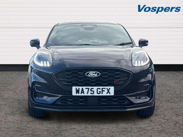 Driver impairment monitor, Emergency call service, Ford easy fuel, Full digital 12.8" instrument cluster, Lane keeping aid with lane departure warning, Power assist steering, Power lift tailgate, Selectable drive modes (normal, sport, eco, track), Speed sign recognition, ST suspension, 12" landscape touchscreen display with wireless apple car play and android auto premium B&O audio system with 10 speakers, Ford pass connect and emergency assistance, Ford SYNC4 with connected navigation, Automatic headlights with rain sensing wipers and auto high beam, Front fog lamps, Glare-free matrix LED headlamps, LED daytime running lights, LED rear lamps, LED third brake light, Power foldable heated door mirrors with puddle lamps and puma logo protection, Quickclear heated windscreen, Rear privacy glass, Rear side wing doors, Rear wiper, Unique ST body styling kit including wing mirrors and Ford Performance embossed splitter, 3 seat bench in 2nd row, Centre console with armrest and stowage, Electronic automatic temperature control (EATC), Ford megabox extended bootspace, Ford Performance seats premium synthetic leather upholstery, Front and rear head restraints, Front floor mats, Manual 6 way driver seat adjust with lumbar adjustment, Manual 6 way passenger seat with lumbar seat adjustment, Single front passenger seat, ST flat bottomed steering wheel with metal grey stitching, Driver assistance pack with blind spot information system - Puma for automatic transmission, Winter pack - Puma, 3 rear seatbelts, Child safety lock, Electronic stability control (ESC) and hill start assist, Pre-collision assist with autonomous emergency braking, pedestrian/cyclist detection & post-collision braking, Red brake calipers, Tyre pressure monitoring system (TPMS), Keyless entry and power start button, Keyless start and wireless charger, Thatcham alarm, 19" alloy wheels with magnetite dark finish, Tyre inflation kit,