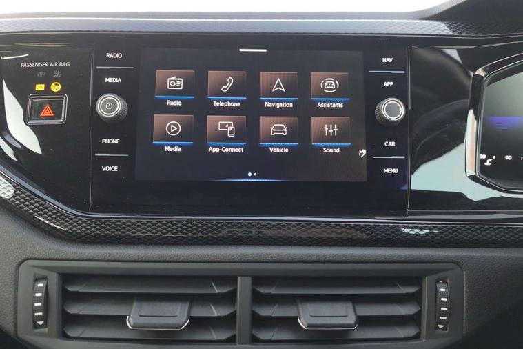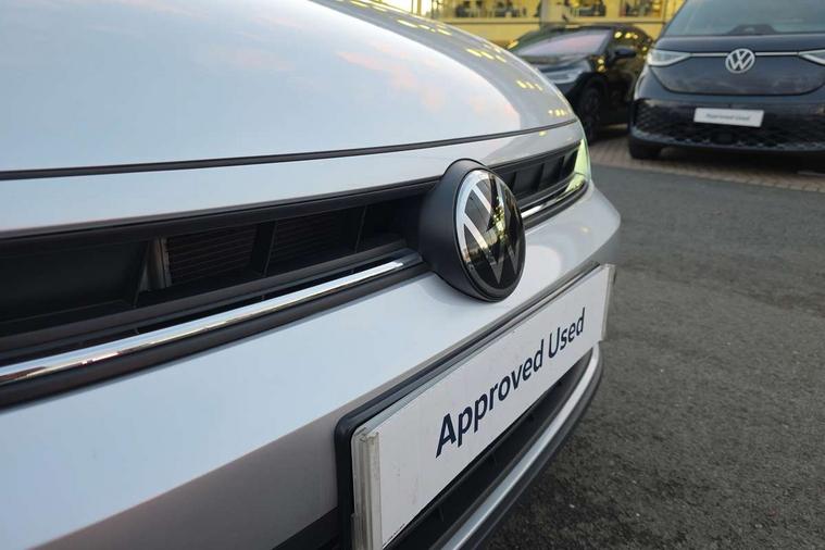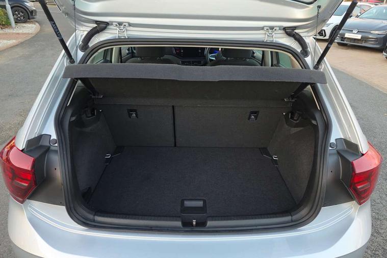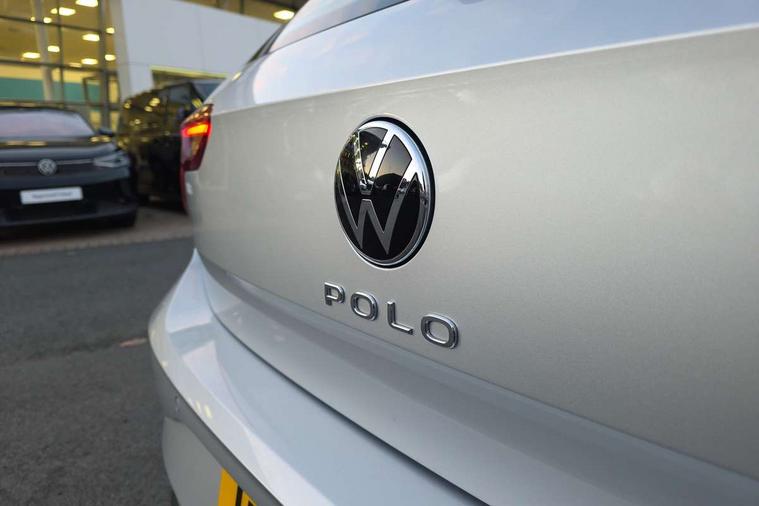 Adaptive cruise control with follow-to-stop and speed limiter, Advanced driver attention and drowsiness monitor, Bluetooth mobile phone interface, Dynamic road sign display, Emergency call service, Power assisted speed sensitive steering, Preparation for navigation system with media and internet package, Preparation for We connect and We connect plus, Speedo and rev counter, electronic odometer, trip, service interval display and exterior temperature gauge, Standard rear axle, Travel Assist - Lane keeping system and traffic jam assist, Travel assist including emergency assist, Trip computer, Warning signal and warning light for front and rear seatbelts not fastened, Washer fluid level indicator, Wireless app connect, Front wheel drive, Rear shock absorpion, Start-stop system with battery regeneration (recuperation - energy recovery during braking), DAB Digital radio, Diversity antenna for FM reception, Automatic dimming interior rear view mirror, Automatic headlight control with LED separate daytime running lights with coming/leaving home function, Body colour bumpers with chrome inserts, Body colour door handles, Body colour door mirrors, Electric front windows, Engine badge deletion, Headlight range adjustment, Heat insulating and laminated safety glass windshield, Heat insulating darkened glass in side and rear windows, Heat insulating glass windscreen, LED Headlights, LED rear combination lamps, Power folding adjustable/heated exterior mirrors and front passenger exterior mirror lowering function, Rain sensor, Rear electric windows, Rear fog light, Rear side wing doors, Rear windscreen washer and wiper with interval delay, Third brake light, 12V power socket in centre console, 2 front and 2 rear reading lights with switch off delay and dimmer, 2 USB-C ports in the front, 2 USB-C charging sockets on the center console in the rear, 3 rear head restraints, 60/40 split folding rear seat and rear seat bench not split, Ceramique roof lining, Chrome plated radiator grille inserts, air vent surrounds and light switch surrounds, Door and side trim panel, Driver and front passenger seat height adjustment, Driver/passenger sunvisors with illuminated vanity mirrors, Front centre armrest, Front seat backrest storage pockets, Front standard seats, Handbrake lever handle in leather, Hartley/Thomas cloth upholstery, Headliner in recycled material, Isofix child seat preparation easy-fit (for two outer rear seats, and front passenger seat) compatible with I-size, Leather trimmed gear knob, Luggage compartment cover, Luggage compartment lighting, Removable luggage compartment floor, Single front passenger seat, Standard climatic zones, Standard pedal cluster, Three spoke leather wrapped multifunction steering wheel with shifting paddles, Light and vision pack - Polo, 3 point height adj front seatbelts + pretensioners, 3x3 point rear seatbelts, ABS, Driver and front passenger airbag with front passenger airbag deactivation, Drivers and front passengers safety optimised head restraints, ESC (Electronic stability control) + EDL (Electronic Differntial lock) and ASR (Traction control), Extended and predictive pedestrian/ cyclist protection, Front assist with autonomous emergency braking (for Adaptive Cruise Control ACC up to 130 mph), Front curtain and side airbags with center airbag, Front disc brakes, Hill hold control, Manual child lock in rear doors, Rear drum brakes, Single tone horn, Tyre pressure loss indicator, Alarm with interior protection, Anti-theft alarm system with interior monitoring, backup horn, and towing protection, Anti-theft wheel bolts, Electronic engine immobiliser, Lava stone black gloss/matt decorative inserts in dash and front door panels, Low rolling resistance tyres,