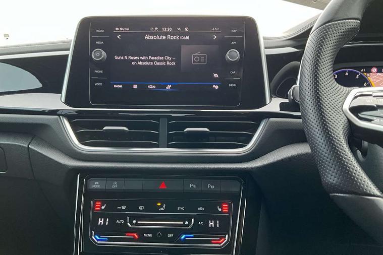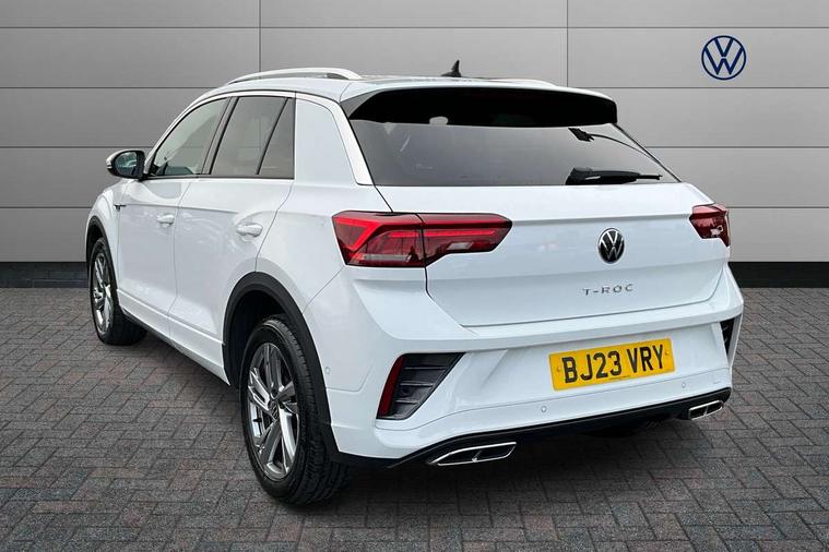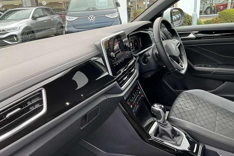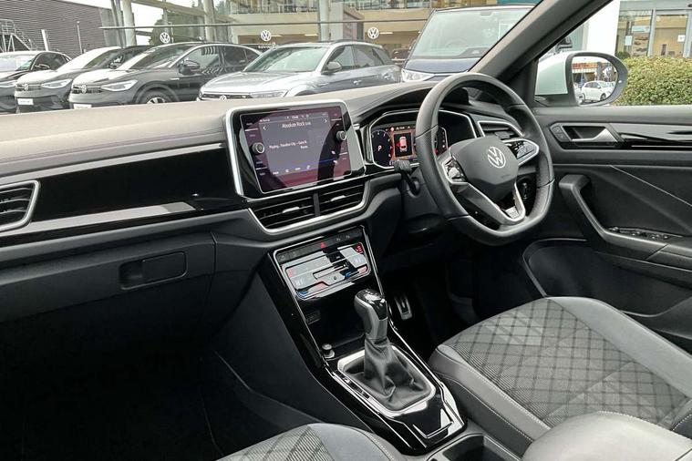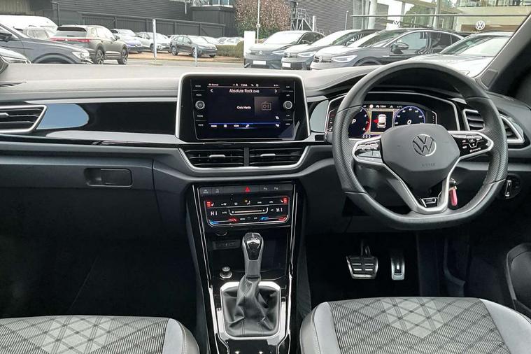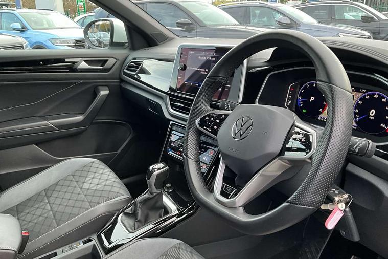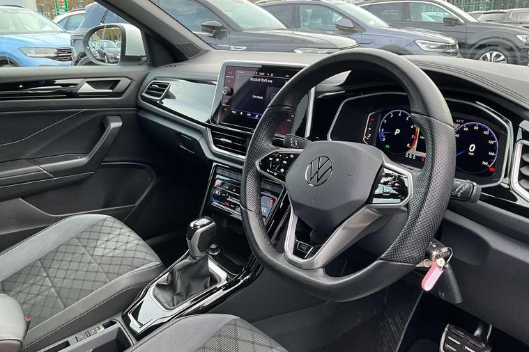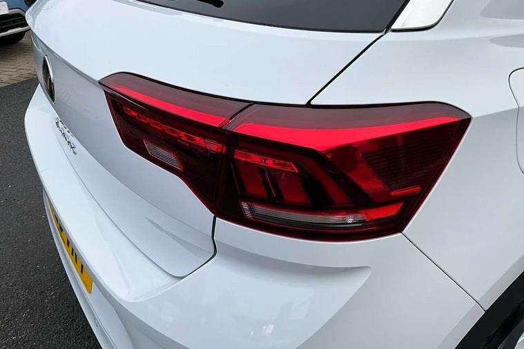 10.25" Digital cockpit pro, Bluetooth mobile phone interface, Driver alert system with fatigue detection, Driver tips and journey analysis, Emergency call service, Lane keeping system Lane Assist, Modified key software - reduce switch off time for key status change to Long no motion, Online services, Park assist including front and rear parking sensors, Service interval indicator, Tailgate/trunk lid release from outside, Think blue trainer driver tips and journey analysis, Warning sound and light for front seatbelts unfastened, Wireless app connect, Battery regeneration during braking, Start/stop function with battery regeneration, Diversity antenna for FM reception, Front and rear 6 speakers, Music playback - MP3, WMA and AAC files, Premium USB cable in choice of either Apple or Android smartphone compatibility, SD card slot, Simultaneous pairing of 2 compatible mobile devices, Title and cover art display, We Connect and We Connect Plus functionality, 3rd brake light, Auto dimming interior rear view mirror, Automatic hazard lights activation under emergency braking, Automatic headlight control with LED separate daytime running lights with coming/leaving home function, Extended roof spoiler, Exterior mirrors aspherical on driver side, convex on front passenger side, External USB type C socket and charging sockets, Front windscreen wiper with intermittent wipe and 4 position delay, Heated rear window, LED Plus headlamps, LED rear combination lamps, LED rear number plate lights, LED tail lamp rear comination lamps, Power windows with comfort operation and circuit breaker, R-Line design body coloured bumpers, Rain sensor, Rear exhaust tailpipe, Rear fog light on one side and reversing lights on both sides, Rear side wing doors, Rear wash/wipe with intermittent wipe setting, Remote electrically foldable door mirrors, puddle lights and reverse activated passenger's door mirror, 12V power socket in centre console, 3 rear head restraints, 3 seat bench in 2nd row, 4 load lashing points in luggage compartment, Air care climatronic air conditoning system with active combination filter and 2-zone temperature control, Black roof lining, Chrome plated radiator grille inserts, air vent surrounds and light switch surrounds, Door and side trim panel with leatherette insert, Drawer under drivers seat, Front + rear carpet mats, Front centre armrest, Front cupholders x 2, Front footwell illumination, Front reading light, Front scuff plates with R logo, Instrument lighting, white adjustable panel illumination, Interior ambient lighting and surround lighting, Interior light delay, Isofix child seat preparation, Leather gearshift handle, Load-through provision with cup holder when folded down ('Unsplit rear seat bench, split folding backrest, with centre armrest), Luggage compartment lighting, Single front passenger seat, Stainless steel pedals, Storage compartment in left and right luggage area, Storage compartment in rear doors, Storage compartments in driver and front passenger doors, Sunvisors with illuminated vanity mirrors, Variable boot floor, height adjustable and removable, Driver assistance pack without proactive passenger protection - T-Roc, 3 point height adj front seatbelts + pretensioners, 3 point seatbelts in outer rear with ECE label, ABS, Child locks on rear doors, Driver and front passenger airbag with front passenger airbag deactivation, Driver and front passenger safety-optimised head restraints, Drivers seatbelt reminder, Electronic parking brake, Electronic Stability Control (ESC) inc EDL (Electronic Differential Lock) and ASR (Traction Control), Front and rear passengers curtain airbag system including front side airbags, Front assist with city emergency braking and pedestrian monitoring, Front seat side impact airbags, Hill start assist, Predictive pedestrian protection, Rear disc brakes, Single tone horn, Tyre pressure loss indicator, Volkswagen roadside assistance, Alarm with interior protection, Anti-theft alarm system with interior monitoring, backup horn, and towing protection, Remote central locking with SAFELOCK, radio remote control with 2 remote control folding keys, Trims for alloy wheels,