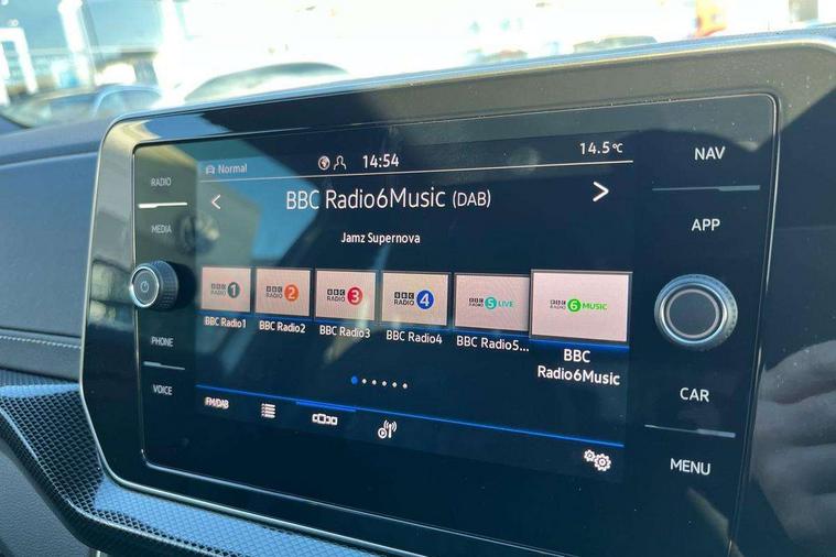 'Lights On' Reminder warning buzzer, 10.25" Digital cockpit pro, Advanced driver attention and drowsiness monitor, Bluetooth telephone and audio connection for compatible devices, Car information display, Driver profile selection including ECO function, Dynamic road sign display, E-Sim card for online connectivity, eCall emergency call system, Front and rear parking sensors, Front assist, forward collision warning, autonomous emergency braking and speed limiter, Low washer fluid warning light, Mobile phone interface with inductive charging, Multifunction computer with visual gear change recommendation for fuel consumption, Multifunction front facing camera for distance control, Operating permit alteration, Power assisted steering, Predictive adaptive cruise control, Preparation for navigation system with media and internet package, Preparation for We connect and We connect plus, Semi-automated driving assistance, travel assist including lane keeping system Lane Assist and emergency assisst, Side assist, Speedo, rev counter, electronic odometer, trip, service interval display, exterior temperature and fuel gauge, Warning sound and light for doors and tailgate open, Warning sound and light for front seatbelts unfastened, Wireless Car net app connect with Apple CarPlay, combined functionality of Apple CarPlay/Android Auto and MirrorLink, Wireless charging, Misfuel prevention device, Start-stop system with battery regeneration (recuperation - energy recovery during braking), 2 USB C ports in front, 2 USB charging sockets on the centre console in the rear charging capacity upto 45W, DAB Digital radio receiver, Diversity antenna for FM reception, Multi device interface (MDI) with USB connection, Music playback - MP3, WMA and AAC files, Radio, Advanced high beam control dynamic light assist, Automatic dimming interior rear view mirror, Automatic hazard lights activation under emergency braking, Automatic headlight control and coming home and leaving home feature, Black roof rails, Body colour door handles, Body coloured bumpers, Cornering light and poor weather light, Dynamic headlight range control, Electric folding door mirror, adjustable, heated with front passenger exterior mirror lowering function, Exterior mirror housings in black, Exterior mirrors convex on the left and aspherical on the right, Front and rear electric windows, Front door sill protectors with R-Line logo, Galvanised body, Heat insulating and laminated safety glass windshield, Heat insulating darkened glass in side and rear windows, Illuminated molding between headlamps, IQ.Light LED matrix headlamps with LED separate daytime running light, LED rear tail lights with dynamic turn signal, LED third brake light, Lower door sills and door pillars in black, Privacy glass for rear side windows and rear window, Rain sensor, Rear fog light on one side, reversing light on both sides, Rear side wing doors, Rear window aerial, Rear window wiper with intermittent control, Reflectors in all doors, Scuff plates, Tailgate with integrated roof spoiler, 12V Accessory socket in centre console, 2 Front and rear reading lights incorporating LED technology, 3 rear head restraints, 3 seat bench in 2nd row, 60/40 split folding rear seat backrest, Air care climatronic 2 zone air conditioning system, Ambient lighting and logo projection, Brushed stainless steel pedals, Chrome plated radiator grille inserts, air vent surrounds and light switch surrounds, Cloth upholstery, Comfort front sport seats, Door and side trim panel, Driver and front passenger sunvisor with vanity mirror, Dust and pollen filter, Front + rear carpet mats, Front centre armrest, Front centre armrest with storage compartment, Front footwell illumination, Front seat back storage pockets, Glove compartment door with light, Heated front seats, Heating and fresh air system with 4 stage blower, Height/reach adjust steering wheel, Instrument lighting white adjustable panel illumination, Interior light with switch off delay and dimmer, Isofix anchors for child seats on outer rear seats and front passenger seats, Leather gearshift handle, Leather wrapped multifunction steering wheel with paddle shift, Luggage compartment floor, Luggage compartment lighting, Manual front seats with height adjustment, Padded dashboard, Removable luggage compartment cover, Single front passenger seat, Storage compartment in drivers and front passengers door, Titanium black roof lining, Unsplit sliding rear seat bench, Without drawers under front seats, 3 point outer rear seat belts with ECE label, 3 Point seatbelt for centre rear seat, Anti-lock Braking System (ABS) with Hydraulic Brake Assist (HBA), Automatic post collision braking system, Disc brakes in front, Disc brakes in rear, Driver and front passenger safety-optimised head restraints, Drivers and Front Passengers airbags with front passengers airbag deactivation switch, ESC with EDL and ASR (traction control), Extended and predictive pedestrian/cyclist protection, Front and rear passenger curtain airbag system including front side airbags, Height adjustable front 3 point seatbelts + pretensioners, Hill start assist, Pre crash preventive occupant protection, Proactive passenger protection system in combination with front assist, Rear door child safety locks, Rigid safety cell with front and rear crumple zones, Single tone horn, Tyre pressure loss indicator, Volkswagen roadside assistance, Alarm with interior protection, Anti theft alarm system, Anti theft wheel bolts, Electronic engine immobiliser, Remote tailgate unlocking using key fob, Black decorative trims, Titanium Black Decorative inserts - R Line, 18" York alloy wheels in black, Low rolling resistance tyres,