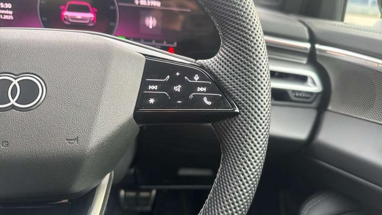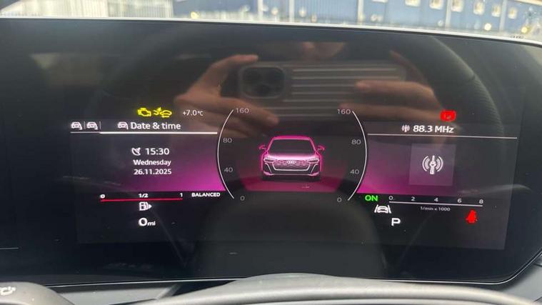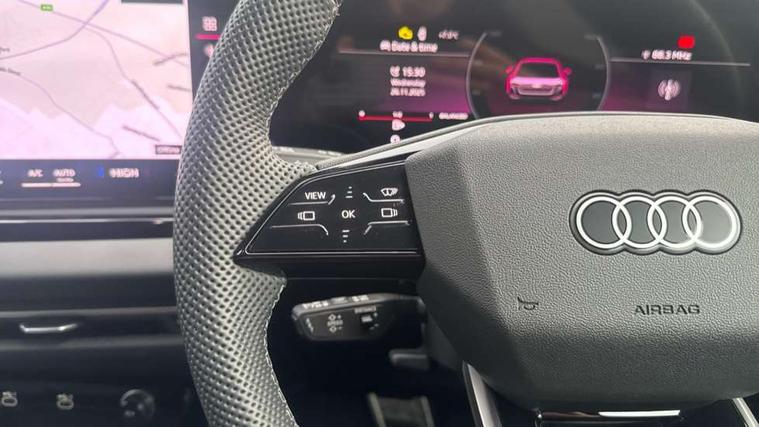 Adaptive cruise control, Advanced driver attention and fatigue montior, Audi application store, Audi assistant, Audi connect emergency call and service, Audi drive select, Audi smartphone interface, Audi virtual cockpit plus with 11.9" OLED colour display, Automatic start/stop system with coasting functionality, Camera based traffic sign recognition, Intersection assist, Lane departure warning, MMI navigation plus with high resolution 14.5" OLED touchscreen colour display, Park assist plus, Parking system plus with 360 display, Progressive steering with servotronic, Rear view camera, Swerve assist and turn assist, Traffic sign based speed limiter, Sports suspension lowered by 20mm, 2 USB-C ports in both the front and rear, Audi sound system impressive sound with 10 loudspeakers including centre speaker and subwoofer, 6-channel amplifier with a total output of 180 watts, DAB digital radio reception, Smartphone compartment with wireless charging, Aluminium window trims, Auto dimming rear view mirror, Body colour door mirrors, Door mirrors - electrically adjustable, heated, folding and auto dimming on both sides, Front and rear electric windows, Front door sill trims with aluminium inlays, illuminated with 'S' logo, High beam assist, LED headlights Plus incl. digital daytime running lights, turning light, all-weather light, motorway light, manouevring light and intersection light, LED rear lights pro incl. dynamic rear indicators and illuminated light strip with animated coming and leaving home function, LED third brake light, Privacy glass, Rear and side windows with heat insulating glass, Rear boot, Rear side wing doors, S Line badges on the front wings, S line bumpers, radiator grille and diffuser in phantom black and diffuser insert in matt anthracite, White rhombus logo projection light in exterior mirrors, Windscreen with acoustic glazing, 3 rear headrests, 3 seat rear bench, 3 spoke leather steering wheel with multi-function buttons with touch control, flattened on top and bottom, with S badging and contrast stitching, 3-zone automatic climate control, 40:20:40 split folding rear seat bench with centre armrest and cup holders, Comfort front centre armrest, Front and rear floor mats, Front seats with manual adjustment for position and 4-way electric lumbar support, Front sport seats with integrated headrest and S embossed logo, Headlining in black cloth, Heated front seats, i-Size child seat mounting on the front passenger side and outer rear seats, i-Size and top tether on the outer rear seats, Luggage compartment lid, electrically opening and closing, Manual steering column height and depth adjustment, Single front passenger seat, Stainless steel pedals and footrest, Steering wheel grips in perforated leather and shift paddles, Ambient lighting package plus - A5, 3x3 point rear seat belts, Driver airbag, Electric child safety locks, First aid kit with warning triangle and vests, Front emergency brake assist, Front passenger airbag, Front passenger airbag deactivation, Front side airbags with head airbag system and front interaction airbag, Hill hold assist, Seat belt monitoring with rear seat occupant reminder, Tyre pressure loss indicator, Anti theft alarm, Anti-theft wheel bolts, Keyless Go, Accent surfaces and control buttons in gloss black, Black dashboard with contrast stitching, Inlays in matt brushed aluminium with linear embossing, anthracite, Softwrap in leatherette with contrast stitching, Upper and lower interior elements in leatherette, Tyre repair kit,