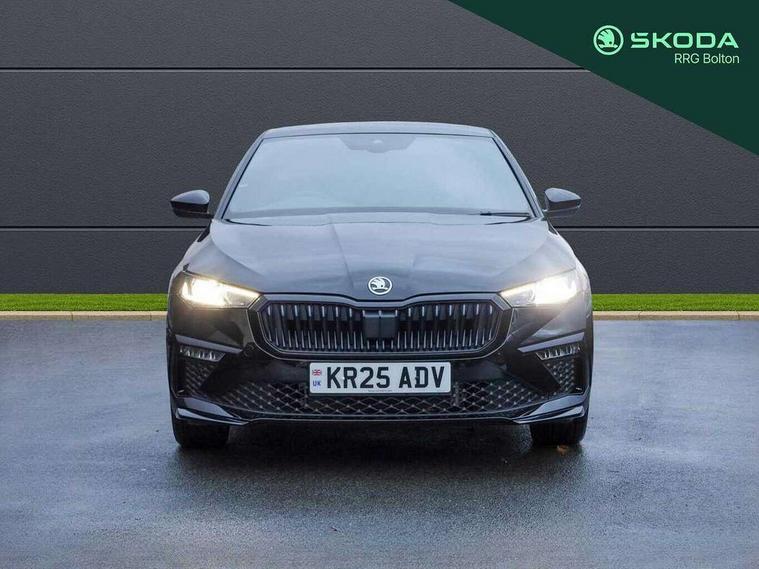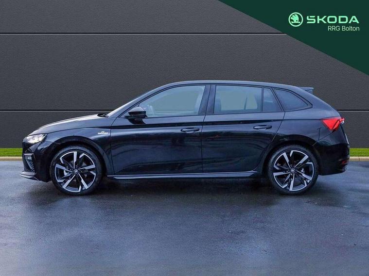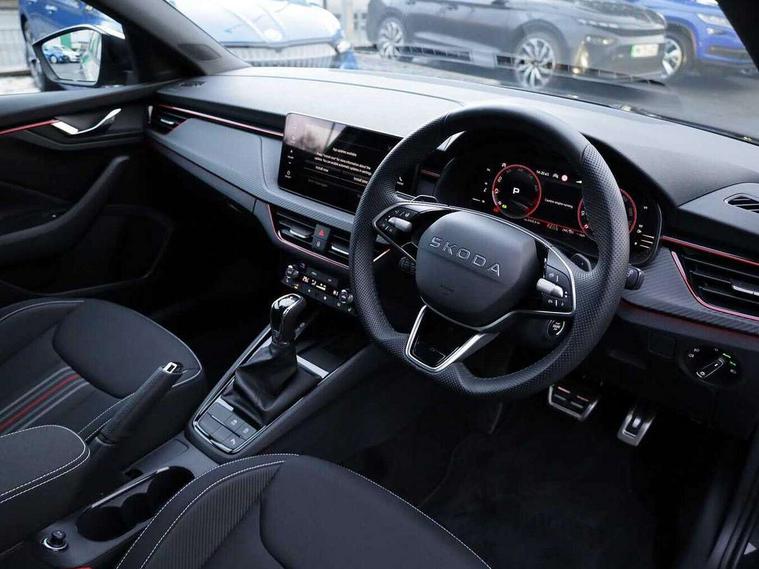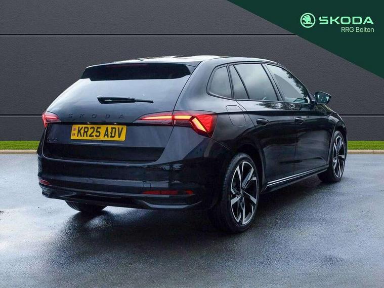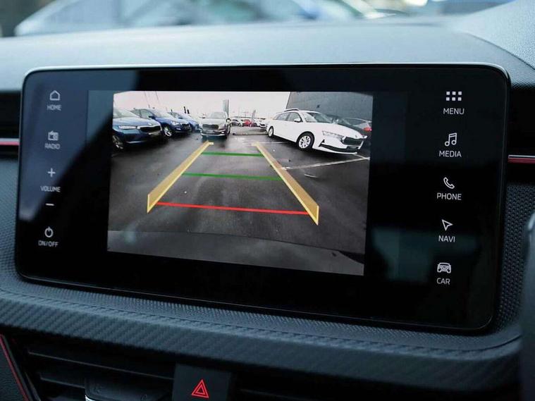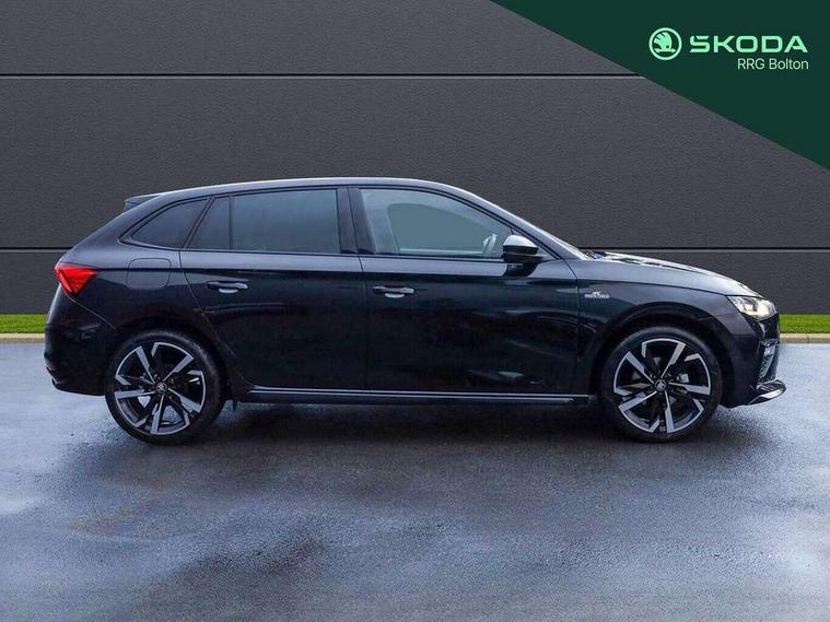 Advanced driver attention and drowsiness monitor, Bluetooth, e-Call (emergency call), Front assist system, PAS, Rear parking sensors, Rear view camera, Speed limiter, Tailgate, Traffic sign recognition, Virtual Cockpit - 10.25" digital display, Voice control system, Wireless smartlink, 4 USB C ports, 8 Speakers, 9.2" Skoda navigation display, DAB radio, Auto dimming rear view mirror, Automatic headlamp activation with Coming home and Leaving home feature, Automatic high/low beam, Automatic intermittent wipers, Black door mirrors, Black lettering on boot lid, Black radiator grille, Black rear diffuser, Black roof spoiler, Body colour bumpers, Body colour door handles, Chrome moulding around grille, Extended tailgate glass, Front and rear electric windows, Heated rear window, LED 3rd brake light, LED brake lights, LED daytime running lights, LED high beam, LED low beam, Light sensors, Monte carlo plaque, Panoramic glass roof, Privacy glass, Rear LED fog light, Rear side wing doors, Rear wiper, Tinted windows, Unique dark chrome design logo on alloy wheels, 12V socket in luggage compartment, 3 seat bench in 2nd row, Aluminium pedals, Ambient lighting in white/red, Black / White armrest stitching, Black ceiling, Black roof headlining, Cargo elements, Chrome inner door handles, Door inserts in art.leather carbon, Driver and passenger sun visors with vanity mirror, Dual zone climate control, Front and rear roof lights, Front centre armrest, Front head restraints, Height adjustable driver seat, Height adjustable passenger seat, Ice scraper, Illuminated glove compartment, Inner circulation control with pollen filter, ISOFIX for front passenger seat, Isofix preparation for back seats, Leather gearknob and handbrake lever, Luggage net under rear parcel shelf, Manual lumbar support for front seats, Monte Carlo cloth upholstery, Net package and top tether hooks in boot space, Pocket on the back of both front seats, incl. mobile phone pockets, Rear centre armrest, Red hotstamping, Single front passenger seat, Skoda lettering on steering wheel, Sport seats, Textile floor mats, Third rear headrest, Ticket holder, Top tether for front passenger seat, Umbrella in driver's door, Light and view plus pack - Scala, 3x3 point rear seatbelts, ABS, Child locks, Curtain airbags and front side airbags, Disc brakes, Driver and front passenger airbags, ESP, Hill hold control, Manual leather parking brake, One tone horn, Passenger airbag switch off function, Seatbelt reminder for driver and front passenger, Tyre pressure monitoring system, Anti theft alarm system with interior monitoring, backup horn and towing protection, Anti-theft wheel bolts, Remote central locking with 2 remote folding keys, SAFE function for remote central locking, Carbon effect decorative inserts, 18" Ursa black diamond cut alloy wheels,