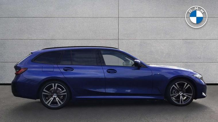 Active guard plus, Attentiveness assist, Automatic Start/stop button, BMW iDrive, BMW Teleservices, Condition based service, ConnectedDrive Services, Driving experience switch, Live cockpit plus with Navigation + 12.3" instrument display + 14.9" display, Intelligent voice assist, 2 USB, 4G LTE connect, Oil sensor for level and grade, Preparation for driver assistance, Shifting point display, Variable sport steering, Double joint spring strut front axle, Fuel tank breather system, M sport suspension, Sport automatic transmission with steering-wheel mounted gearshift paddles and launch control, DAB tuner, 3rd brake light, Acoustic glazing, Automatic headlight beam throw control with load dependent regulating reaction, dynamic compensation of braking dive and acceleration squat, BMW emblem, engine compartment lid and tailgate, Body colour roof fin, Door sill strips, Electric windows - front and rear, with open/close fingertip control, anti-trap facility and comfort closing, Follow me home headlight function, Front and rear bumper system with replaceable deformation elements, Front apron plastic in body colour, Fuel filler flap - right rear in body colour, Heated washer jets, High gloss shadow line exterior trim, High gloss shadow line roof rails, Illuminated bow type door handles in body colour drivers side with door lock, Interior rear view electrochromatic mirror with automatic anti dazzle function, LED headlights with LED daytime running lights and LED turn indicator, LED rear lights, Licence plate panel integrated into front bumper and tailgate, Matt black B-pillar finsher, Matt black window recess cover, Model designation on right side of tailgate, One piece front bumper cover including towing eye cover in body colour, Rain sensor with automatic headlight activation, Rear side wing doors, Rear wiper, Reversing lights, Side frame decorative moulding black matt, Visible exhaust tailpipe finisher, Welcome lights in interior and door handle area, 12V power socket in front storage compartment, 2 front cupholder in centre console with clamping elements and matt black inlay, 3 seat bench in 2nd row, 3 zone automatic air conditioning, 40:20:40 split folding rear seat with loading system, Ambient inside door handle light, Ambient light design projected onto the left and right entering and exiting area, Ambient lighting front and rear with 9 selectable colours, Ambient storage compartment lighting in the centre console, Anthracite headlining, Armrest integrated in front and rear door trim + front centre console armrest, BMW ID, Contour lighting in instrument panel and door trim panel, Cruise control operation in steering wheel, Driver backrest width adjustment, Folding rear centre armrest with 2 cupholders, Front and rear ambient footwell lighting, Front and rear door exit lighting (left / right), Front and rear headrests, Front and rear reading lights, Front and rear velour floor mats, Front sport seats, Heated front seats, Height adjustable mechanically and infinitely variable steering column, Illuminated armrest storage compartment, Illuminated glove compartment, Illuminated luggage compartment, Lashing eyelets in luggage compartment, M Sport multifunction leather steering wheel, Make-up mirror lights, Single front passenger seat, Standard seat for driver and passenger with manual adjustment, Sunvisors with vanity mirrors and ticket pocket, Toolkit located in luggage compartment, Connected pack professional - 3 Series Saloon/Touring, Interior and exterior mirror pack - 3 Series Touring/Saloon, M Aerodynamics package - 3 Series Saloon/Touring, M sport exterior styling pack - 3 Series Saloon/Touring, Storage compartment pack - 3 Series Saloon/Touring, 3x3 point rear seatbelts, BMW emergency call, Child locks on rear doors, Crash sensor activating of airbags, Unlocking doors, hazard warning lights, interior light, safety battery terminal, Driver and front passenger with seat occupancy detection for driver's and passenger side, Driver and passenger side airbags, body protection at side and airbags deploy from seat backrests, Dynamic brake control, Dynamic stability control + (DSC+) - Anti-lock Braking System (ABS) with brake assist and cornering brake control + Automatic Stability Control (ASC), Dynamic Traction Control - DTC, Electric parking brake including automatic hold function and automatic release of the parking brake when driving off, Electronic differential lock control (EDLC), Head airbags in 1st and 2nd row, head protection at side, curtain airbags open from headliner above 1st and 2nd row, Plastic fuel tank, Side impact protection, Tyre pressure monitoring with three level warning strategy, Ventilated front and rear disc brakes, Warning triangle and first aid kit, Alarm system, Centre lock switch, Closing system with central locking, Electronic vehicle immobiliser,