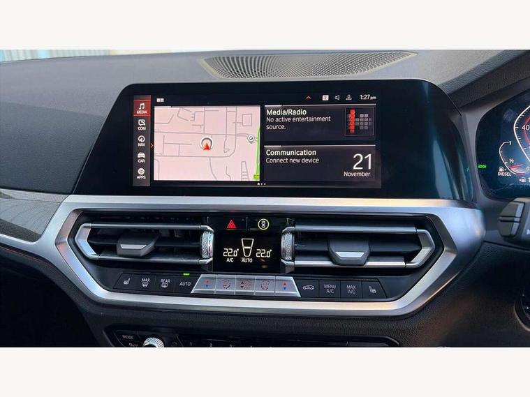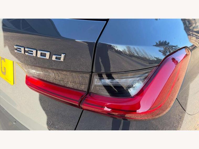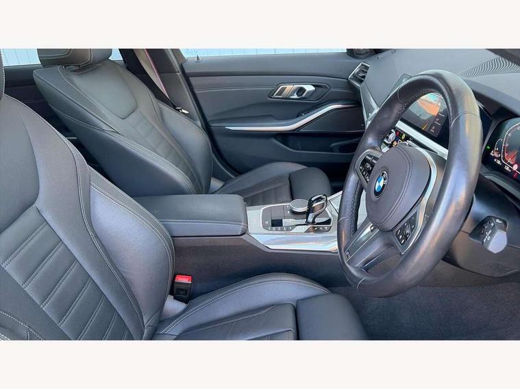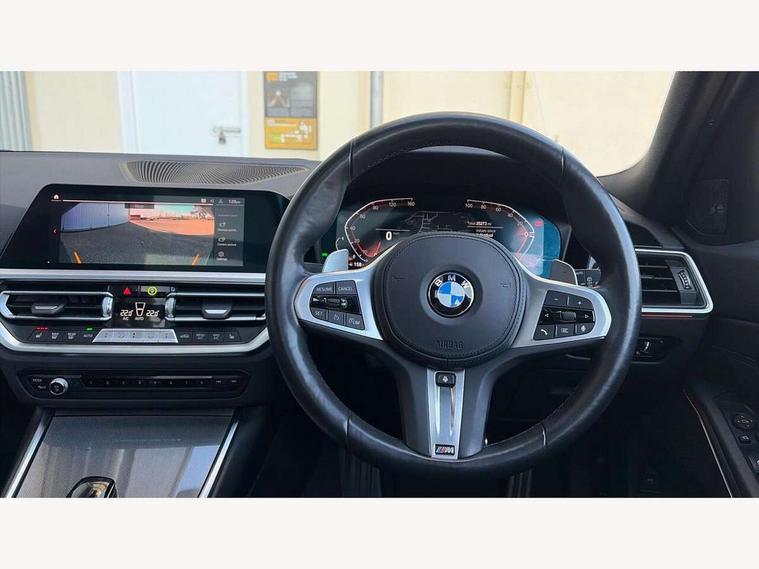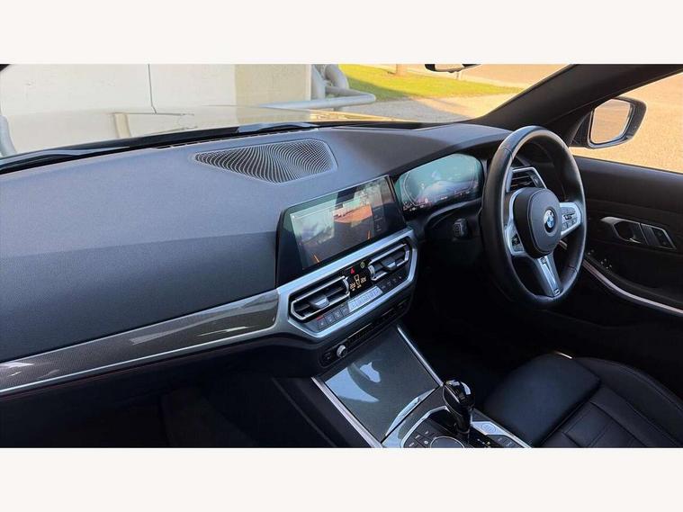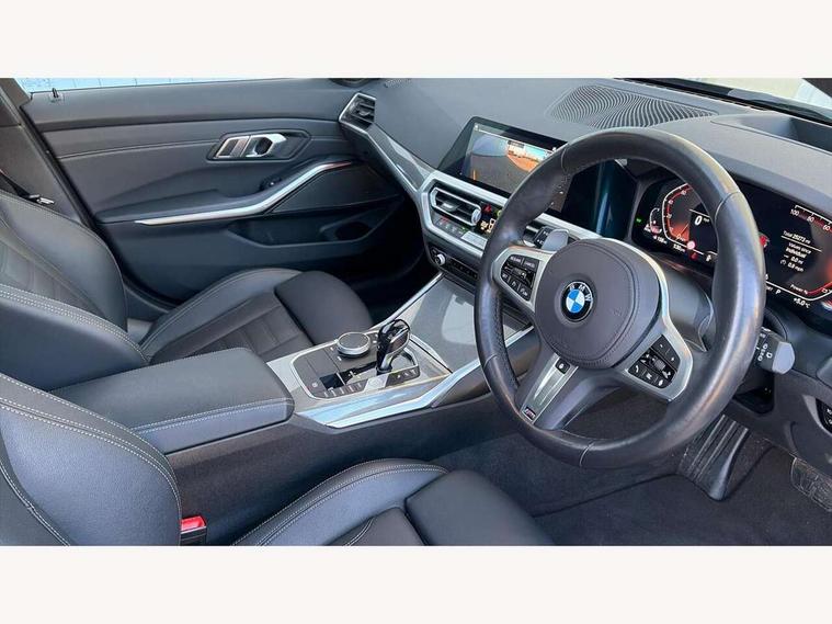 Active guard plus, Attentiveness assist, Bluetooth hands free facility with USB audio interface with audio streaming, BMW ConnectedDrive oline services with BMW apps, BMW iDrive controller on centre console, BMW service history, BMW Teleservices, Brake pad wear indicator in front and rear, Check Control warning system for monitoring of lights and door/luggage compartment open warning, Condition based service, Cruise control with brake function + speed limiter, Electric power steering with Servotronic steering optimised at all speed ranges, Gearshift time display in manual mode, Instrument cluster with speedometer with mph readout, tachometer, fuel gauge and oil temperature gauge, Integrated owners handbook, Oil sensor for level and grade, warning by check control system, On board computer - average speed+fuel consumption, service interval, clock/date, odometer/trip meter, outside temperature display and ice warning, Optimum shift indicator, Personal Profile - automatic lock when driving away selectable, Recovery braking system, Variable sport steering, 48V Mild hybrid technology, Adaptive M suspension, Balanced 50/50 weight distribution, Battery cut-out switch, Common rail technology, Diesel particulate filter, Drive performance control - ECO PRO, comfort and sport modes, EU6 emissions management, Incorrect fuelling protection, Larger capacity fuel tank, M Sport differential, Oxidation catalytic converter, Selective catalytic reduction (SCR) with AdBlue, Stroke dependent dampers, Twin scroll turbocharger, DAB tuner, Electronic service booklet, Stereo speaker system with 2 mid range speakers in the front door trims and rear parcel shelf + 2 central bass speakers underneath the front seats, Acoustic glazing, Active airstream chrome frame kidney grille with 8 high gloss black vertical slats, Automatic headlight activation/adjustment, Automatic headlight beam throw control with load dependent regulating reaction, dynamic compensation of braking dive and acceleration squat, Black mirror caps, Black roof mouldings, BMW Individual high gloss shadow line with extended contents, BMW individual lights shadow line, BMW Unique paint, Body colour door handles, Body colour fuel filler flap, Dynamic brake lights, Electric windows - front and rear, with open/close fingertip control, anti-trap facility and comfort closing, Exhaust tailpipe - split left and right, Exterior mirrors - electrically folding with anti-dazzle, Fading support, Front and rear bumper system with replaceable deformation elements, Front black door sill finishers with BMW designation, Green tinted heat protection glazing, High gloss black exterior B pillar, High gloss shadow line exterior trim, High gloss shadow line roof rails, Interior rear view electrochromatic mirror with automatic anti dazzle function, LED daytime running lights, LED front fog lights, Lightweight engineering, M designation on front side panels, left and right, Rear wiper, Shark fin antenna, Sun protection glass, Two part LED tailights in L-shape with components in smoked glass, brake light, LED turn indicator and rear fog light, Visible VIN plate, Welcome lights in interior and door handle area, Windscreen wipers with integrated washing jets, xDrive designation on left tailgate, 12V power socket in front storage compartment, 2 front cupholder in centre console with clamping elements and matt black inlay, 3 zone automatic air conditioning, 4 pieces lashing eyelets in luggage compartment, 40:20:40 split folding rear seat with loading system, Ambient lighting with welcome carpet light, Anthracite headlining, Armrest integrated in front and rear door trim + front centre console armrest, Backrest width adjustment, Centred top Luggage compartment lights, Four grab handles integrated in roof lining, Front and rear door exit lighting (left / right), Front and rear door pockets, Front and rear reading lights, Front and rear velour floor mats, Front head restraints, Front sport seats, Heated front seats, Height adjustable mechanically and infinitely variable steering column, Illuminated armrest storage compartment, Illuminated glove compartment with separate small compartment, Interior lighting - front centre over interior mirror with soft light, rear centre and front and rear footwell lighting, Make-up mirror lights, Rear centre armrest with 2 cupholders, Rear centre console with storage compartment and ventilation grille, Sunvisors with vanity mirrors and ticket pocket, Three spoke multifunction M sport leather steering wheel, Toolkit located in luggage compartment, Connected pack professional - 3 Series Saloon/Touring, Live cockpit professional pack - 3 series, M sport exterior styling pack - 3 Series Saloon/Touring, 2 tone horn, 3 rear seats with non folding headrests, Airbags activation controlled with intensity and scope, BMW emergency call, Brake energy regeneration, Braking pre-tensioning, Child proof locking system in rear door, Child seat ISOFIX attachment rear outer seats, Coasting in idle in ECO PRO mode, Crash sensor activating of airbags, Unlocking doors, hazard warning lights, interior light, safety battery terminal, Deactivation of fuel pump in the event of a crash, Driver and front passenger side airbags, integrated in the door side seat backrest bolsters for all seat variants, Driver/Front Passenger airbags, Dry braking, Dynamic brake control, Dynamic stability control + (DSC+) - Anti-lock Braking System (ABS) with brake assist and cornering brake control + Automatic Stability Control (ASC), Dynamic Traction Control - DTC, Electric parking brake including automatic hold function and automatic release of the parking brake when driving off, Electronic differential lock control (EDLC), Front passenger manual airbag deactivation, Head airbags for all 4 outer seats, Hill start assist, M sport seatbelt, Seat belt security check for driver and front passenger, Side impact protection, Three 3 point seat belts on all seats including front belt stopper, pyrotechni