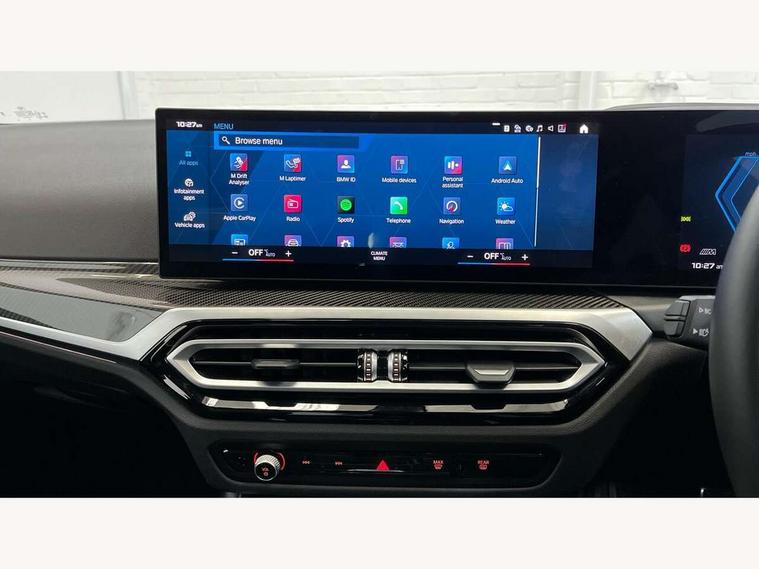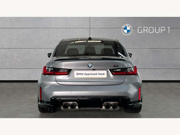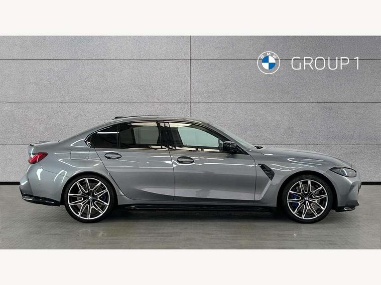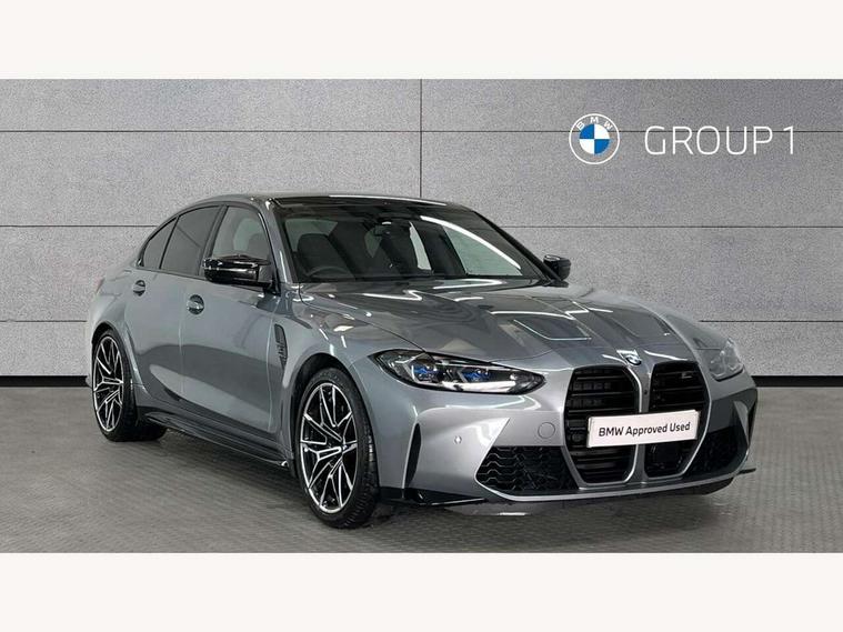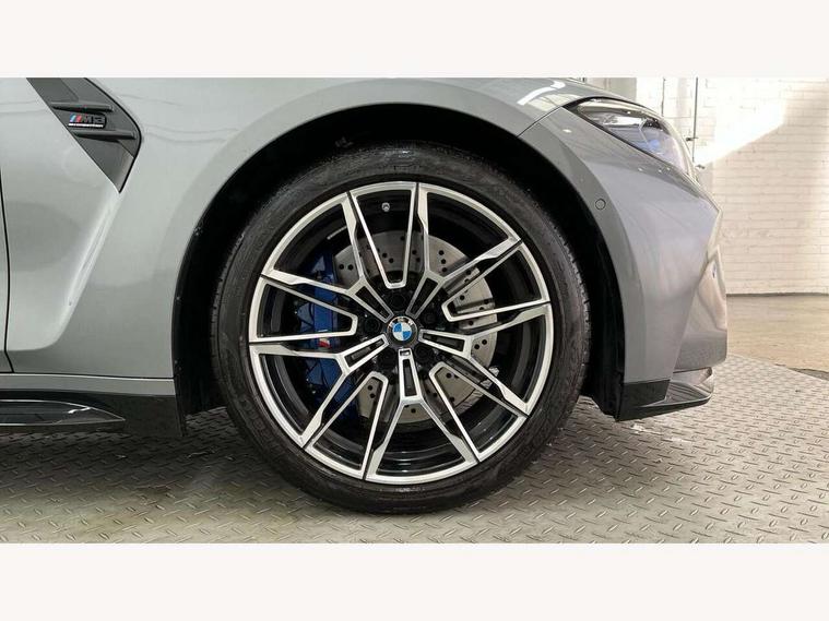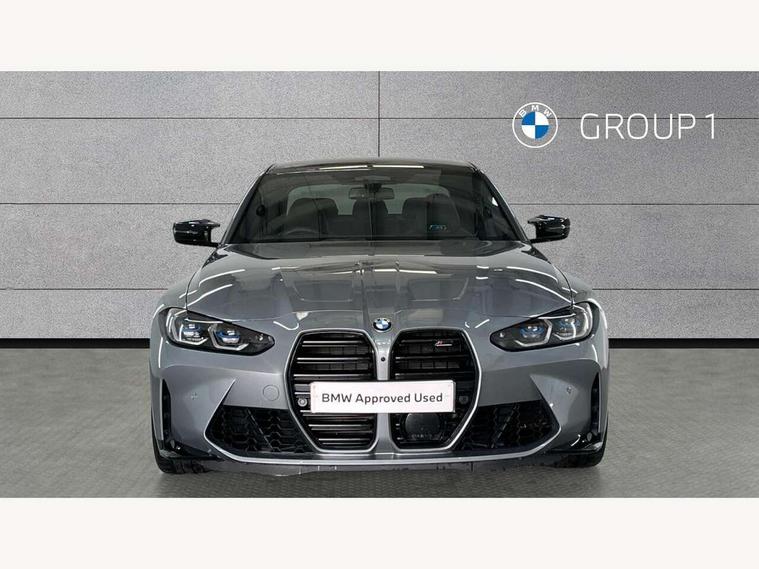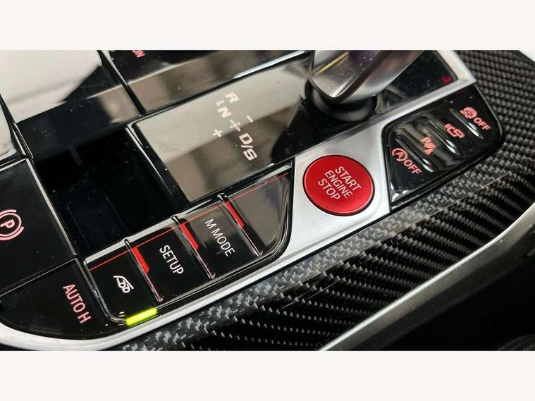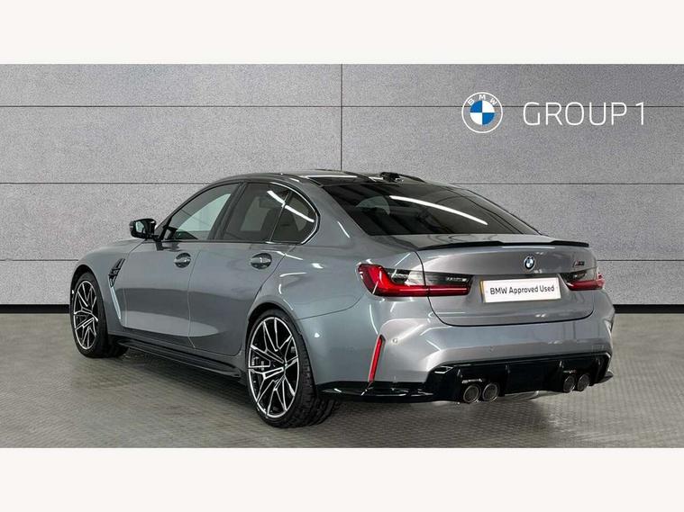 Active guard plus, Automatic start/stop system, Bluetooth functionality with Apple CarPlay/Android Auto, BMW iDrive controller on centre console, BMW legal emergency call, BMW Live Cockpit Professional sat nav system with 12.3" instrument display and high resolution control display, BMW Online services, BMW Teleservices, Brake pad wear indicator warning light, Condition based service, Connected drive services, Door/boot open warning light, Driving experience switch, Illuminated control elements, Instrument cluster with extended contents, Lights on warning, M drive buttons, Oil sensor for level and grade, warning by check control system, Oil temperature gauge, On board computer, On board diagnostics, Optimum shift indicator, Outside temperature display, Pull away assistant, Run flat indicator, Service interval indicator, Shifting point display, Speed limiter, Variable sport steering, Widescreen display, Adaptive M Sport suspension, Double joint spring strut front axle, M Drive Professional including track mode, laptimer, traction control & Drift analyser, M Sport differential, M steptronic sport transmission with drivelogic, Safety battery terminal clamp, 8 programmable favourite buttons, Auxiliary point for auxiliary devices, BMW professional radio/CD/MP3, DAB Digital radio, Harman/Kardon loudspeaker system, 3rd brake light, Acoustic glazing, Auto dimming driver's door mirror, Auto dimming rear view mirror, Automatic headlights + automatic windscreen wipers, Automatic parking function on front passenger's exterior mirror, Black chrome exhaust tailpipes, Black model designation badges, BMW emblem on engine compartment lid and tailgate, BMW high gloss shadow line with extended contents, BMW Individual shadowline lights, Body colour bumpers, Carbon fibre reinforced plastic (CFRP) roof with high gloss black roof aerial bulge and roof mouldings, Day time running light, Door mirror integrated indicators, Door sill finishers with aluminium inserts, Dynamic brake lights, Electric adjustable heated door mirrors, Electric folding door mirrors, Electric front and rear windows with one touch/convenient open/close function, Follow me home headlights, Front and rear apron plastic in body colour, Front and rear bumper system, Headlight beam throw control, Heat protection, sun protection glazing, Heated rear window with automatic switch off, Heated washer jets, High beam assistant, High gloss black frameless kidney grille with M badge, High gloss black lower bumper edges, side sills and diffuser edge binding, Illuminated bow type door handles in body colour drivers side with door lock, LED number plate light, LED tail lights with 3D L-shaped LED light design, M designation, M Sport entry door sill strips, Mirror glass aspheric on driver's side, convex on passenger side, Rear boot, Rear fog lights, Rear reflectors, Rear right M3 competition inscription, Rear side wing doors, Reversing light, Shark fin roof aerial, Strakes in front side panel, black matt/black high-gloss, with model badge, Visible VIN plate, Welcome lighting, 2 front cupholder in centre console with clamping elements and matt black inlay, 2 x 12 V Power sockets (luggage compartment and front centre console), 2 x USB Type C ports for charging and data transmission in front centre console, 3 folding rear headrests, 3 seat bench in 2nd row, Ambient inside door handle light, Ambient lighting for instrument panel, Ambient lighting for storage compartment, Ambient lighting front and rear, Ambient lighting in door panels, Anthracite headlining, Battery in luggage compartment, Carbon fibre centre console incl. cover for cupholders and storage compartment, Carbon fibre decorative steering wheel finishers, Carbon fibre shift paddles, Carbon fibre strip in instrument panel on front passenger side, Centre console armrest with storage compartment, Compartment in front of cupholder, Driver/passenger sunvisors with illuminated vanity mirrors + covers, Dynamic ambient interior lighting, Electric front seats + driver memory, English handbook, Floor mats in velour, Folding rear centre armrest with 2 cupholders, Footwell lighting, Front and rear door exit lights, Front door storage bins with bottle holder, Front interior light, Front isofix attachment + airbag deactivation, Front seat backrest width adjustment, Front seats lumbar support, Front/rear door armrests, Gearshift lever with embossed M badge, Heated front seats, Height adjustable front headrests, Interior mirror lighting, Isofix on 2nd row outer seats, Lockable/illuminated glovebox, Luggage compartment lighting, Manual 40:20:40 split folding rear seat with two tilt positions for backrest, Multifunction steering wheel, Rake/reach adjustable steering wheel, Single front passenger seat, Storage compartment in rear doors, Three zone automatic air conditioning, Through loading system, Toolkit located in luggage compartment, Wireless charging tray, Additional storage compartment pack - M3, Connected package professional - M3, High gloss shadowline exterior trim pack - M3, 3 point seatbelts on all seats, ABS/EBD, Automatic Stability Control (ASC), Brake energy regeneration, Brake fade compensation, Compound structure brake discs, Cornering brake control (CBC), Crash sensor, Driver/Front Passenger airbags, Dry braking, Dynamic brake control, Dynamic Stability Control with M Dynamic mode, Dynamic Traction Control - DTC, Electromechanical parking brake, Electronic differential lock control (EDLC), Front and rear head airbags, Front seat side impact airbags, Front seatbelt pretensioners + load limiters, Hill start assist, M Sport seat belts, Rear child proof door locks, Seat occupancy detection for driver and passenger side, Seatbelt warning, Side impact protection, Two tone horn, Tyre pressure sensor, Warning triangle and first aid kit, Centre lock switch, Closing system with central locking, Digital key, Electronic immobiliser, Thatcham cat 1 remote alarm, Vehicle Key with 4 buttons including the integrate