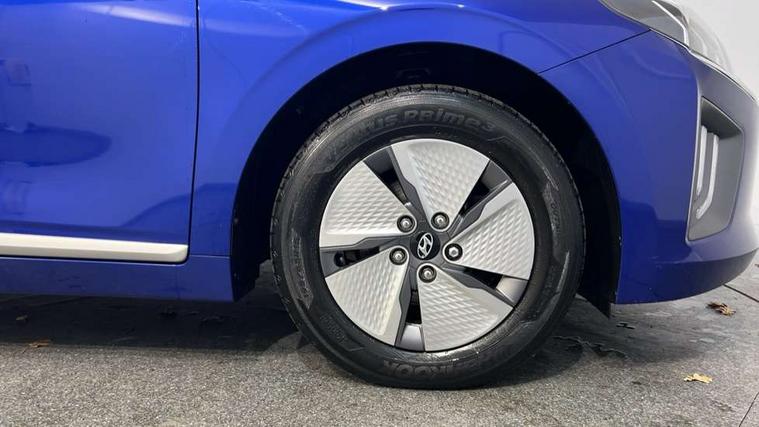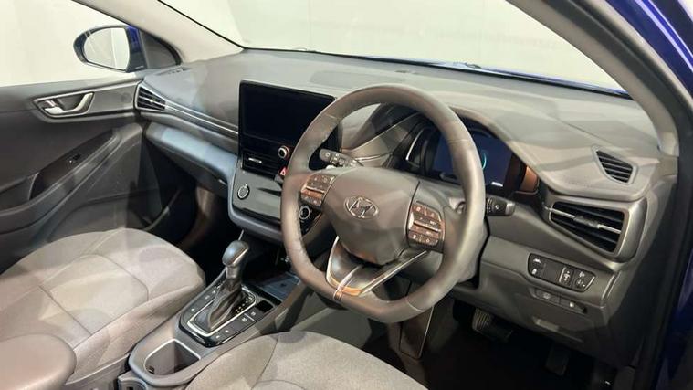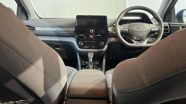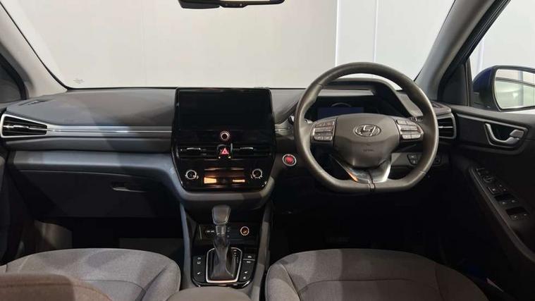 10.25" touchscreen satellite navigation includes traffic messaging channel, mapcare, live services and bluelink, Apple car play/Android Auto, Bluetooth system, Cruise control, Driver attention alert system, E-call, Eco driving assistant system (ECO DAS), Electric power steering with variable drive modes, Gear lever drive mode selector, Lane departure warning system with lane keep assist - LKAS, Parking Brake - Foot Brake, Parking system with rear camera and guidance system, Rear parking sensor, Rear view monitor, Roadside assistance, Supervision cluster with 7" high resolution TFT LCD, Voice recognition, Windscreen washer fluid sensor and warning indicator, Wireless phone charging pad, DAB Digital radio, Infinity sound system includes 1 centre, 2 tweeters, 2 front, 2 rear and 1 ext amp, Radio data system, Steering wheel audio, phone and cruise controls, USB and aux connection in front, Active air flap radiator grille, Auto dimming rear view mirror, Automatic headlights with dusk sensor, Body colour bumpers, Body colour door handles with chrome inserts, Body colour door mirrors, Bodyside mouldings, Chrome door scuff with ioniq logo, Chrome finish window surround, Chrome radiator grille, Door mirror puddle lights, Electric adjustable door mirrors, Electric front windows - anti trap + one touch, Electric heated door mirrors, Heated rear windscreen, High beam assist, LED daytime running lights, LED Headlights, LED indicators in door mirrors, LED rear fog light, Positioning Lights - LED, Power folding door mirrors, Rain sensor, Rear electric windows, Rear LED lights, Rear roof spoiler with integrated LED brake light, Rear side wing doors, Rear wiper, Solar glass with windscreen shade band, Tinted windows, Two tone rear bumper, Variable front intermittent wipers, 12V power outlets, 3 rear seats, 60/40 split folding rear seat, Centre console storage, Centre interior light, Chrome interior door handles, Cloth upholstery, Driver seat height adjust, Driver's electric adjustable lumbar support, Driver/passenger sunvisors with illuminated vanity mirrors, Dual zone climate control, Front centre armrest with storage compartment, Front cupholder, Front head restraints with vertical and horizontal adjustment, Front seat and rear pockets, Heated front seats, Heated steering wheel, Illuminated luggage compartment, Interior mood lighting, Leather wrapped steering wheel, Luggage net, Manual height adjustable front passenger seat, Map and reading lights, Paddle shifter, Rear centre console with air vents, Single front passenger seat, Sunglasses holder, USB - driver arm rest (charging only), Vertical adjustment rear head restraints, 3x3 point rear seatbelts, Airbags - front, front side, curtain and drivers knee airbags, Anti-lock brake system (ABS), Autonomous emergency braking, Electronic stability control, Front passenger airbag deactivation switch, Hill start assist control (HAC), Manual child lock in rear doors, Regenerative braking system, Traction control, Tyre pressure monitoring system with individual tyre pressure display, Deadlocks, Immobiliser, Keyless smart entry with push button start, Remote central locking, 15" Design B alloy wheels, Tyre repair kit,