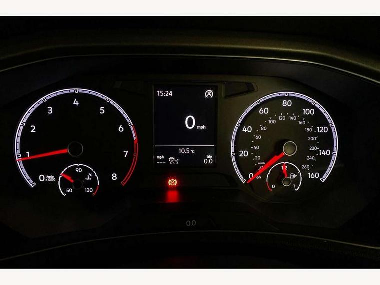 App-Connect, 'Lights On' Reminder warning buzzer, 2 USB connection charging sockets, Adaptive cruise control with front assist, radar sensor controlled distance monitoring, city emergency braking, Automatic start/stop system, Bluetooth telephone and audio connection for compatible devices, Car information display, Driver tips and journey analysis, Dusk sensor, Lane assist, Multifunction computer with visual gear change recommendation for fuel consumption, Service interval indicator, Think blue trainer driver tips and journey analysis, Warning sound and light for doors and tailgate open, Warning sound and light for front seatbelts unfastened, We Connect Go Dongle, Battery regeneration during braking, DAB Digital radio, Multi device interface (MDI) with USB connection, Music playback - MP3, WMA and AAC files, Premium USB cable in choice of either Apple or Android smartphone compatibility, SD card slot, Simultaneous pairing of 2 compatible mobile devices, SMS functionality - read, compose and send SMS messages using touch-screen display, Title and cover art display, Auto dimming interior rear view mirror, Automatic hazard lights activation under emergency braking, Black grained lower door protectors, Black grained wheel arches, Body colour bumpers with silver metallic underbody fascia, Body colour door handles, Chrome trim on upper and lower radiator grille, Electrically foldable, adjustable and heated door mirrors with puddle lights and reverse activated kerb-view adjustment on passenger's door mirror, Front and rear electric windows, Front windscreen wiper with intermittent wipe and 4 position delay, Fully galvanised body, Heated rear window, High level 3rd brake light, LED rear number plate lights, Manual coming/automatic leaving home lighting function, Rain sensor, Rear wash/wipe with intermittent wipe setting, 12V socket in centre console storage area, 2 front reading lights, 3 rear head restraints, 4 load lashing points in luggage compartment, Climate control - 2 zone electronic air conditioning with automatic air recirculation and allergy filter, Drawer under drivers seat, Front centre armrest with storage compartment, longitudinal and height adjustable and two rear air vents, Front cupholders x 2, Front seat back storage pockets, Glovebox, Height adjustable front seats, Height/reach adjust steering wheel, Illuminated vanity mirrors, Instrument lighting, white adjustable panel illumination, Interior light delay, Isofix easy fit child seat preparation for 2 outer rear seats, Load through provision with single cup holder when folded down, Luggage compartment cover, removable, Luggage compartment lighting, Split folding rear seat backrests with centre armrest, Storage compartment in left and right luggage area, Storage compartment in rear doors, Storage compartments in driver and front passenger doors, 3 rear three point seatbelts, ABS, Curtain airbags, Driver and front passenger safety-optimised head restraints, Drivers and front passengers airbags with passengers deactivation switch, Electronic parking brake with auto hold, Electronic stability control (ESC) includes ASR, EDL, EDTC and trailer stabilisation function, Front seat side impact airbags, Predictive pedestrian protection, Rigid safety cell with front and rear crumple zones, Three point height adjust front seatbelts + pretensioners, Tyre pressure loss indicator, Ventilated front and rear disc brakes, Volkswagen roadside assistance, Alarm with interior protection and deactivation via infotainment system, Electronic engine immobiliser, Remote central locking with 2 remote folding keys, Limestone grey decorative inserts in dash and door panel, Steel space saver spare wheel,