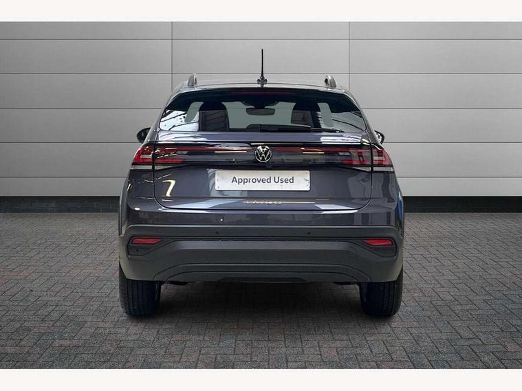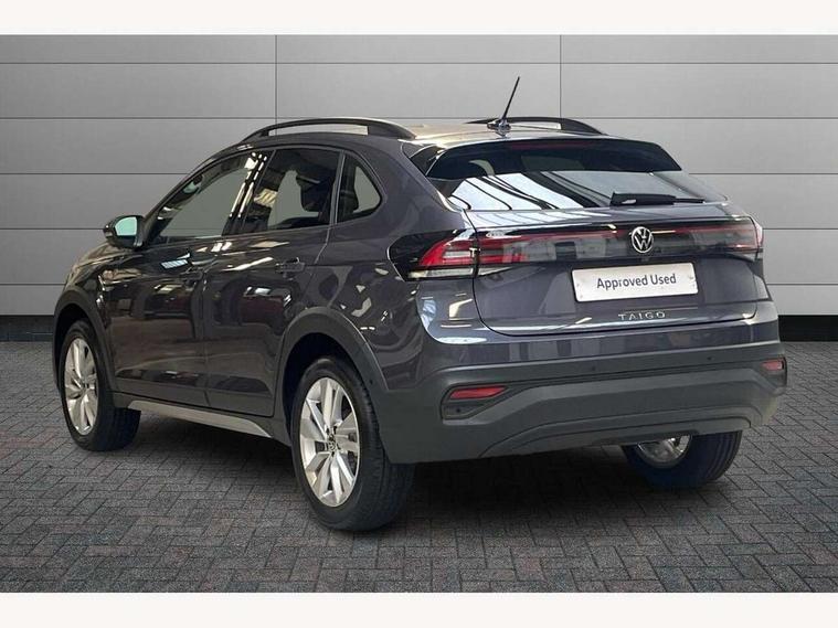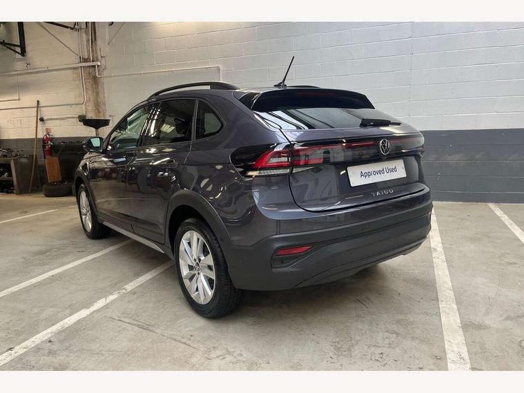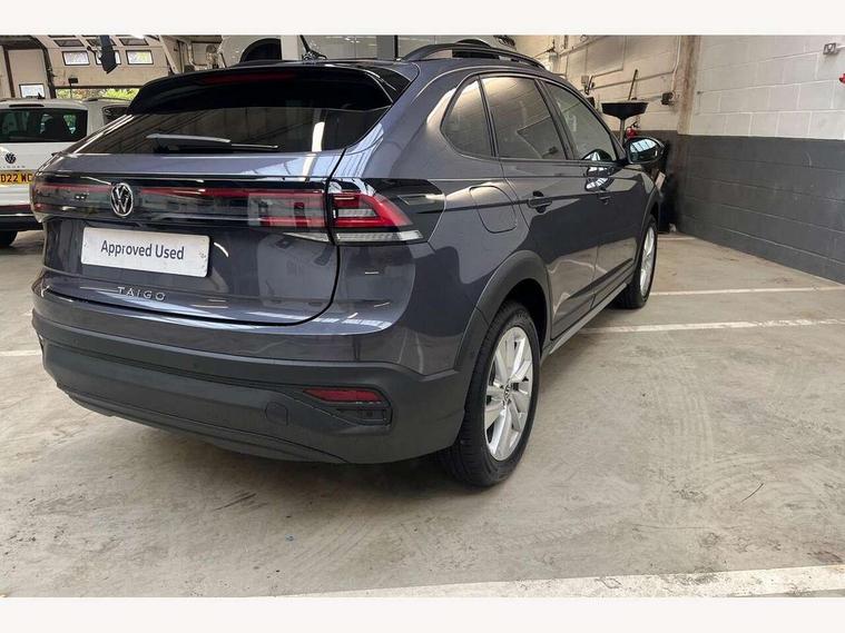 8" Digital cockpit basic display, Adaptive cruise control, Advanced driver attention and drowsiness monitor, Dynamic road sign display, e-Call (emergency call), Power Steering, Rear view camera, Travel assist including emergency assist, Washer fluid level indicator, Wireless Charging including Bluetooth, Start-stop system with battery regeneration (recuperation - energy recovery during braking), Digital radio reception (DAB+), WeConnect plus, Ambient lighting with logo projection, Aspherical driver's exterior mirror, Body coloured bumpers, Body coloured exterior mirror housings and door handles, Electric windows, External USB type C socket and charging sockets, Heat insulating glass windscreen, LED rear combination lamp, LED third brake light, Left convex exterior mirror, Power folding adjustable/heated exterior mirrors and front passenger exterior mirror lowering function, Rear fog light on one side, reversing light on both sides, Rear side wing doors, Rear wash/wipe with intermittent wipe setting, Side windows in heat-insulating glass, from B-pillar and rear window dark tinted, 'Slash/ Austin' Cloth upholstery, 12V socket in centre console, 2 front reading lights, 3 rear head restraints, 3 seat bench in 2nd row, Black carpets, Ceramique headliner, Child seat anchor for child seat system i-Size, 2x top tether and child seat anchor in front on front passenger side, Door and side trim panels in titan black, Driver and front passenger seat height adjustment, Front centre armrest, Handbrake lever handle in leather, Height and reach adjustable steering wheel, Leather trimmed gear knob, Leather wrapped multifunction steering wheel with paddle shift, Luggage compartment floor, Luggage compartment light, Lumbar support for driver's and front passengers seat, Seat covers in titanium black, Single front passenger seat, Split folding backrest with centre armrest and unsplit rear seat bench, Storage compartment under front seats, Sun visors with illuminated vanity mirrors, Titanium black instrument panel, Chrome Package - Taigo, Drivers assistance package - Taigo, Light and sight pack - Taigo, 2 x 3-point seatbelts/outer rear seats with ECE label, 3-point seat belts in front with pretensioner and height adjustment, 3-point seatbelt for centre rear seat, Driver and front passenger airbag with front passenger airbag deactivation, Driver and front passenger safety-optimised head restraints, Electronic stability control, Extended and predictive pedestrian/ cyclist protection, Front and rear disc brakes, Front curtain and side airbags with center airbag, Hill start assist, Manual rear child locks, Single tone horn, Tyre pressure loss indicator, Anti-theft alarm system with interior monitoring, backup horn, and towing protection, Keyless locking and starting system keyless access with safelock, Black (slush) Dashboard, Lava stone black gloss/matt decorative inserts in dash and front door panels, Low rolling resistance tyres,