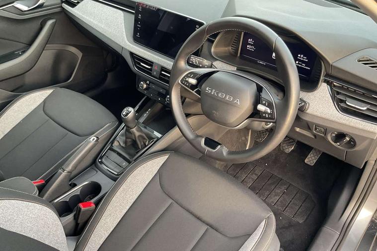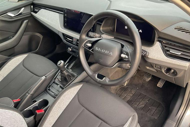 Advanced driver attention and drowsiness monitor, Bluetooth, e-Call (emergency call), Front assist system, PAS, Rear parking sensors, Rear view camera, Speed limiter, Tailgate, Traffic sign recognition, Virtual Cockpit - 10.25" digital display, Voice control system, Wireless smartlink, 4 USB C ports, 8 Speakers, 9.2" Skoda navigation display, DAB radio, Auto dimming rear view mirror, Automatic headlamp activation with Coming home and Leaving home feature, Automatic high/low beam, Body colour bumpers, Body colour door mirrors and handles, Chrome moulding around grille, Front and rear electric windows, Full LED headlights, Heated rear window, LED 3rd brake light, LED brake lights, LED daytime running lights, LED front turning lights, LED high beam, LED low beam, LED taillights, Rear LED fog light, Rear side wing doors, Rear wiper, Tinted windows, Unique dark chrome design logo on alloy wheels, 12V socket in luggage compartment, 3 seat bench in 2nd row, Black / Grey armrest stitching, Black hotstamping, Cargo elements, Chrome inner door handles, Door inserts in satin black, Driver and passenger sun visors with vanity mirror, Dual zone climate control, Front and rear roof lights, Front centre armrest, Front head restraints, Glasses storage in roof liner, Height adjustable driver seat, Height adjustable passenger seat, Ice scraper, Illuminated glove compartment, Inner circulation control with pollen filter, ISOFIX for front passenger seat, Isofix preparation for back seats, Leather gearknob and handbrake lever, Loft cloth upholstery, Luggage net under rear parcel shelf, Manual lumbar support for front seats, Net package and top tether hooks in boot space, Pearl grey ceiling, Pocket on the back of both front seats, incl. mobile phone pockets, Single front passenger seat, Skoda lettering on steering wheel, Textile floor mats, Third rear headrest, Ticket holder, Top tether for front passenger seat, Umbrella in driver's door, 3x3 point rear seatbelts, ABS, Child locks, Curtain airbags and front side airbags, Disc brakes, Driver and front passenger airbags, ESP, Hill hold control, Manual leather parking brake, One tone horn, Passenger airbag switch off function, Seatbelt reminder for driver and front passenger, Tyre pressure monitoring system, Anti theft alarm system with interior monitoring, backup horn and towing protection, Anti-theft wheel bolts, Remote central locking with 2 remote folding keys, SAFE function for remote central locking, Decord pad, door inserts Kota uni,