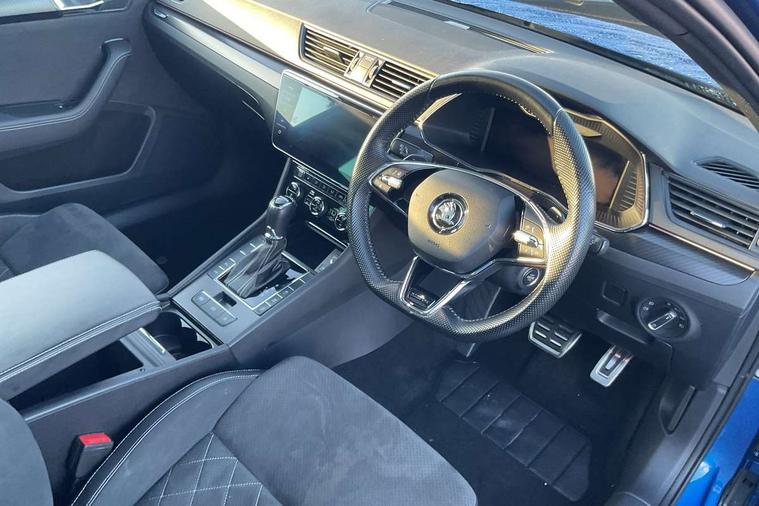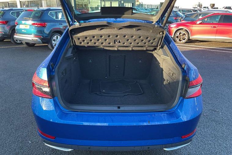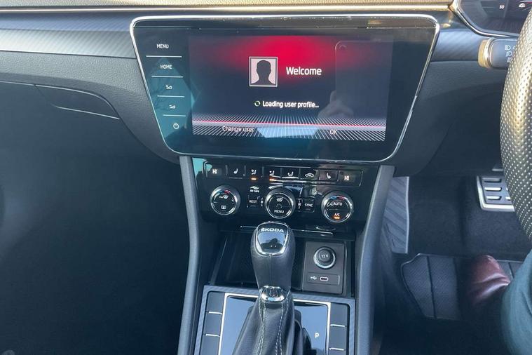 Bluetooth system, CareConnect and Emergency Call, Columbus HDD satellite 3D map navigation with 9.2" colour touch screen, web radio, integrated Wi-Fi, Driver fatigue sensor, Front assist with pedestrian protection, Progressive dynamic steering, Stop/start engine system and energy recovery, Virtual cockpit, Voice control system, Wireless smartlink apple carplay, SmartLink+ android auto, XDS+, 2 USB ports, Bolero radio with 8" touchscreen display, DAB Digital radio, 3rd brake light, Aero front windscreen wipers with intermittent function, Auto dimming rear view mirror, Black rear badge, Body colour door handles, Cornering front fog lights, Electrically adjustable heated and folding door mirrors with memory function, Front and rear electric windows, Full matrix LED headlights with AFS LED DRL integrated with headlight washer LED rear lights(High function), dynamic indicators and lighting animation, Gloss black exterior door mirrors with sports styling including front grill, side strip and window surrounds, Gloss black grille surround with gloss black rib elements, Gloss black rear spoiler (roof), Gloss black strip between rear lights, Light assistant (coming/leaving home/tunnel light), Privacy glass, Rain sensor, Rear exhaust diffuser styling elements, Rear side wing doors, Sportline badging, 12v power point in centre console, 3 seat bench in 2nd row, Black roof headlining, Black textile floor mats, Carbon optic interior elements, Electric auxiliary air heater, Front and rear footwell illumination, Front armrest with storage box, Height adjustable front and rear head restraints, Ice scraper, Illuminated and cooled glovebox, Interior lights with control switches, Isofix child seat fittings on outer rear seats, LED front and rear reading lights, Microsuede/leather upholstery with silver diamond stitching sports seats, One umbrella compartments in driver door with one umbrella in drivers door, Overhead glasses storage compartment, Rear centre armrest with cupholders, Removable parcel shelf, Single front passenger seat, Split folding rear seats, Storage compartment with cover in luggage compartment side panels, Ticket holder on A Pillar, LED package plus - Superb, 3 rear seatbelts, 7 airbags - Front, front side, curtain, driver's knee airbag with front passenger deactivation switch, Driver and passenger seatbelts with warning light, Electronic parking brake, ESC including ABS, EBV, MSR, ASR, EDS, HBA, DSR, RBS, CBC, multi-collision brake (MKB) and Auto hold, Hill start assist, Power operated child lock in rear doors, Tyre pressure monitor, Alarm with interior monitoring tilt sensor and back up horn, Electronic engine immobiliser, Keyless entry and start/stop, Remote central locking with SAFE system, Third remote key,