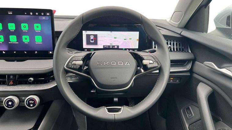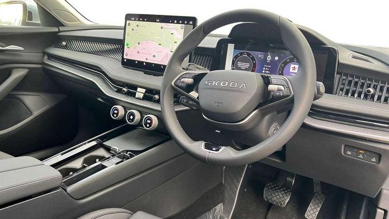13" touchscreen display with satellite navigation, 4x USB-C ports (2x in front centre console and 2x in rear) (45W), Adaptive cruise control with speed assist, lane assist plus and traffic tram assist, Blind spot detection with door exit warning, Bluetooth system, CareConnect and Emergency Call, ChatGPT functionality, Driver fatigue sensor, Easy boot close funtion, Front assist with extended predictive pedestrian protection, Front cross traffic assist, Quick start all heating software functionality, Stop/start engine system, Traffic sign recognition, Turn assist with evasive assistance, Virtual Cockpit - 10.25" digital display, Voice control system, Washer for rear camera, Wireless charging for one smartphone (15W) with cooling function, Wireless smartlink apple carplay, SmartLink+ android auto, DAB Digital radio, Display cleaner, FM radio connection, Web radio connection, Acoustic side windows and interior noise suppression, Backdrop lighting, Body colour door handles, Body coloured door mirrors, Chrome window surround, Dark chrome grille surround, Dynamic range control with poor weather light and integrated fog light, Electrically adjustable, heated, folding and driver side auto-dimming door mirrors with memory function, integrated indicators and logo projection, Frameless auto-dimming rear view mirror with USB-C, Ice scraper in fuel tank cap, LED 3rd brake light, Light assist with High beam control, Light assistant (coming/leaving home/tunnel light), Privacy glass, Rear fog lights (x2), Rear side wing doors, Unique dark chrome design logo on alloy wheels, Windscreen wipers with rain sensor, 12V socket 1x centre console 1x boot, 14-way electrically adjustable, memory, front seats with 4-way pneumatic lumbar support, and extendable thigh support with smart comfort entry aid, 2x cargo elements in boot, 2x light in boot, 3 seat bench in 2nd row, 60:40 Split folding rear seats, Advanced massage function for front seats, Bottle holders in the front doors 1.5 litre bottle and rear 1.5 litre bottle, Cup holder in front with easy open mat, Front armrest with storage box, Front sports comfort seats, Heated and ventilated front seats, Height adjustable front and rear head restraints, Illuminated glovebox, Interior lights with control switches, Isofix child seat fittings in outer rear and front passenger seats, LED front and rear reading lights, Single front passenger seat, Skoda lettering on steering wheel, Storage compartment with cover, Storage pockets on back of front seats, Sun visors with illuminated vanity mirrors, Ticket holder on A Pillar, Tri zone climate control, Umbrella in driver's door, Light and view package - Superb, Transport package - Superb Hatchback, 3 rear seatbelts, 8 Airbags - Front driver and passenger, front side driver and passenger, centre, curtain front and rear, drivers knee, Crew protect assist, Driver and passenger seatbelts with warning light, Electronic parking brake, ESC including ABS, EBV, MSR, ASR, EDS, HBA, DSR, RBS, CBC, multi-collision brake (MKB) and Auto hold, Hill hold assist, Power operated child lock in rear doors, Alarm with interior monitoring tilt sensor and back up horn, Backrest remote release from trunk, Electronic engine immobiliser, Keyless start/stop, Remote central locking with SAFE system, Third key, Walk away locking, Decorative front door sills,