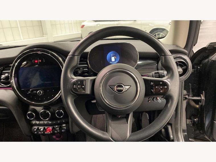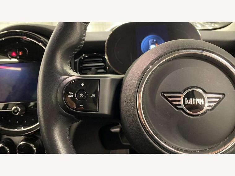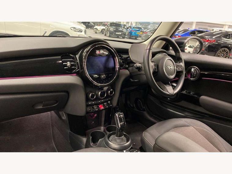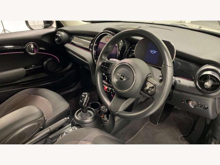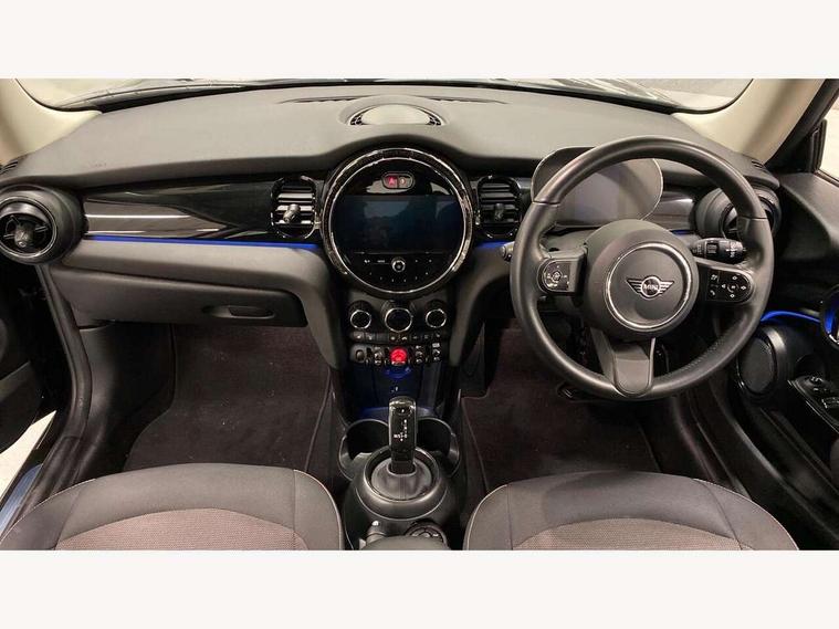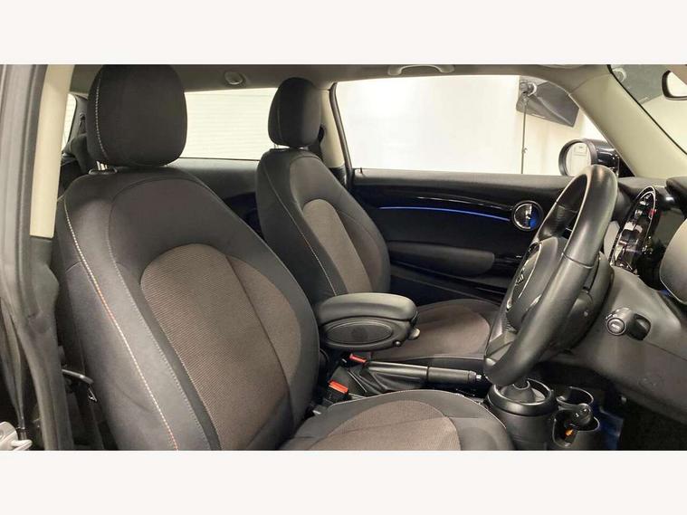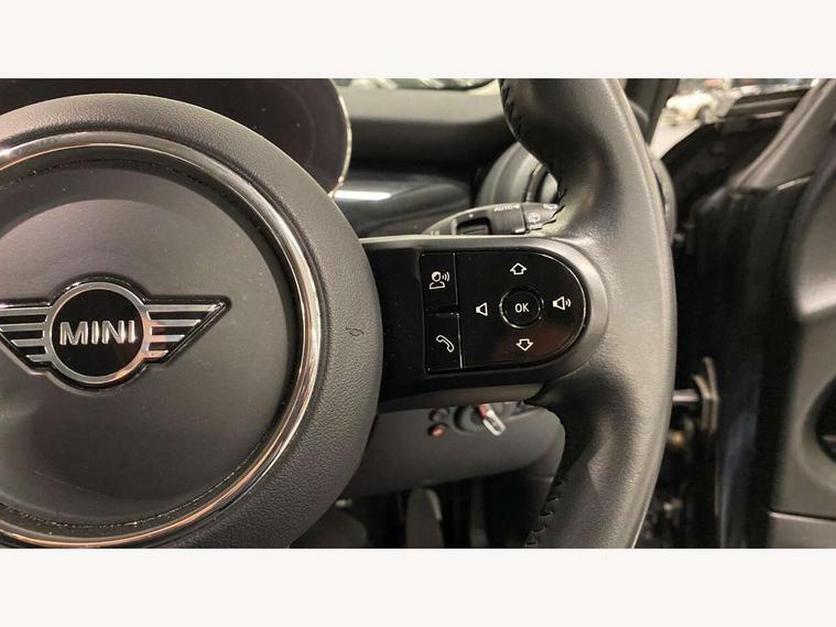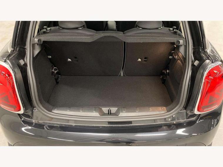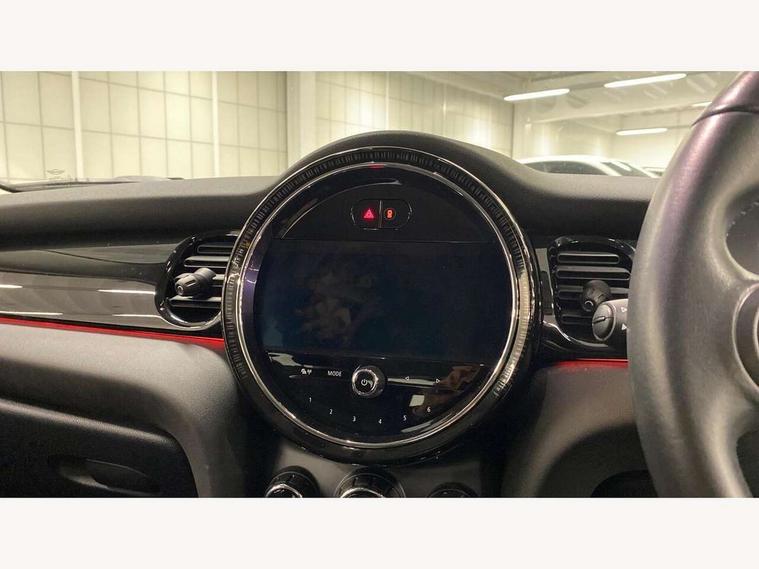 Apple CarPlay, Automatic start/stop function with brake energy recuperation, Compatible mobile phone bluetooth with audio streaming, Cruise control with brake assist, Electro-mechanical speed dependant steering assistance, Flexible car sharing preparation, Instrument cluster, Mini E-call, MINI TeleServices, On board computer, Service interval indicator, Double Vanos system, Fully variable valve control, High precision injection, Performance Control, Steptronic transmission with double clutch, 8.8" touchscreen with LED ring, FM tuner and DAB digital radio, 3rd brake light, Automatic headlight activation switch, Body colour fuel filler cap, Chrome border high gloss black slats radiator grille, Dynamic brake lights, Electric front windows, Exhaust tailpipe on left with chrome finisher, Heated rear window, Heated windscreen washer jets, LED headlight with closed ring and daytime driving lights, Metal door sill strips with MINI imprint, Model logo Cooper on right of tailgate, Rain sensor window wipers, Rear fog lights, Rear LED lights with union jack design, Rear window wiper, Side scuttle panel with integrated indicator, Sun/heat protection glass, White indicator lenses, 12V Accessory socket in centre console, 2 seat bench in 2nd row, 4 lashing eyes in luggage compartment, 60/40 split folding rear seat, Ambient lighting, Carbon black colour line - Knee roll and door armrest, Chrome interior highlights, Cupholders, Front and rear head restraints, Front and rear isofix with front passenger airbag deactivation, Front floor mats in velour, Glove compartment, Height and length steering column adjustment, Interior lighting with 12 different colours across the dashboard, underneath door bezel with illuminated laser-engraved design on central display, Leatherette gearshift lever and handbrake gaiters, LED reading lights, vanity mirror lights, front foot well light and spotlight on front seats, Manual air conditioning, Mechanical seat adjustment - forward/back & backrest for front seats and driver seat height adjust, Multifunction steering wheel, Passenger seat height adjuster, Satellite grey headlining including grab handles and clothes hooks, Single front passenger seat, Sport leather steering wheel with speed limiter and audio/communication controls, Storage compartments in doors, Sunvisors with vanity mirrors, 3 point seatbelts on all four seats, 6 Airbags - front, side, head and seat belt tensioners, Anti-lock braking system (ABS), DSC - Dynamic Stability Control, Front and rear disc brakes, Single tone fanfare horn, Tyre pressure monitoring system, Alarm system with tilt sensor, monitoring doors, bonnet interior and tailgate, Electronic vehicle immobiliser, Start/stop toggle with keyless go, Piano black interior trim, Tool kit, Tyre repair kit,