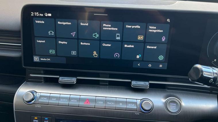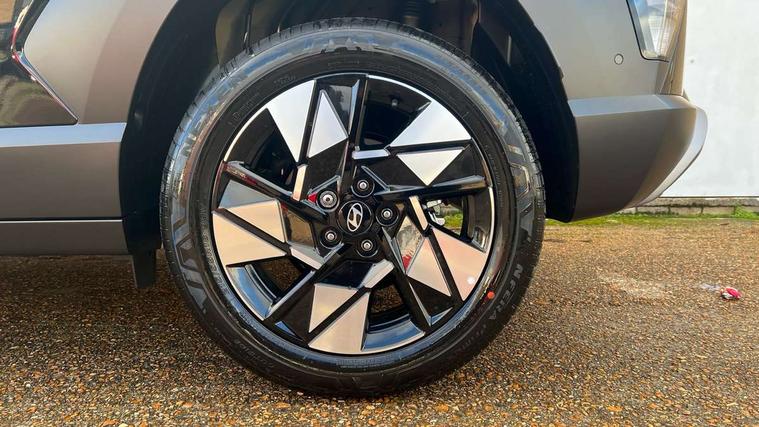 12.25" digital instrument cluster, 12.3" touchscreen centre console display satellite navigation with bluelink, live services and mapcare, Blind spot collision avoidance assist, Blind spot view monitor, Bluetooth connectivity with voice recognition, Cruise control, Driver status monitor (DSM), Driver supervision instrument cluster with 12.3" LCD display, eCall emergency call system, Feature on demand - Enabled, Forward collision avoidance assist (FCA 1.5) - Car, pededstrian, cycle and junction turning, Front parking sensor, Height adjustable power tailgate, Intelligent speed limit assist, Lane follow assist, Lane keep assist, Leading vehicle departure alert (LVDA), Parking Collision Avoidance Assist-Reverse (PCA-R), Parking distance warning - side, Parking system with rear camera and guidance system, PAS, Rear cross traffic collision avoidance (RCCA), Rear parking sensor, Rear view camera with dynamic guidelines, Roadside assistance, Safe exit warning (SEW), Surround view monitor, Wireless phone charging pad, Wireless Smartphone Integration includes Apple CarPlay and Android auto, 2 front USB C and 2 rear USB C charging points, Bose Premium Audio system with 7 premium speakers + subwoofer, DAB Digital radio, Steering wheel audio, phone and cruise controls, Auto dimming rear view mirror, Automatic headlights with dusk sensor, Automatic windscreen wipers with rain sensor, Black painted wheel arch inserts, Body colour exterior door handles, Body coloured door mirrors, Door mirror LED indicator lights, Electric front windows with anti-trap mechanism and one touch control, Electric rear windows, Electric sunroof, Electrically adjustable and heated door mirrors, Horizon centre LED DRL, LED projector headlights, LED taillights, LED upper and lower rear lights, Power folding door mirrors, Privacy glass - Rear windows and tailgate, Rain sensor, Rear roof spoiler with integrated LED brake light, Rear side wing doors, Rear skid plate - silver, Rear wiper, Roof rails, Solar glass with front door glass and windscreen, Tinted glass in front and rear doors, Windscreen auto defog function, 12V power outlet in front console, 2 zone climate control, 3 seat bench in 2nd row, 40/20/40 split folding rear seat, Adjustable head restraints, Ambient lighting, Driver and passenger front seat pockets, Driver's seat electric adjustments, Driver's seat lumbar support, Driver/passenger sunvisors and illuminated vanity mirrors, Floor mats, Front passenger's seat electric adjustments, Heated front seats, Heated rear seats, Heated steering wheel, Height/reach adjustable steering column, Leather steering wheel, Leather upholstery, Leather wrapped steering wheel and gear knob, LED centre interior light, LED front interior light, Luggage compartment LED lighting, Luggage net, Luggage shelf, Metal paint effect interior door handles, Rear centre armrest with cupholders, Single front passenger seat, Ventilated front seats, Vertical adjustment rear head restraints, Trailer wiring package - Kona, Airbag - front, front side, curtain and centre front airbag, Anti-lock brake system (ABS), Childproof rear door locks, Downhill brake control, Electric parking brake, Electronic stability control, Fixed 3 point for second row centre passenger seatbelt, Hill start assist control (HAC), Rear seat alert, Tyre pressure monitoring system, Alarm/immobiliser, Rear occupant alert, Remote central locking, Smart key with keyless entry and start/stop button, Five year annual vehicle health checks, 18" Alloy wheels, Temporary mobility kit (TMK),