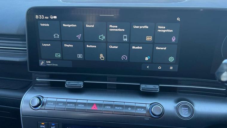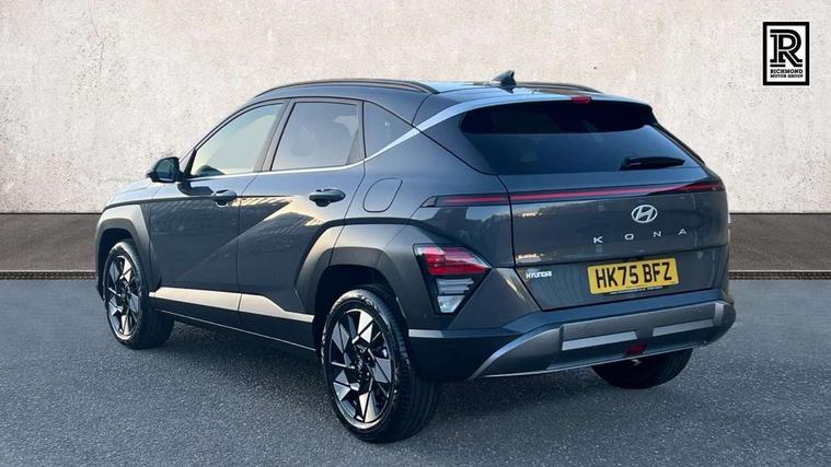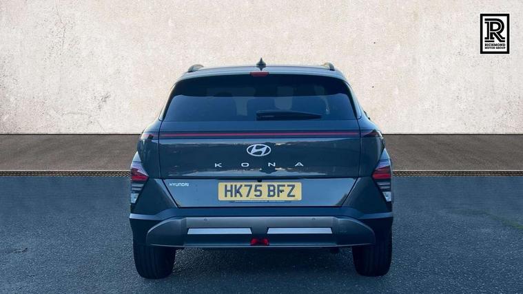 12.25" digital instrument cluster, 12.3" touchscreen centre console display satellite navigation with bluelink, live services and mapcare, Blind spot collision avoidance assist, Blind spot view monitor, Bluetooth connectivity with voice recognition, Cruise control, Driver status monitor (DSM), Driver supervision instrument cluster with 12.3" LCD display, eCall emergency call system, Feature on demand - Enabled, Forward collision avoidance assist (FCA 1.5) - Car, pededstrian, cycle and junction turning, Front parking sensor, Height adjustable power tailgate, Intelligent speed limit assist, Lane follow assist, Lane keep assist, Leading vehicle departure alert (LVDA), Parking Collision Avoidance Assist-Reverse (PCA-R), Parking distance warning - side, Parking system with rear camera and guidance system, PAS, Rear cross traffic collision avoidance (RCCA), Rear parking sensor, Rear view camera with dynamic guidelines, Roadside assistance, Safe exit warning (SEW), Surround view monitor, Wireless phone charging pad, Wireless Smartphone Integration includes Apple CarPlay and Android auto, 2 front USB C and 2 rear USB C charging points, Bose Premium Audio system with 7 premium speakers + subwoofer, DAB Digital radio, Steering wheel audio, phone and cruise controls, Auto dimming rear view mirror, Automatic headlights with dusk sensor, Automatic windscreen wipers with rain sensor, Black painted wheel arch inserts, Body colour exterior door handles, Body coloured door mirrors, Door mirror LED indicator lights, Electric front windows with anti-trap mechanism and one touch control, Electric rear windows, Electric sunroof, Electrically adjustable and heated door mirrors, Horizon centre LED DRL, LED projector headlights, LED taillights, LED upper and lower rear lights, Power folding door mirrors, Privacy glass - Rear windows and tailgate, Rain sensor, Rear roof spoiler with integrated LED brake light, Rear side wing doors, Rear skid plate - silver, Rear wiper, Roof rails, Solar glass with front door glass and windscreen, Tinted glass in front and rear doors, Windscreen auto defog function, 12V power outlet in front console, 2 zone climate control, 3 seat bench in 2nd row, 40/20/40 split folding rear seat, Adjustable head restraints, Ambient lighting, Driver and passenger front seat pockets, Driver's seat electric adjustments, Driver's seat lumbar support, Driver/passenger sunvisors and illuminated vanity mirrors, Floor mats, Front passenger's seat electric adjustments, Heated front seats, Heated rear seats, Heated steering wheel, Height/reach adjustable steering column, Leather steering wheel, Leather upholstery, Leather wrapped steering wheel and gear knob, LED centre interior light, LED front interior light, Luggage compartment LED lighting, Luggage net, Luggage shelf, Metal paint effect interior door handles, Rear centre armrest with cupholders, Single front passenger seat, Ventilated front seats, Vertical adjustment rear head restraints, Trailer wiring package - Kona, Airbag - front, front side, curtain and centre front airbag, Anti-lock brake system (ABS), Childproof rear door locks, Downhill brake control, Electric parking brake, Electronic stability control, Fixed 3 point for second row centre passenger seatbelt, Hill start assist control (HAC), Rear seat alert, Tyre pressure monitoring system, Alarm/immobiliser, Rear occupant alert, Remote central locking, Smart key with keyless entry and start/stop button, Five year annual vehicle health checks, 18" Alloy wheels, Temporary mobility kit (TMK),