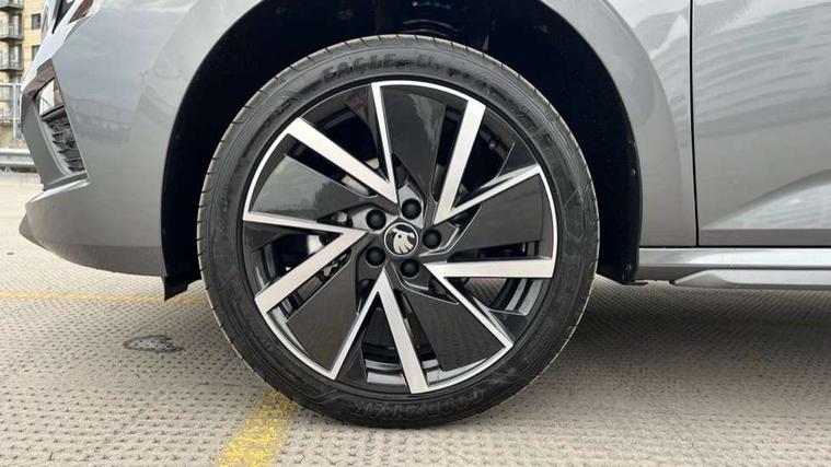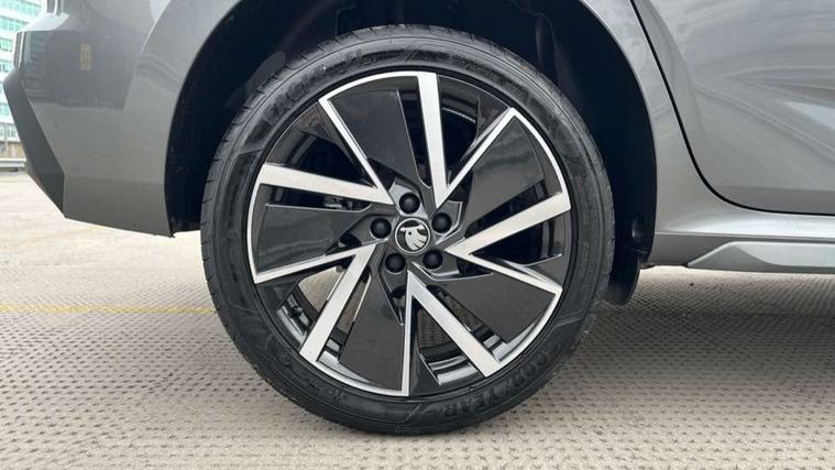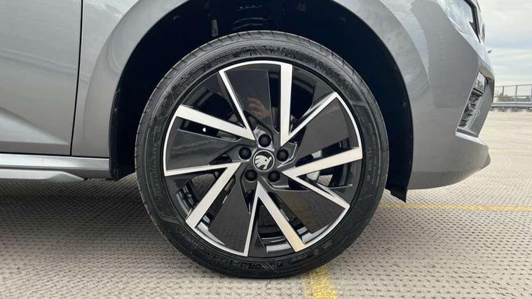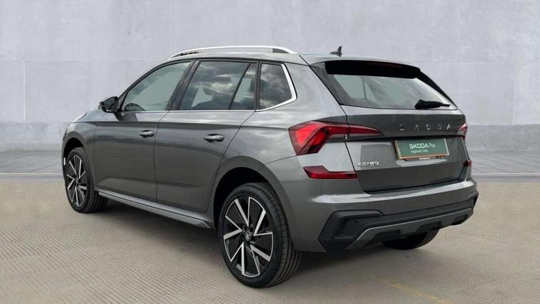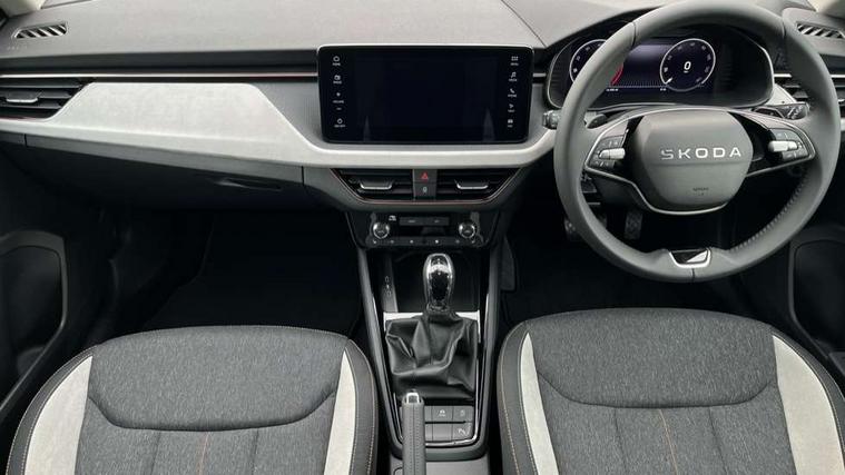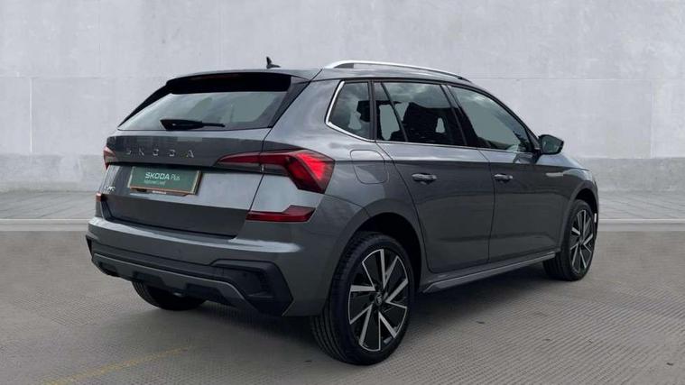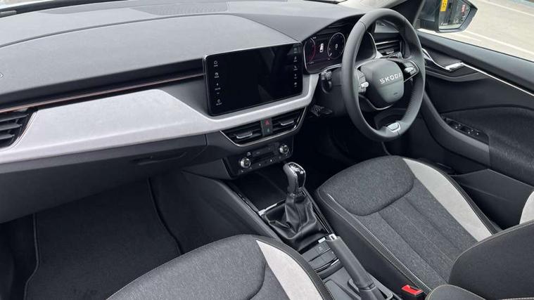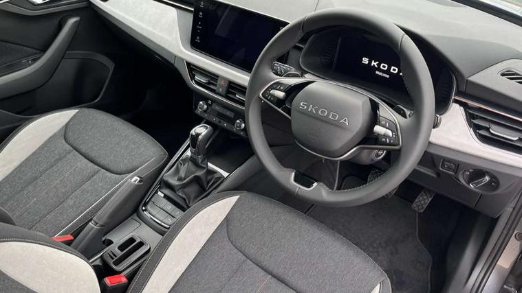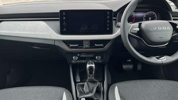Advanced driver attention and drowsiness monitor, Bluetooth system, E-call, Front assist system, PAS, Rear parking sensors, Rear view camera, Service indicator, Speed limiter, Traffic sign recognition, Virtual cockpit with 10.25" display, Voice control system, Wireless smartlink, 4 USB C ports, 8 Speakers, 9.2" Skoda navigation display, DAB Digital radio, Auto dimming rear view mirror, Automatic headlight control with coming home and leaving home feature, Body colour bumpers, Body colour door mirrors and handles, Chrome grille surround, Chrome roof rails with chrome window surround, Front and rear electric windows, Heated rear window, LED daytime running lights, LED high beam, LED low beam, LED third brake light, Light sensors, Privacy glass, Rear side wing doors, Rear wiper, Ticket holder inside windscreen, 12V socket in luggage compartment, 3 seat bench in 2nd row, Accent black door inserts, Ambient lighting in white/red, Cargo elements, Chrome inner door handles, Copper hotstamping, Driver and passenger sun visors with vanity mirror, Dual zone climate control, Front and rear roof lights, Front centre armrest, Front head restraints, Glove compartment with illumination, Height adjustable driver seat, Height adjustable front passenger seat, Ice scraper, Inner circulation control with pollen filter, ISOFIX on front passenger seat, Isofix preparation for back seats, Leather gearknob and handbrake lever, Lodge cloth upholstery, Manual lumbar support for front seats, Net package and top tether hooks in boot space, Net under rear shelf, Overhead glasses storage compartment, Pocket on the back of both front seats include mobile phone pockets, Rake/reach adjustable steering wheel, Reading lights, Rear centre armrests, Single front passenger seat, Suedia grey decor inserts, Textile floor mats, Third rear headrest, Top tether for front passenger seat, Umbrella in driver's door, Convenience pack - Kamiq, 3x3 point rear seatbelts, Airbags - driver and front passenger, Disc brakes, ESP, Extended and predictive pedestrian/cyclist protection, Front passenger airbag deactivation switch, Front side airbags with curtain airbags, Hill hold control, Manual leather parking brake, Manual rear child locks, One tone horn, Seatbelt reminder for driver an co-driver, Traction control, Tyre pressure monitor, Anti-theft alarm system with interior monitoring, backup horn, towing protection and remote central locking with SAFE system, Anti-theft wheel bolts, Electronic engine immobilizer,