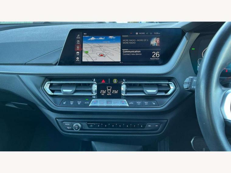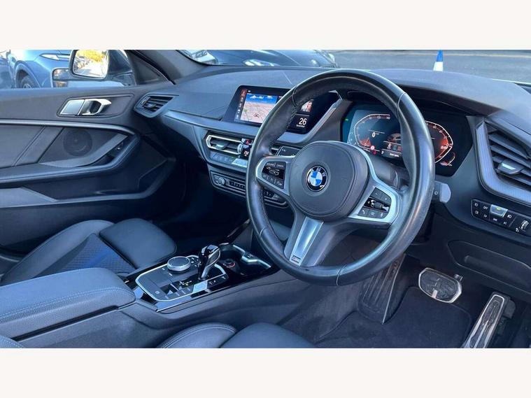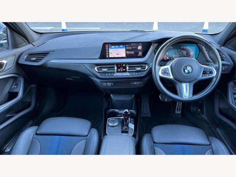 Active guard plus, Attentiveness assist, BMW Online services, BMW Teleservices, Check Control warning system for monitoring of lights and door/luggage compartment open warning, Connected eDrive Services, Eco pro mode, Integrated owners handbook, Oil sensor for level and grade, On board computer, Optimum shift indicator, Personal Profile, Pull away assistant, Speed limiter, Aluminium lightweight construction, Anti roll bar front and rear, Balancer shaft, Double VANOS, Drive Performance Control, Electronic differential lock, High precision injection, M sport suspension, Petrol Particulate Filter, VALVETRONIC engine management, Bluetooth audio streaming, DAB Digital radio, Auto dimming rear view mirror, Automatic headlight beam throw control, Automatic windscreen wipers and automatic headlight, Body colour door handles, Body colour mirror caps, Chrome 'M' logo side designation, Chrome exhaust tailpipe in single, round (Exhaust tailpipe, stainless steel - single, round), Chrome kidney grille frame with Satin Aluminium struts, Direction indicator side lights in exterior mirrors, Electric folding and anti dazzle exterior mirrors, Fading support, Follow me home headlights, Front and rear bumper system with replaceable deformation elements, Front and rear electric windows with open and close fingertip control, anti trap facility and comfort closing, Front door sill finishers in black plastic with M designation in metallic look, Green tinted heat protection glazing, Heated, electrically adjustable exterior mirror aspheric on driver side, convex on passenger side, High gloss shadowline window frame, Recess cover mirror frames and B/C pillar embelisher trim, High level third brake light, LED daytime running lights, LED eyebrow turn indicators, LED front fog lights, Lightweight engineering, Matt black air guide grilles, Model designation on right side of tailgate, Nearside reverse light in rear light cluster, Preparation for high beam assistant, Rain sensor including auto headlights activation, Rear fog lights, Rear window wiper, Shark fin antenna, Visible VIN plate, Welcome lighting, 12V power socket in centre console, 3 rear seat head restraints, 3 spoke M sports design leather steering wheel finished in nappa leather with specific M badge, Anthracite headlining, Anthracite Velour floor mats, Child seat ISOFIX attachment for two outer rear seats and front passenger seat with anchorage points, Conditioned based service, Dakota leather upholstery with perforation and contrast stitching, Driver and front passenger seat heating, Folding rear clothes hook, Four grab handles integrated in roof lining, Front and rear door pockets, Front and rear door pockets with bottle holders, Front and rear side armrest integrated into door trim, Front armrest foldable with integrated storage compartment, Front sports seats with electric side bolster adjustment, Glove compartment, Height adjustable front head restraints, Manual adjust steering wheel, Multi-function controls for steering wheel, Storage compartment in centre console, Sun visors with vanity mirrors and insert tab, Two zone automatic air conditioning, Additional interior lighting pack - 1 Series, Connected pack professional - 1 Series, Extended storage pack - 1 Series, Interior lights pack - 1 Series, Luggage compartment pack - 1 Series, M Sport exterior styling aerodynamics pack - 1 Series, 2 tone horn, 3 point seatbelts on all seats, front pyrotechnic belt tensioners, stopper and belt force limiters, rear coded belt buckles, Airbags - front driver/passenger, front & rear curtain, front side, Anti lock braking system (ABS) with brake assist, BMW emergency call, Brake drying, Braking readiness, Crash sensor activating central locking release, hazard warning lights, fuel cut off, interior lighting + activation of safety battery terminal clamp, Driver and front passenger seat belt security check, Dynamic stability control + (DSC+), Dynamic Traction Control - DTC, Electrically operated hand brake, Front and rear disc brakes, Front passenger manual airbag deactivation, Seatbelt warning, Side impact protection, Tyre pressure monitoring system, Warning triangle and first aid kit, Automatic drive away locking facility, Central locking switch for all doors, fuel filler cap and luggage compartment, Deadlocking function system to all doors, Locking wheel bolts, Remote control with integrated key with High-gloss Black inlay and M designation and 1 button for open/ close lock, window, open luggage compartment, Start/stop button with comfort go keyless engine start and auto start stop deactivation button, Thatcham Cat.1 alarm and immobiliser, Contrast stitching on instrument panel, Reduced rolling resistance tyres,