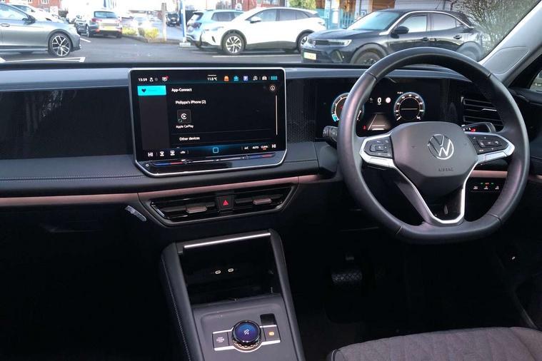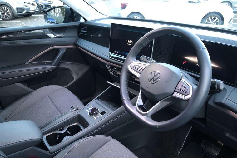 Adaptive cruise control (ACC), Advanced driver attention and drowsiness monitor, Bluetooth mobile phone interface, Car2X technology, Digital Cockpit Pro - 10.25" high resolution dash display screen with customisable menus and information, Dynamic road sign display, E-Sim card for online connectivity, eCall emergency call service, Front Assist - Autonomous emergency braking with pedestrian and cyclist monitoring, Lane change system, Side assist, Rear traffic alert and Exit warning system, Lane keeping system Lane Assist, Multifunction front facing camera, Oncoming vehicle braking when turning including swerve support, Park assistance plus with front and rear parking sensors, Power assisted steering with speed sensitive, Start/stop system with regenerative braking, Warning signal and warning light for front and rear seatbelts not fastened, Wireless App-Connect, Front wheel drive, Digital radio reception (DAB), Diversity antenna for FM reception, Ambient lighting with logo projection, Auto dimming interior rear view mirror, Automatic headlight control system, Body coloured bumpers and air intake with chrome trim, Body coloured door handles, Body-coloured exterior mirror housings, Coming/leaving home lighting function, Heat insulating glass in side and rear windows, Heat insulating windshield, Heated rear window, High level 3rd brake light, Illuminated door handle recesses, Illuminated lightline between headlamps, Rain sensor windscreen wipers, Rear fog light on one side, reversing light on both sides, Rear side wing doors, Rear wiper, 12V outlet in center console rear and in luggage compartment, 12V socket in centre console, 3 bench rear seats in 2nd row, Air care climatronic 3 zone air conditioning system with rear air conditioning control panel, Carpet mats, front and rear, Centre console with illuminated storage compartment with sliding cover and two drinks holders, Ceramique headlining, Door and side trim panel in foam film and woven fabric, Front centre armrest, ISOFIX anchors for child seats on outer rear seats and front passenger seat compatible with i-Size, Mechanical rear seat release, Power adjustable lumbar support in front, Rear bench seat, split folding, longitudinally movable and folding with load-through hatch and centre armrest, Safety optimised front head restraints, Single front passenger seat, Sun visors with illuminated vanity mirrors, Three rear head restraints, Variable luggage compartment floor, Comfort package with park assist plus and Safelock - Tiguan, Design package - Tiguan, 3 point seat belt for centre rear seats, 3 Point seat belts in front with pretensioners, 3 point seatbelts in outer rear with ECE label, Driver and front passenger airbag with front passenger airbag deactivation, Electronic parking brake with auto hold, Front and rear curtain airbags, Front and rear side airbags, Front centre airbag, Front disc brakes, Manual child proof rear door locks, Rear disc brakes, Two tone horn, Warning triangle, Anti theft wheel bolts, Soul instrument panel,