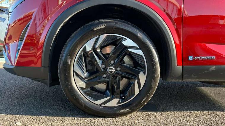 2 front USB-C ports, 2 rear USB-C ports, 360 degree Intelligent around view monitor with moving object detection, Blind spot intervention, Blind spot warning, Drive assist custom mode, Drive modes (sport, normal, eco), Driver drowsiness and attention warning, e-Pedal step, Electric speed sensitive power steering, Emergency and breakdown call, Emergency lane keep assist, Emergency Stop Signal (ESS), Engine start/stop button, EV mode switch, Event data recorder, Front and rear parking sensors, Full Digital 12.3" TFT Digital Combimeter, Google virtual personal assistance, Idle stop/start system, In-car WIFI hotspot, Intelligent Cruise control (ICC), Intelligent forward collision warning, Intelligent speed assist, Lane departure warning system, Nissan connect 12.3 inch touchscreen infotainment system, Nissan connect navigation with google maps, Nissan connect services 2.0 (Google Automotive System), Outside temperature sensor, Rear cross traffic alert, Reversing detection, Traffic jam pilot, Wireless Apple CarPlay/Android Auto, Wireless charging pad, Limited slip differential, 6 speakers, AM/FM audio system with DAB, Bluetooth audio streaming, Auto dimming frameless rear view mirror, Auto rear wiper when reversing, Body colour mirror caps, Body coloured door handles, Bodyside mouldings, Chrome side window finisher, e-POWER badging, Electric auto folding door mirrors, Electrically adjustable and heated door mirrors with LED turn indicator, Follow me home headlights, High beam assist, Intelligent auto headlights, LED 3rd brake light, LED daytime running lights, LED Headlights, LED rear lights, One touch front and rear electric windows with remote opening and closing, One touch passenger window, Partially body coloured bumpers, Rear privacy glass, Rear roof spoiler, Rear side wing doors, Rear styling plate, Shark fin antenna, Splash free rain sensing wipers, Super UV and infrared cut glass, Three blink turn signal, 3 bench rear seats in 2nd row, 3 rear headrests, 60/40 split folding rear seat bench, Chrome interior door handles, Cloth upholstery, Dark headlining, Driver seat back pocket, Dual zone automatic climate control with pollen filter, e-POWER shifter, Front door with bottle holders, Height adjustable front headrests, Luggage board system, Luggage space lighting, Multifunction steering wheel, Passenger seat back pocket, Rear door bottle holders, RGB ambient light (Full area coverage), Single front passenger seat, Smooth leather steering wheel, Tilt/telescopic adjustable steering wheel, Two rear isofix child seat anchorage points with top tether, 3x3 point rear seatbelt pretensioners + load limiters, Autonomous emergency braking, Child locks on rear doors, Curtain and front side, far side airbags, Driver and passenger airbags, Driver, passenger and 2nd row rear seat belt reminder, Electric handbrake with auto hold function, Front seatbelt pretensioners + load limiters, Height adjustable front seatbelts, Hill start assist, intelligent front emergency braking, Rear automatic braking, Tyre pressure monitoring system, Vehicle dynamic control, Engine immobiliser, Intelligent key with walk away lock and approach unlock functions, Remote central door locking with deadlocking, Thatcham alarm, 18" Diamond cut alloy wheels, Tyre puncture repair kit,