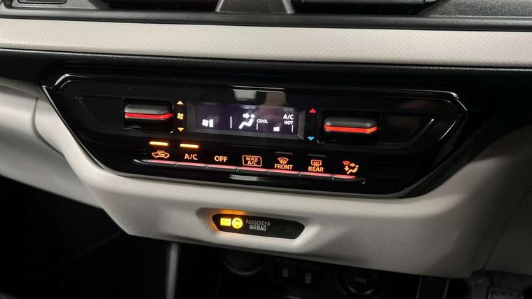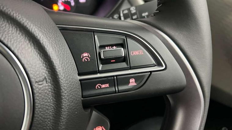 Adaptive cruise control, Automatic start/stop system, Blind spot monitoring, Colour LCD information display, Digital clock, Driver monitoring system, eCall, Fuel consumption display (average/instantaneous) and range display, Intelligent speed control support, Lane departure prevention, Lane departure warning system, Lane keeping assist (LKA), Low fuel level warning light, Navigation system, Outside temperature display, PAS, Rear cross traffic alert, Rear parking camera, Rear parking sensors, Remote fuel cap release, Smartphone integration with Apple CarPlay and Android auto, Suzuki connect, Tailgate, Traffic sign recognition, Weaving alert, 4 speakers + 2 tweeters, 9-inch infotainment display, Auxiliary input socket, Bluetooth audio streaming, DAB Digital radio, Steering wheel audio controls, USB Type A and C, 'Guide me home' headlamps, 1 speed with intermittent rear wiper + washer, 2 speeds front wiper with intermittent + washer, Automatic headlights, Black coloured A & B pillars, Black Upper and lower front grille, Body colour door mirrors and handles, C pillar trim moulding, Electric door mirrors, Electric front windows, Electric rear windows, Green tinted glass, Heated door mirrors, High beam assist, LED daytime running lights, LED High mounted stop light, LED position lamps, LED projector headlamps, LED rear combination lamp, Manual headlamp level control, Rain sensor, Rear fog lights, Rear privacy glass, Rear side wing doors, Rear spoiler, Side spoiler, 1 cup holder in rear, 12V Accessory socket in front console, 2 cup holders in front, 2 Isofix seat anchors, 3 bench rear seats in 2nd row, 3 rear head restraints, 3 spoke leather covered steering wheel, 60/40 split rear seats, Accessory socket, Centre console storage, Centre lower box, Child seat tether anchorages x 2, Chrome handbrake release button, Chrome interior door handles, Cloth upholstery, Door pockets with bottle holder, Driver/passenger sunvisors with ticket holders + vanity mirrors, Front cabin lights, Front headrests, Front map light, Front passenger side assist grip, Glovebox, Heated front seats, Heater, Height adjustable driver's seat, Luggage area lamp, Manual air conditioning with digital control panel, Material door trim ornament, Parcel shelf, Passenger seat back pocket, Pollen filter, Single front passenger seat, Tilt adjustable steering wheel, Tilt/telescopic adjustable steering wheel, 3 point ELR seatbelts for centre seat, 3 point ELR seatbelts front and rear, ABS+EBD+Brake assist, Curtain airbags, Driver airbag, Dual sensor brake support, ESP + traction control, Front and rear seatbelt reminder, Front passenger airbag, Front passenger airbag deactivation, Front seatbelt pretensioners with force limiters, Hill hold control, Rear child proof door locks, Rear seatbelts with pre-tensioners and load limiters, Side airbags with incorporated into front seats, Tyre pressure indicator, Deadlocks, Freewheeling key cylinders, Immobiliser, Keyless entry and start, Light - on and Key in reminder, Locking wheel nuts, Remote central locking, Painted instrument panel ornament, 16" Painted alloy wheels, Emergency flat tyre repair kit,