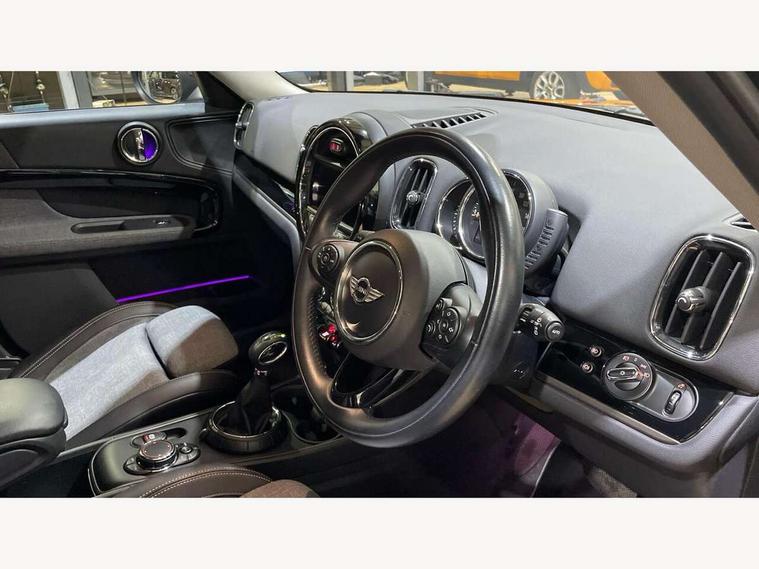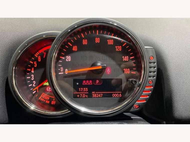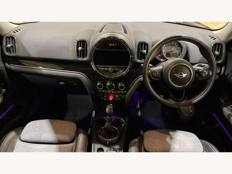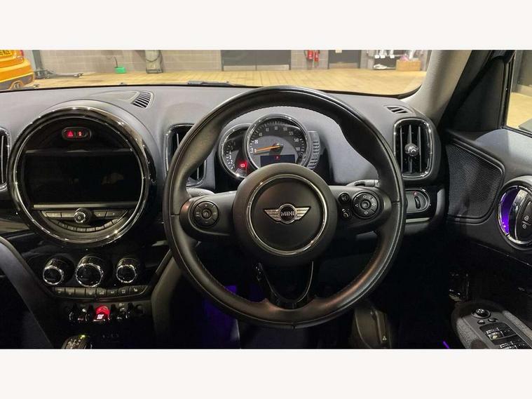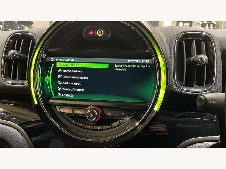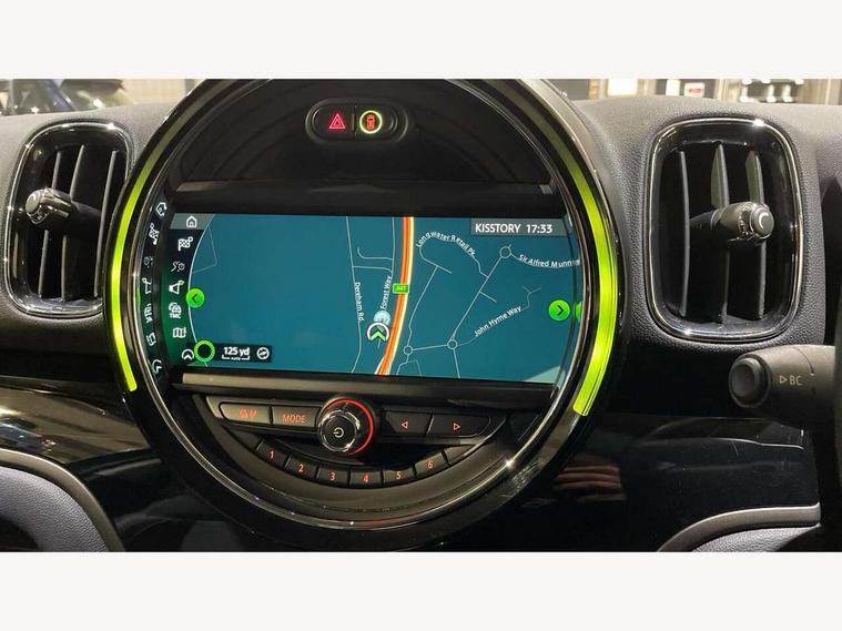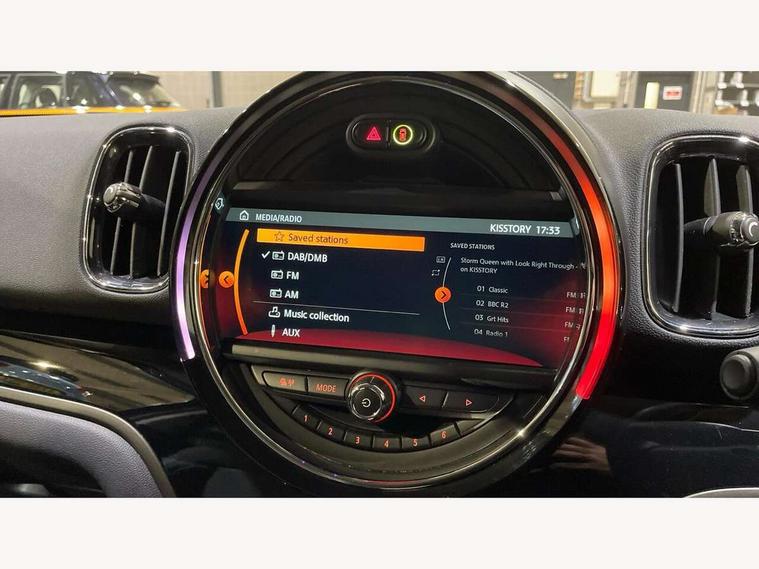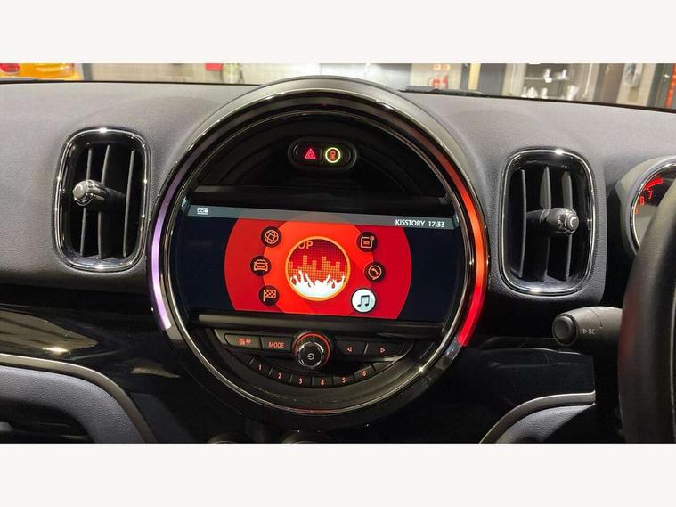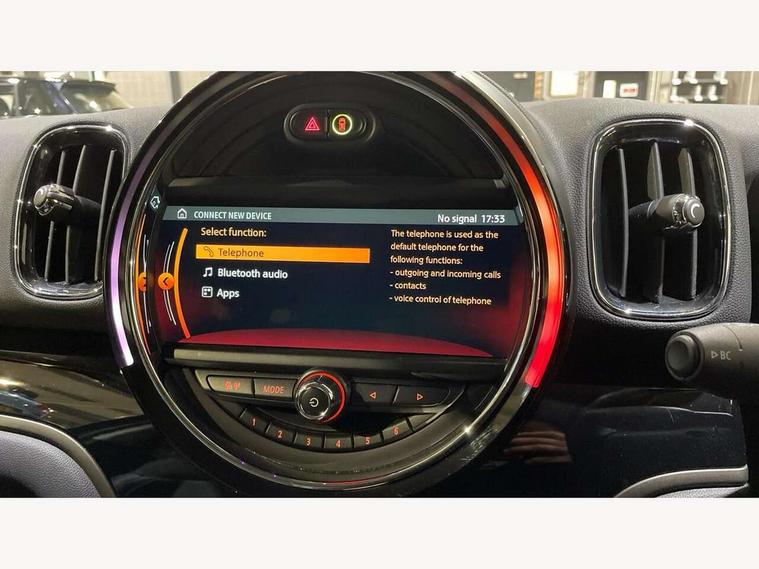Brake pad wear indicator warning light, DTC - Dynamic traction control, Exterior temperature gauge, Intelligent emergency call, MINI TeleServices, Navigation system, On board computer, Personal Profile, Service interval indicator, Servotronic speed sensitive power steering, Electronic differential lock, Auxiliary input socket, DAB digital radio module, MINI Connected, MP3 compatible radio/single CD player, Radio visual boost, Anti dazzle rear view mirror, Blue tinted glass, Chrome door handles, Chrome exhaust tailpipe, Chrome headlight surround, Chrome plated radiator grille, Chrome window surround, Electric front windows + one touch + anti-pinch, Electrically adjustable door mirrors, Follow me home headlights, Heated door mirrors/heated windscreen washers, Heated rear window with automatic switch off, Metal look door sill finishers, Rain sensor including auto headlights activation, Rear wiper, Roof spoiler, White indicator lights, 12V power point front, 2 cupholders in front centre console, 4 lashing points to secure luggage, 40:20:40 split folding rear seats, Centre console storage box, Chrome interior door handles, Driver/passenger sunvisors, Front and rear headrests, Front and rear Isofix child seat preparation, Front and rear velour floor mats, Front centre armrest with storage compartment, Front interior light, Front passenger grab handle, Front seat backrest storage nets, Heater with recirculation function, Height/reach adjust steering wheel, Luggage compartment lighting, Multifunction steering wheel, Rear grab handles, Sensatec gearshift and handbrake, Storage compartments in doors, Toolkit in luggage compartment, Interior lights pack - Countryman, MINI Excitement Pack - Countryman, 3 point automatic seatbelts, 3 point seatbelts on all rear seats, ABS, Cornering brake control (CBC), Crash Sensor - activates hazard/interior lighting + unlocks doors, Driver and passenger airbags, Driver and passenger side airbags, DSC - Dynamic Stability Control, Electronic brake force distribution, Electronic parking brake, Front curtain airbags, Front passenger airbag deactivation, Fuel cut off safety device, Hill start assist, Pyrotechnically pre-tensioned front seatbelts, Tyre pressure warning, Automatic door locking, Keyless Start, Locking wheel bolts, RF remote control central locking, Second remote key, Thatcham category 1 alarm + immobiliser,