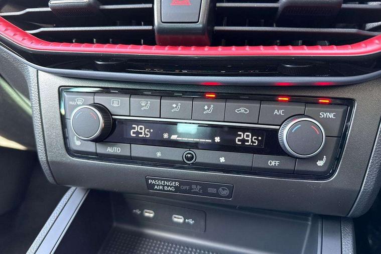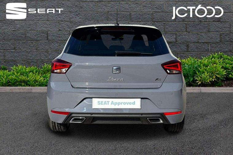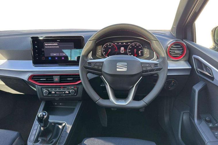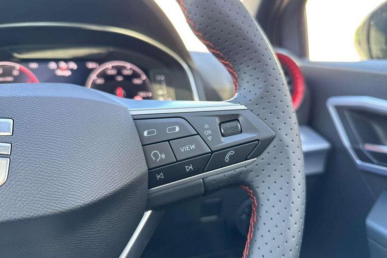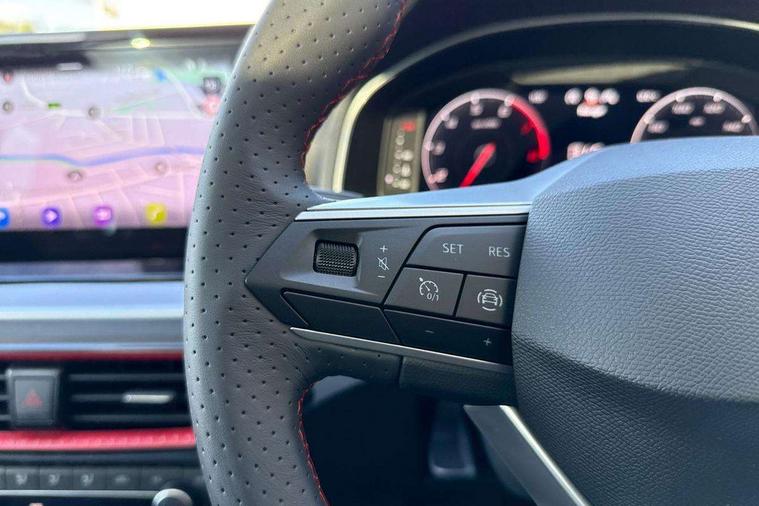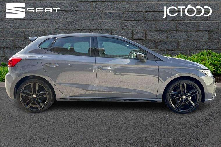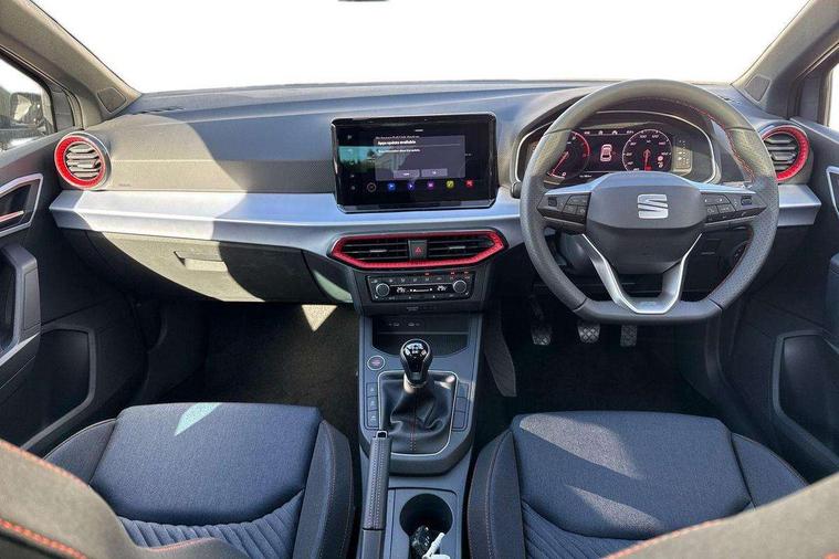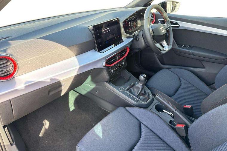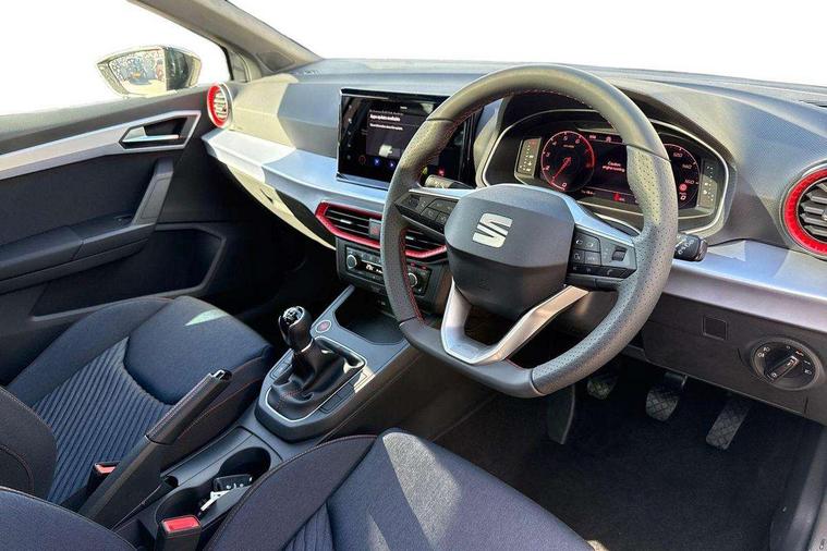 'Lights On' Reminder warning buzzer, 10" Digital cockpit, 9.2" touchscreen navigation system with type C USB socket, Voice control and DAB/AM/FM radio, Auto start and stop system, Bluetooth audio streaming with handsfree system, Digital clock, E-call, Full link smartphone integration with mirror link, wireless apple carplay, Google android auto + USB Type C cable for apple and android devices, Lane assist, Low fuel warning light, Outside temperature gauge, Power Steering, Rear parking sensor, Seat connect plus with safety, service, remote and online, SEAT logo boot release, Speed limiter, Traffic sign recognition, Trip computer, Sports suspension, Auxiliary input socket, Radio/MP3 player, SD card slot, Steering wheel mounted controls, Anti theft roof antenna, Auto dimming rear view mirror, Automatic rain sensing wipers, Black door mirror caps, Black roof spoiler, Black side skirts, Body colour bumpers, Body colour door handles, Brilliant black window surrounds, Dark tinted rear windows, Electric adjustable/heated/folding door mirrors, Electric front windows, Electric headlight adjustment, Electric panoramic sunroof, Electric rear windows, Front/rear fog lights, FULL LED automatic headlights with dynamic headlight range control, coming and leaving home, LED daytime running lights, LED 3rd brake light, LED tail lights, Rear roof spoiler with FR twin exhausts, Rear side wing doors, Rear wiper, 3 seat bench in 2nd row, 60/40 split folding rear seat, Ambient interior lighting, Chrome detailing and black headlining, Dual zone climate control with combination filter, Front courtesy lights, Front cupholders x 2, Front reading lights, Front sport bucket seats, Gear shift indicator, Glovebox, Heated front seats, Height adjustable front and rear headrests (five), Height adjustable front seats, Height/reach adjust steering wheel, Illuminated air vent surrounds, Illuminated boot, Instrument lighting with brightness control, Isofix, Leather multifunction flat bottomed sports steering wheel, Microsuede cloth upholstery, Passenger sunvisor, Single front passenger seat, Storage pockets on back of front seats, Sunvisors with mirror and driver side card holder, Safety and driving pack (S) - Ibiza, 3 point seatbelts on all 3 rear seats, ABS, Active front headrests, Child locks on rear doors, Electronic stability control, Energy recovery system, Front driver and passenger side airbags with curtain airbag and front passenger airbag deactivation, Hill hold control, Multi-Collision braking, Seat belt reminder for front and rear seats, Tiredness recognition system, Tyre pressure monitoring system, KESSY Keyless entry and go, Locking wheel bolts, Perimeter alarm and interior monitoring with backup horn and tow away protection, Remote central locking + deadlocks, 18" Performance alloy wheels in glossy black,