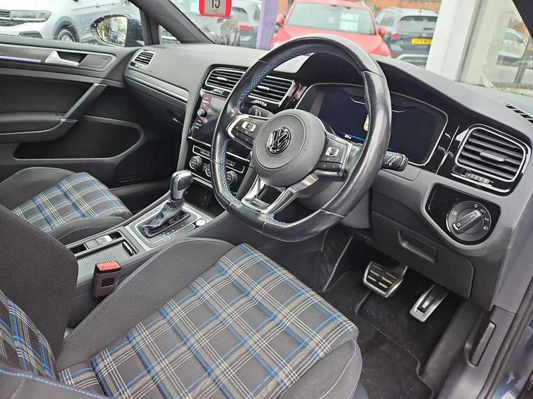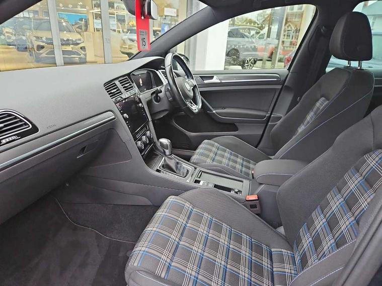 'Lights On' Reminder warning buzzer, ACC - Adaptive cruise control with front assist, forward collision warning, distance monitoring, city emergency brake and speed limiter, Active information display - 12.3" high resolution TFT display, Bluetooth telephone and audio connection for compatible devices, Brake pad wear indicator warning light, Car net app connect combined functionality of Apple CarPlay, Android Auto and MirrorLink, USB connection, audio and voice control, Discover navigation, 8"colour touch screen, 2D/3D European map data, Radio/CD, infotainment system via smartphone or tablet, Car-Net Guide and inform, Driver alert system, Driver profile selection, Driving Mode Selection with four preset modes - Eco, normal, sport or individual modes, Lane assist with dynamic light assist and traffic sign recognition, Multifunction computer with visual gear change recommendation for fuel consumption, Progressive power assisted steering, Push tank flap, Rear view camera, Speed limit display, Speedo, rev counter, electronic odometer, trip, service interval display, exterior temperature and fuel gauge, Stop/start system, Think blue trainer driver tips and journey analysis, Ultrasonic front and rear optical and audible parking sensors, Warning buzzer and light for front seatbelts unfastened, Battery regeneration during braking, Lowered sports suspension, XDS electronic differential lock, 4 X 20 watt output, 8 speakers, Composition media system, DAB Digital radio receiver, MP3/WMA compatability, Multi device interface (MDI) via USB connection, Premium USB cable in choice of either Apple or Android smartphone compatibility, SMS Functionality, Title and cover art display, USB and SD card connectivity, Volkswagen media control, 3D-LED tinted rear light clusters with indicator sweep function, Automatic coming/leaving home lighting function, Black front air intake and radiator grille with chrome insert, Black rear diffuser, Body colour bumpers, Body colour door handles, Body colour door mirrors with integrated indicators, Dusk sensor + automatic driving lights, Electric front windows, Electric rear windows, Electrically adjustable and heated door mirrors, Fully galvanised body, GTE logo on front and back, Heated rear windscreen, High level 3rd brake light incorporating LED Technology, LED headlights with dynamic light assist, Rear fog lamp, Rear tinted glass 65% light absorbing from B pillar backwards, Rear window aerial, Rear window wash/wipe with intermittent wipe, Reflectors in all doors, Sill extensions, Tailgate with integrated rear roof spoiler, Unique front C Signature LED daytime running light, Windscreen wipers/ intermittent wipe + 4 position delay, 12V socket in luggage compartment, 3 rear headrests, 4 load lashing points in luggage compartment, 60/40 split folding rear seat backrest, Bag hook in luggage compartment x 2, Black rear diffuser with chrome exhaust tailpipes in left and right, Black roof lining, Climate control - 2 zone electronic air conditioning with automatic air recirculation and allergy filter, Cooled glovebox, Cover for storage compartment in centre, Driver/front passenger seat height adjustment, Dust/pollen filter, Front + rear carpet mats, Front centre armrest with storage compartment and two rear air vents, Front cupholders x 2, Front seat back storage pockets, Front sport seats, Grab handles front x 2, rear x 2 with integrated coat hooks, GTE Badging, GTE radiator grille with blue stripe, Height and reach adjustable steering wheel, Illuminated vanity mirrors, Instrument lighting white adjustable panel illumination, Interior light delay, Isofix preparation for 2 rear child seats, Jacara cloth upholstery, Load through provision with rear centre armrest and cupholders x2, Luggage compartment lighting, Lumbar support for driver's and front passengers seat, Overhead storage box, Stainless steel pedals, Storage box in luggage compartment, Storage compartment in roof console with cover, Storage compartments in centre console, Storage compartments in front doors, Storage compartments in rear doors, Stowable luggage compartment cover, Sun visors, Three spoke multifunction leather steering wheel with GTE logo and blue stitching including gearknob gaiter, Variable boot floor, height adjustable and removable, Ambient lighting pack - Golf, Convenience Pack - Golf, Mirror pack - Golf, Winter pack - Golf, 3 rear three point seatbelts, Airbags - Driver's and front passenger's, curtain airbag, Driver's knee, front side impact and passenger's airbag deactivation switch, Anti-lock Braking System (ABS) with Hydraulic Brake Assist (HBA), Automatic post collision braking system, Blue brake callipers, Child locks on rear doors, Driver/Passenger optimised head restraints, Electronic parking brake with auto hold, Electronic stability control (ESC) including Electronic differential lock (EDL) and ASR (Traction control) with deactivation via infotainment system, Front ventilated disc brakes and rear disc brakes, Pre crash preventive occupant protection, Three point height adjustable front seatbelts with tensioners, Tyre pressure loss indicator, Alarm with interior protection and deactivation via infotainment system, Electronic engine immobiliser, Keyless entry with start/stop button on centre console, Chrome plated air vent surround, Chrome plated electric mirror adjustment light switch surround, Honeycomb black decorative inserts, Piano black decorative inserts in centre console, Unique GTE instrument cluster, 18" Marseille alloy wheels with anti theft wheel bolts, Tyre repair kit,