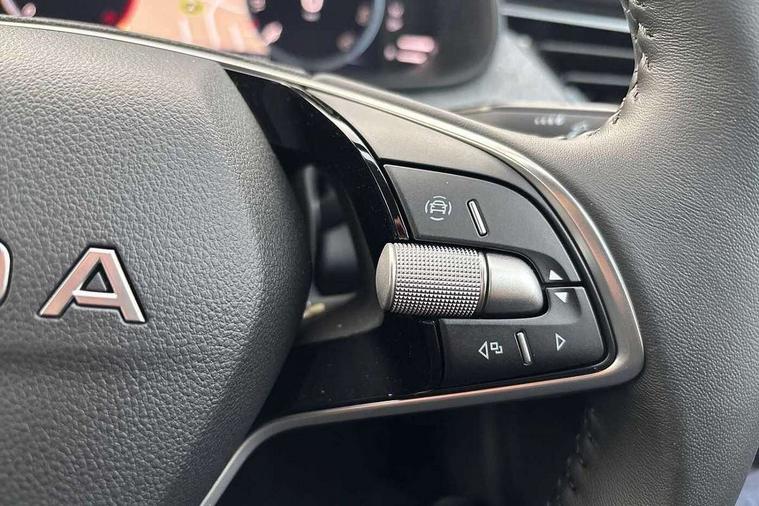Advanced driver attention and drowsiness monitor, Bluetooth, e-Call (emergency call), Front assist system, PAS, Rear parking sensors, Rear view camera, Speed limiter, Tailgate, Traffic sign recognition, Virtual Cockpit - 10.25" digital display, Wireless smartlink, 4 USB C ports, 8 Speakers, 9.2" Skoda navigation display, DAB radio, Auto dimming rear view mirror, Automatic headlight control with manual coming and leaving home feature, Automatic intermittent wipers, Black window frames, Body colour bumpers, Body colour door mirrors and handles, Chrome moulding around grille, Front and rear electric windows, Full LED headlights, Heated rear window, LED 3rd brake light, LED daytime running lights, LED front turning lights, LED high beam, LED low beam, Rear LED fog light, Rear side wing doors, Rear wiper, Tinted windows, Unique dark chrome design logo on alloy wheels, 12V socket in luggage compartment, 3 seat bench in 2nd row, Black / Grey armrest stitching, Black hotstamping, Cargo elements, Chrome inner door handles, Door inserts in satin black, Driver and passenger sun visors with vanity mirror, Dual zone climate control, Front and rear roof lights, Front centre armrest, Front head restraints, Glasses storage in roof liner, Height adjustable driver seat, Height adjustable passenger seat, Ice scraper, Illuminated glove compartment, Inner circulation control with pollen filter, ISOFIX for front passenger seat, Isofix preparation for back seats, Leather gearknob and handbrake lever, Loft cloth upholstery, Luggage net under rear parcel shelf, Manual lumbar support for front seats, Net package and top tether hooks in boot space, Pocket on the back of both front seats, incl. mobile phone pockets, Single front passenger seat, Skoda lettering on steering wheel, Textile floor mats, Third rear headrest, Ticket holder, Top tether for front passenger seat, Umbrella in driver's door, 3x3 point rear seatbelts, ABS, Child locks, Curtain airbags and front side airbags, Disc brakes, Driver and front passenger airbags, ESP, Hill hold control, Manual leather parking brake, One tone horn, Passenger airbag switch off function, Seatbelt reminder for driver and front passenger, Tyre pressure monitoring system, Anti theft alarm system with interior monitoring, backup horn and towing protection, Anti-theft wheel bolts, Remote central locking with 2 remote folding keys, SAFE function for remote central locking, Decord pad, door inserts Kota uni,