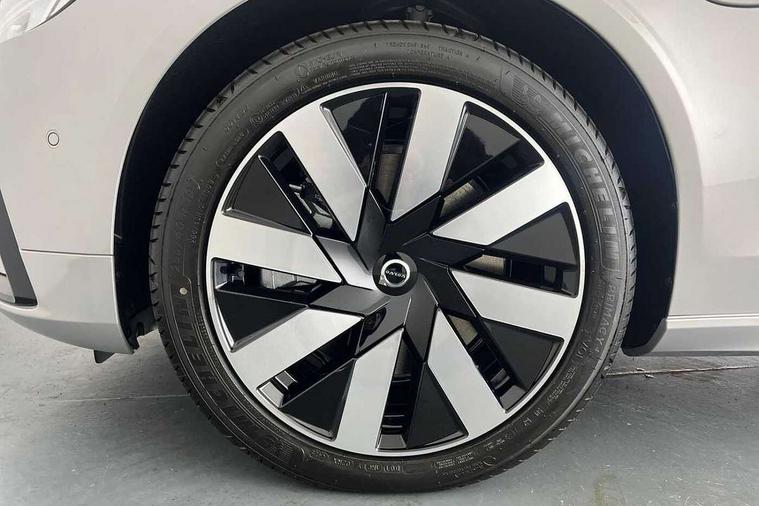 12.3" Progressive Driver Display, 360 degree surround view parking camera with side proximity sensors, 9" centre console touch screen, Adjustable steering wheel force, Apple CarPlay and Android Auto, Bluetooth handsfree system, Drive mode settings, Driver alert control with lane keeping aid, Driver assistance (pilot assist and adaptive cruise control), Driver awareness - Blind spot system + steer assist, cross traffic alert with autobrake, rear collision warning and mitigation, E-call, Emergency assist, Front and rear park assist, Google automotive services - Enabled entertainment apps, navigation with google maps, voice recognition with google assistant, Handsfree bootlid opening/closing, Intelligent speed assistance, Oncoming Lane Mitigation, Power operated tailgate/boot lid, Speed sensitive steering, Volvo on call app, 6m 3 phase 16amp Type 2 / mode 3 charge cable, 8 speed automatic transmission with start/stop + manual change functions, Dynamic chassis, Electric rear axle drive, Lithium-Ion Battery 18.8kWh, On board charger - 6.4 kW 2 phase/3.7kW single phase, Recharging port located in nearside front wing, DAB Radio (Digital Audio Broadcasting), Low speed exterior sound speaker, Premium Sound by Harman Kardon, dirac unison, dolby pro logic II surround sound, 13 speakers/600W output and fresh air subwoofer, Steering wheel remote infotainment controls, Adaptive brake lights with high level LED brake lights, Auto dimming interior + exterior mirrors, Automatic headlight levelling system, Automatic LED Headlights + Active high beam incorporating daytime running lights, Front and rear power windows, Heated windscreen, High gloss black door mirrors and window surround, High gloss black front and rear bumper decoratives, High gloss black mesh front grille and surround, Home safe and approach lighting, Integrated roof rails in high gloss black, Power heated autofolding door mirrors, Puddle lights, Rain sensor with automatic windscreen wiper activation, Rear LED lights with sequential indicators, Rear side wing doors, Rear wiper, Roof antenna, Roof spoiler, Variable front intermittent wipers, Visible VIN plate, 2 zone electronic climate control with Clean zone air quality system + pollen filter, 3 seat bench in 2nd row, 3 Spoke tailored steering wheel with chrome trim, Air purifier particulate matter (PM) 2.5 filter, Ambient door and instrument panel lighting, B Pillar ventilation, Boot lid/tailgate illumination, Bright metal luggage scuff plate, Cargo divider with grocery bag holder, Centre console cupholder and storage, Charcoal carpets and floor mats, Driver and front passenger seat power height adjustment, Extended front seat cushions, Front 12V socket tunnel console and cargo area, Front and rear cabin courtesy light, Front and rear door pocket lights, Front and rear footwell and side step illumination, Front and rear reading lights and centre armrest Storage Illumination, Front headrests, Glovebox compartment with illumination, Heated front seats, Heated rear seats outer positions, Heated steering wheel, Height/reach adjustable steering column, Illuminated luggage compartment, Illuminated recharge aluminium tread plates, Illuminated vanity mirrors + ticket holder, Illumination front tunnel storage, Inner door release handle illumination, Integrated sun curtains in rear doors, ISOFIX attachment on outer rear seats, Leather upholstery, Load cover, Load protection net, Luggage compartment load hooks, Memory function for drivers seat and exterior mirrors, Multi directional lumbar support, Power folding rear headrests, Rear armrest with cupholder, Single front passenger seat, Underfloor cargo storage, Versatile split folding rear seat - 60/40, 3x3 point rear seatbelts, Active bonnet, City safety with steering support with Pedestrian + cyclist + front collision warning with full auto brake and rear auto brake, Driver and front passenger airbags, Drivers knee airbag, Front seats SIPS airbags, Hill start assist, IC (Inflatable Curtains) - Full Length, Passenger airbag cut-off switch, Power child locks on rear doors, Power parking brake with auto hold function, Road sign information display, Run off Road Mitigation, Run off Road Protection, Seatbelt reminder and pretensioners for all seats, SIPS (Side Impact Protection System), Slippery road and hazard light alert, Stability and Traction Control with Spin control, Engine Drag Control and Corner Traction Control, Tyre pressure monitoring system, Vehicle deceleration control with Anti-lock Brake System, Electronic Brake Distribution and Emergency Brake Assist, Warning triangle and first aid kit, WHIPS whiplash protection system - front, 2x Key integrated remote control central locking + fuel flap with deadlocking system and auto open/close power windows, Anti-theft alarm including immobiliser/volume sensor + level sensor, Care key with user defined top speed, Keyless drive includes keyless entry and keyless start, Locking wheel nuts, Private locking for tailgate, Tailored Instrument Panel and Door Tops with Contrast Stitching, 19'' 8 spoke diamond cut black alloy wheels, Tyre sealant kit and compressor,