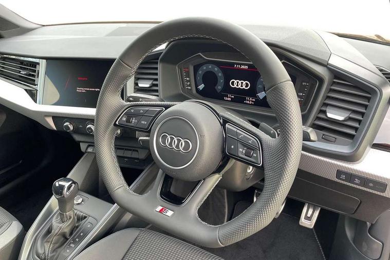 10.25" Digital instrument cluster display classis style instrument dials + speed, odometer, time, outside temperature, telephone menu + fuel level warning, Advanced driver attention and drowsiness monitor, Audi connect emergency call and service, Audi drive select, Audi remote connect and control, Bluetooth interface, Camera based traffic sign recognition, Cruise control, Driver's information system, Electromechanical power steering, Lane departure warning system, Rear parking sensor, Service interval indicator, Smartphone interface, Speed limiter, Start stop system with recuperation, Voice control system, Washer fluid level indicator, Sports suspension, 2 x USB type C connection points, 6 loudspeakers, DAB Digital radio, MMI radio plus with 10.1" colour MMI display screen and MMI touch, Auto dimming rear view mirror, Black door mirror housings, Black side skirts, Body coloured bumpers, Door sill trims with aluminium inlays and logo, Electric front and rear windows, Electrically adjustable, heated, folding door mirrors with integrated LED side indicator, Front side air inlets in grained matt black and C frame in anthracite black, Front wing badges, Headlight cleaning system, Heat insulating glass windscreen and side windows, Heated rear windscreen, High level LED brake light, LED daytime running lights, LED headlights with range control LED rear lights + dynamic rear indicators, Light and rain sensors, Privacy glass, Radiator grille and rear diffuser in matt anthracite black, Radiator protective grille frame in matt aluminium silver, Rear fog lights, Rear side wing doors, Rear wiper, Side front spoiler lips in grained matt black, 12V socket in centre console with two cup holders, 3 rear seats with headrests, 3 seat bench in 2nd row, 3 spoke flat bottomed multi-function plus leather steering wheel with S badging, grips in preforated leather, contrast stitching and paddle shift, 40:60 Split folding rear seat or fully collapsed, Black carpets, Black cloth headlining, Front and rear velour black floor mats with contrast stitching in fine silver, Front head restraints, Front passenger seat, Height and reach adjustable steering wheel, Interior lighting includes roof module, front and rear reading lights and right luggage compartment lighting, ISOFIX child seat mounting for front passenger and outer rear seats including top tether attachment point of outer rear seats, Leather gear knob with aluminium trim, Leather handbrake grip, Manual air conditioning, Manual height adjustable for driver and front passenger seat, Manually adjustable lumbar support in front seats, Stainless steel pedals, Ambient lighting package - A1, Black styling pack - A1 Sportback Black Edition, Luggage compartment pack - A1, 3x3 point rear seatbelts, Audi pre-sense front with pedestrain and cyclist recognition, Brake assist function, Driver and front passenger airbag with front side and head airbags, Electronic Stability Control including ABS, EBD, ASR and EDL, Front passenger airbag deactivation switch, Hill hold assist, Manual rear child locks, Seatbelt height adjustment for front seats, Seatbelt monitoring, Tyre pressure loss indicator, Warning triangle and first aid kit, Anti theft alarm, Anti theft wheel bolts, Immobiliser, Remote control key with safelock, Aluminium trim for control switches, air vents and digital instrument cluster, Black dashboard, Silver grey inlays polygon structure in diamond paint finish, Structured grey accent surfaces insert of air vents, interior door handle recesses and centre console in quartz paint finish,
