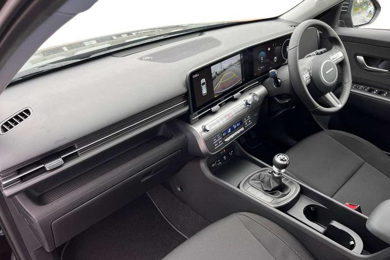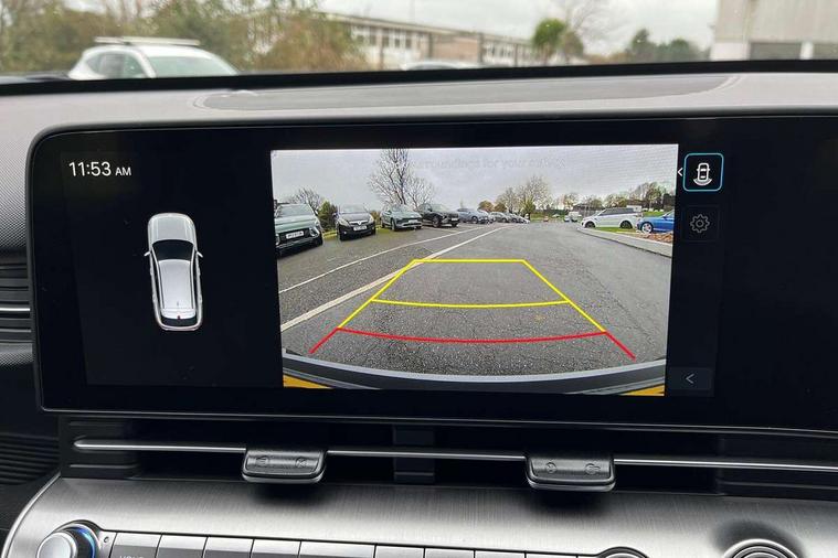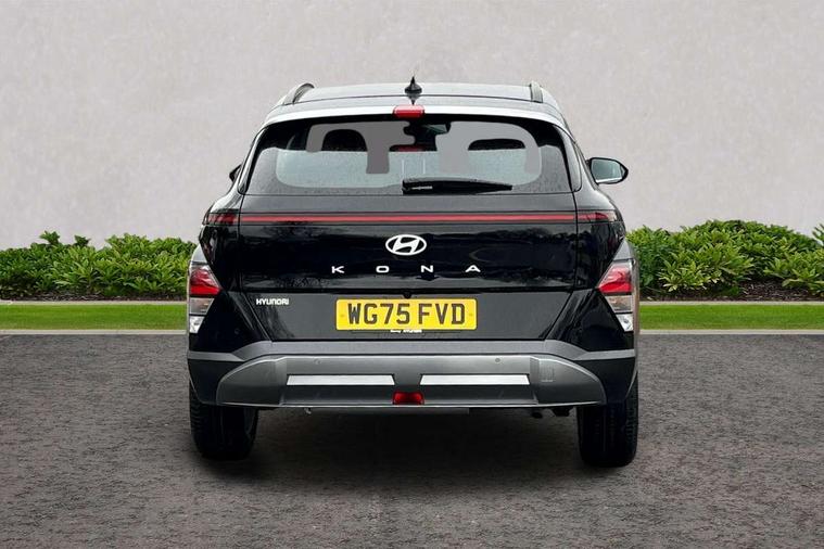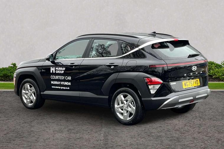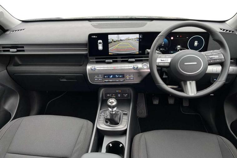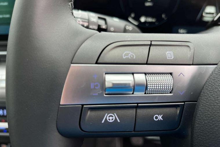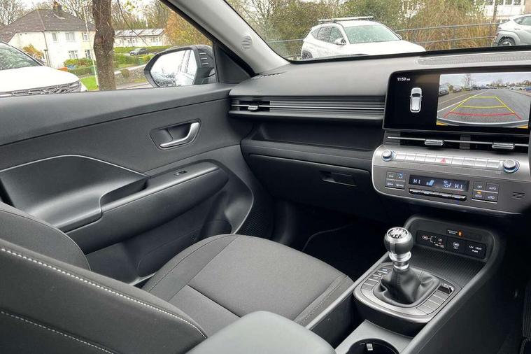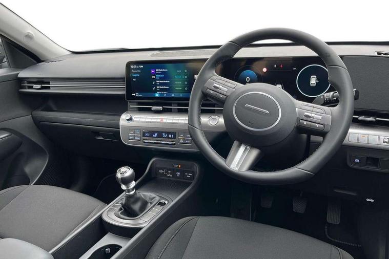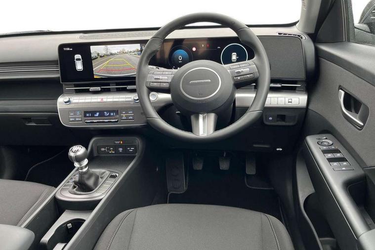 12.25" digital instrument cluster, 12.3" touchscreen centre console display satellite navigation with bluelink, live services and mapcare, Bluetooth connectivity with voice recognition, Cruise control, Driver status monitor (DSM), Driver supervision instrument cluster with 12.3" LCD display, eCall emergency call system, Feature on demand - Enabled, Forward collision avoidance assist (FCA 1.5) - Car, pededstrian, cycle and junction turning, Front parking sensor, Intelligent speed limit assist, Lane follow assist, Lane keep assist, Leading vehicle departure alert (LVDA), Parking system with rear camera and guidance system, PAS, Rear parking sensor, Rear view camera with dynamic guidelines, Roadside assistance, Wireless Smartphone Integration includes Apple CarPlay and Android auto, 2 front USB C and 2 rear USB C charging points, DAB Digital radio, Speakers - Front, rear and tweeters, Steering wheel audio, phone and cruise controls, Auto dimming rear view mirror, Automatic headlights with dusk sensor, Automatic windscreen wipers with rain sensor, Black painted wheel arch inserts, Body colour exterior door handles, Body coloured door mirrors, Door mirror LED indicator lights, Electric front windows with anti-trap mechanism and one touch control, Electric rear windows, Electrically adjustable and heated door mirrors, Full LED MFR headlights, LED daytime running lights, LED taillights, LED upper and lower rear lights, Power folding door mirrors, Rear roof spoiler with integrated LED brake light, Rear side wing doors, Rear skid plate - silver, Rear wiper, Roof rails, Tinted glass in front and rear doors, Windscreen auto defog function, 12V power outlet in front console, 2 zone climate control, 3 seat bench in 2nd row, Adjustable head restraints, Cloth upholstery, Driver and passenger front seat pockets, Driver's seat lumbar support, Driver/passenger manual seat height adjustment, Driver/passenger sunvisors and illuminated vanity mirrors, Floor mats, Height/reach adjustable steering column, Leather steering wheel, Leather wrapped steering wheel and gear knob, LED centre interior light, LED front interior light, Luggage compartment LED lighting, Luggage shelf, Metal paint effect interior door handles, Rear centre armrest with cupholders, Single front passenger seat, Vertical adjustment rear head restraints, Trailer wiring package - Kona, Airbag - front, front side, curtain and centre front airbag, Anti-lock brake system (ABS), Childproof rear door locks, Downhill brake control, Electric parking brake, Electronic stability control, Fixed 3 point for second row centre passenger seatbelt, Hill start assist control (HAC), Rear seat alert, Tyre pressure monitoring system, Alarm/immobiliser, Rear occupant alert, Remote central locking, Smart key with keyless entry and start/stop button, Five year annual vehicle health checks, 17" Alloy wheels, Temporary mobility kit (TMK),