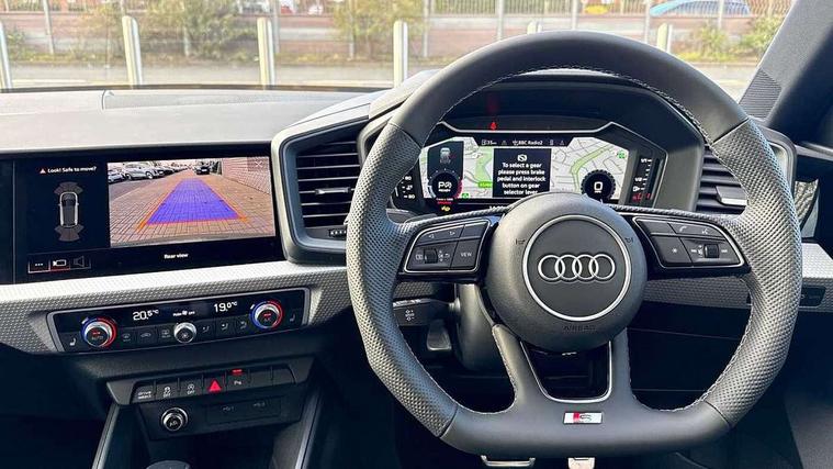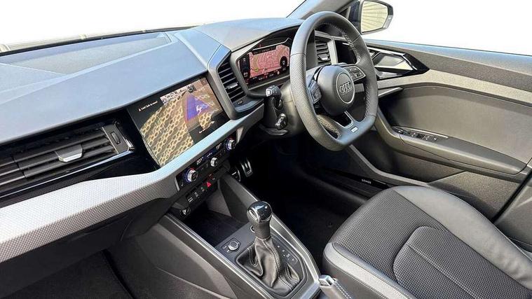 10.25" Digital instrument cluster display classis style instrument dials + speed, odometer, time, outside temperature, telephone menu + fuel level warning, Advanced driver attention and drowsiness monitor, Audi connect emergency call and service, Audi drive select, Audi remote connect and control, Bluetooth interface, Camera based traffic sign recognition, Cruise control, Driver's information system, Electromechanical power steering, Lane departure warning system, Rear parking sensor, Service interval indicator, Smartphone interface, Speed limiter, Start stop system with recuperation, Voice control system, Washer fluid level indicator, Sports suspension, 2 x USB type C connection points, 6 loudspeakers, DAB Digital radio, MMI radio plus with 10.1" colour MMI display screen and MMI touch, Auto dimming rear view mirror, Black door mirror housings, Black side skirts, Body coloured bumpers, Door sill trims with aluminium inlays and logo, Electric front and rear windows, Electrically adjustable, heated, folding door mirrors with integrated LED side indicator, Front side air inlets in grained matt black and C frame in anthracite black, Front wing badges, Headlight cleaning system, Heat insulating glass windscreen and side windows, Heated rear windscreen, High level LED brake light, LED daytime running lights, LED headlights with range control LED rear lights + dynamic rear indicators, Light and rain sensors, Privacy glass, Radiator grille and rear diffuser in matt anthracite black, Radiator protective grille frame in matt aluminium silver, Rear fog lights, Rear side wing doors, Rear wiper, Side front spoiler lips in grained matt black, 12V socket in centre console with two cup holders, 3 rear seats with headrests, 3 seat bench in 2nd row, 3 spoke flat bottomed multi-function plus leather steering wheel with S badging, grips in preforated leather, contrast stitching and paddle shift, 40:60 Split folding rear seat or fully collapsed, Black carpets, Black cloth headlining, Front and rear velour black floor mats with contrast stitching in fine silver, Front head restraints, Front passenger seat, Height and reach adjustable steering wheel, Interior lighting includes roof module, front and rear reading lights and right luggage compartment lighting, ISOFIX child seat mounting for front passenger and outer rear seats including top tether attachment point of outer rear seats, Leather gear knob with aluminium trim, Leather handbrake grip, Manual air conditioning, Manual height adjustable for driver and front passenger seat, Manually adjustable lumbar support in front seats, Stainless steel pedals, Ambient lighting package - A1, Black styling pack - A1 Sportback Black Edition, Luggage compartment pack - A1, 3x3 point rear seatbelts, Audi pre-sense front with pedestrain and cyclist recognition, Brake assist function, Driver and front passenger airbag with front side and head airbags, Electronic Stability Control including ABS, EBD, ASR and EDL, Front passenger airbag deactivation switch, Hill hold assist, Manual rear child locks, Seatbelt height adjustment for front seats, Seatbelt monitoring, Tyre pressure loss indicator, Warning triangle and first aid kit, Anti theft alarm, Anti theft wheel bolts, Immobiliser, Remote control key with safelock, Aluminium trim for control switches, air vents and digital instrument cluster, Black dashboard, Silver grey inlays polygon structure in diamond paint finish, Structured grey accent surfaces insert of air vents, interior door handle recesses and centre console in quartz paint finish,