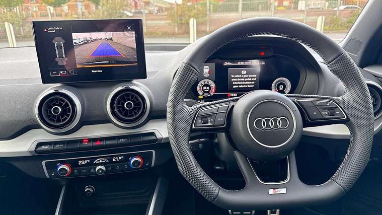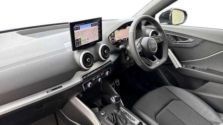 3D map display, Audi connect navigation and infotainment includes innovative services, Audi connect remote and control connects your vehicle to your smartphone, Audi drive select: S tronic - power steering assistance + engine + gearshift (modes: comfort, auto, dynamic, efficiency, individual), Audi smartphone interface - Apple carplay/Android Auto, USB connect, 2xSDXC card readers, voice control for navi, telephone, music and 3rd party apps, Audi virtual cockpit, Automatic start/stop system with recuperation, Bluetooth interface includes bluetooth audio streaming, Camera based traffic sign recognition, Cruise control, Distraction and Fatigue warning, E-call, Jukebox hard drive memory for music (10GB), Lane departure warning, MMI navigation plus with 8.8" touchscreen, Natural voice recognition, Power operated tailgate, Progressive steering, Rear parking sensors, Sport suspension, 6 passive loudspeakers, DAB Digital radio, USB type C port, Audi beam, Auto dimming rear view mirror, Black window trims, Bumper in full body colour paint finish, Electrically adjustable, folding, auto dimming and heated door mirrors with integrated LED side indicators, Front windscreen with grey tinted sunband, LED daytime running lights, LED headlights with dipped beam, high beam, position lights, indicators, LED rear lights, LED third brake light, Privacy glass - dark tinted rear and rear side windows from B-pillar backwards, Rear side wing doors, Rear wiper, Variable front intermittent wipers, Wheel arch trims in manhattan grey, 12V socket in front, 3 seat bench in 2nd row, 3 spoke flat bottomed multi-function leather sport steering wheel with gear shift paddles with S logo, 4-way electric lumbar support for front seats including manual seat height adjustment for both front seats, 60/40 split folding rear seat bench, Black carpets, Black cloth headlining, Front and rear head restraints, Front centre armrest, Front sport seats, Front/rear floor mats, Height/reach adjust steering wheel, Illuminated door sill trims with S logo, ISOFIX child seat mounting in front passenger and rear outer seats, Manual air conditioning, Single front passenger seat, Stainless steel pedals, Black styling pack - Q2, 3x3 point rear seatbelts, 6 airbags - Front, curtain and front side airbags, Electromechanical parking brake, Electronic stabilisation control including ABS, ASR and EDL, Front passenger airbag deactivation, Hill hold assist, Pre-sense front with pedestrian recognition, Seatbelt monitoring, Tyre pressure warning light with visual and acoustic warning, Warning triangle and first aid kit, Anti theft wheel bolts, Electronically operated child locks, Remote central door locking, Thatcham category 1 alarm, Aluminium interior element, Black dashboard, Gloss black centre console, Matt brushed aluminium trim inlays, Tool kit,