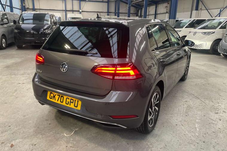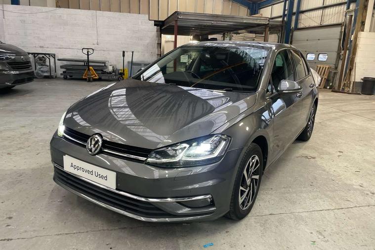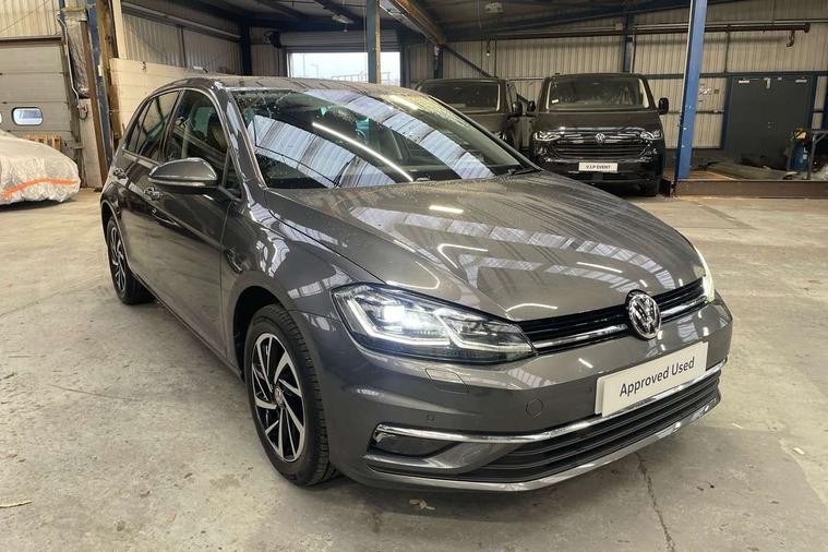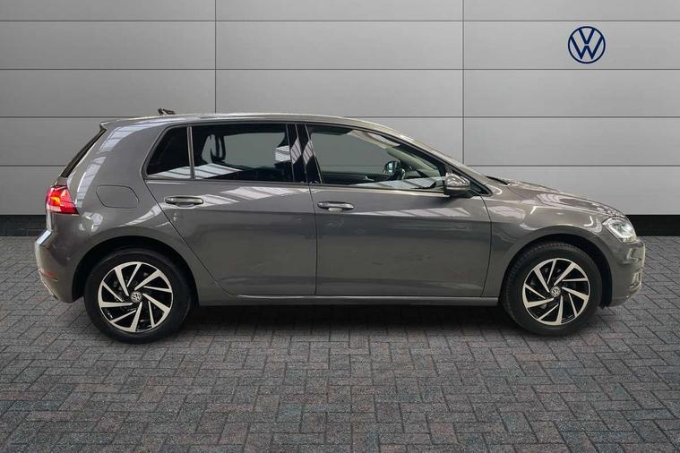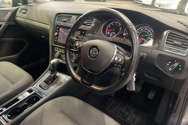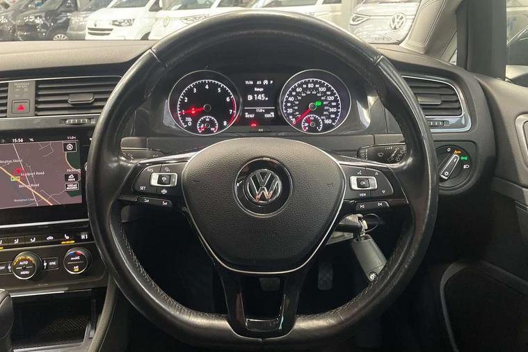 'Lights On' Reminder warning buzzer, ACC - Adaptive cruise control with front assist, forward collision warning, distance monitoring, city emergency brake and speed limiter, Bluetooth telephone and audio connection for compatible devices, Brake pad wear indicator warning light, Driver alert system, Driving Mode Selection with four preset modes - Eco, normal, sport or individual modes, Multifunction computer with visual gear change recommendation for fuel consumption, Power assisted speed sensitive electro-mechanical steering, Push tank flap, Speed limit display, Speedo, rev counter, electronic odometer, trip, service interval display, exterior temperature and fuel gauge, Stop/start system, Think blue trainer driver tips and journey analysis, Warning buzzer and light for front seatbelts unfastened, Battery regeneration during braking, XDS electronic differential lock, Composition media system, DAB Digital radio receiver, Driver Personalisation profile selection, MP3/WMA compatability, Multi device interface (MDI) via USB connection, Premium USB cable in choice of either Apple or Android smartphone compatibility, SMS Functionality, Title and cover art display, USB and SD card connectivity, Volkswagen media control, Black front air intake and radiator grille with chrome insert, Black rear diffuser, Body colour bumpers, Body colour door handles, Body colour door mirrors with integrated indicators, Dusk sensor + automatic driving lights, Electric front windows, Electric rear windows, Electrically adjustable and heated door mirrors, Fully galvanised body, Heated rear windscreen, High level 3rd brake light incorporating LED Technology, LED front fog lights with static cornering light function, Range adjustable headlights via infotainment system with LED daytime running lights, Rear fog lamp, Rear number plate lights incorporating LED technology, Rear tinted glass 65% light absorbing from B pillar backwards, Rear window aerial, Rear window wash/wipe with intermittent wipe, Reflectors in all doors, Tailgate with integrated rear roof spoiler, Windscreen wipers/ intermittent wipe + 4 position delay, 12V socket in luggage compartment, 3 rear headrests, 4 load lashing points in luggage compartment, 60/40 split folding rear seat backrest, Bag hook in luggage compartment x 2, Climate control - 2 zone electronic air conditioning with automatic air recirculation and allergy filter, Cooled glovebox, Cover for storage compartment in centre, Dust/pollen filter, Front and rear reading lights X 2, Front centre armrest with storage compartment and two rear air vents, Front seat back storage pockets, Grab handles front x 2, rear x 2 with integrated coat hooks, Height and reach adjustable steering wheel, Illuminated vanity mirrors, Instrument lighting white adjustable panel illumination, Interior light delay, Isofix preparation for 2 rear child seats, Load through provision with rear centre armrest and cupholders x2, Luggage compartment lighting, Overhead storage box, Pearl grey headlining, Storage box in luggage compartment, Storage compartment in roof console with cover, Storage compartments in centre console, Storage compartments in front doors, Storage compartments in rear doors, Stowable luggage compartment cover, Sun visors, Variable boot floor, height adjustable and removable, Convenience Pack - Golf, Mirror pack - Golf, Winter pack - Golf, 3 rear three point seatbelts, Airbags - Driver's and front passenger's, curtain airbag, Driver's knee, front side impact and passenger's airbag deactivation switch, Anti-lock Braking System (ABS) with Hydraulic Brake Assist (HBA), Automatic post collision braking system, Child locks on rear doors, Driver/Passenger optimised head restraints, Electronic parking brake with auto hold, Electronic stability control (ESC) including Electronic differential lock (EDL) and ASR (Traction control) with deactivation via infotainment system, Front ventilated disc brakes and rear disc brakes, Pre crash preventive occupant protection, Three point height adjustable front seatbelts with tensioners, Tyre pressure loss indicator, Alarm with interior protection and deactivation via infotainment system, Electronic engine immobiliser, Brushed dark silver decorative inserts in dash and door panels, Chrome plated air vent surround, Chrome-plated light switch surround, Polar night black decorative inserts in centre console, Steel space saver spare wheel,