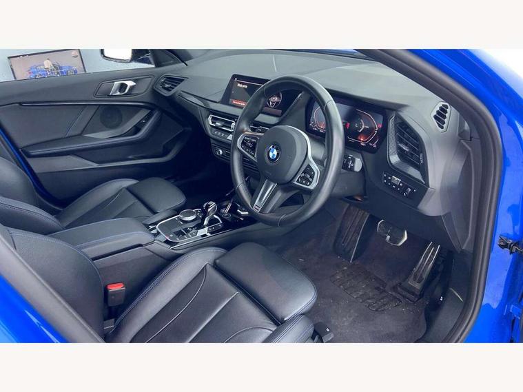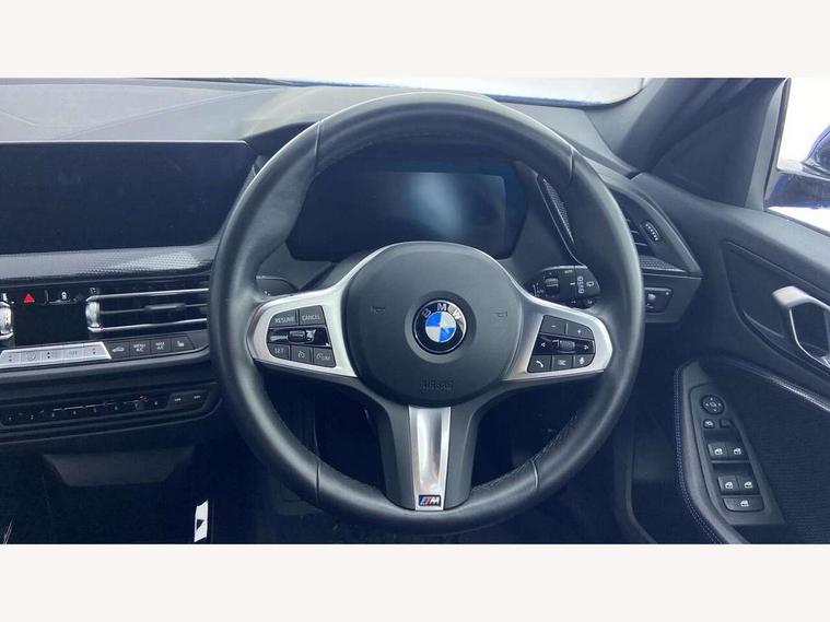 Active guard plus, Attentiveness assist, BMW ConnectedDrive online services, BMW Teleservices, Check Control warning system for monitoring of lights and door/luggage compartment open warning, Cruise control with speed limiter, Eco pro mode, Front axle single joint with specific axle kinematics to minimise drive influences on steering + provide increased rigidity agile driving behaviour, Integrated owners handbook, Lane departure warning system, Oil sensor for level and grade, On board computer, Optimum shift indicator, Personal Profile, Pull away assistant, Rigidly mounted rear subframe - Multi link construction with separate spring / damper configuration and excellent driving characteristics, Speed limit Info including no-overtaking indicator, Aluminium lightweight construction, Anti roll bar front and rear, Balancer shaft, Double VANOS twin scroll turbocharging system, Drive Performance Control, Electronic differential lock, High precision injection, M sport suspension, Petrol Particulate Filter, Twin tube gas filled shock absorbers with degressive characteristic curve, VALVETRONIC engine management, DAB Digital radio, Auto dimming rear view mirror, Automatic headlight beam throw control, Automatic windscreen wipers and automatic headlight, Body colour door handles, Body colour mirror caps, Body colour roof trims, Chrome 'M' logo side designation, Chrome exhaust twin tailpipes round 90mm in left, Chrome kidney grille frame with Satin Aluminium struts, Direction indicator side lights in exterior mirrors, Electrically adjustable exterior mirror with mirror adjustment switch on drivers armrest and aspheric on driver side, convex on passenger side, Fading support, Folding side mirrors with auto dimming/folding wing mirrors with auto dimming, Follow me home headlights, Front and rear bumper system with replaceable deformation elements, Front and rear electric windows with open and close fingertip control, anti trap facility and comfort closing, Front door sill finishers in black plastic with M designation in metallic look, Green tinted heat protection glazing, High gloss shadowline window frame, Recess cover mirror frames and B/C pillar embelisher trim, High level third brake light, Integrated front windscreen with washer jets, LED daytime running lights, LED eyebrow turn indicators, LED front fog lights, Lightweight engineering, Matt black air guide grilles, Matt black wheel arch trim, Model designation on electric bootlid, Nearside reverse light in rear light cluster, Preparation for high beam assistant, Rear fog lights, Rear side wing doors, Rear window wiper, Shark fin antenna, Trailer stabilisation logic, Visible VIN plate, Welcome lighting, 12V power socket in front centre console with blanking plug, 3 rear seat head restraints, 3 seat bench in 2nd row, 3 spoke sports leather steering wheel with black leather and stitching, pearl chrome decorative finish, specific M Badge, Anthracite headlining, Black boot net with lashing eyes, Cargo function on 2nd seat row, Child seat ISOFIX attachment for two outer rear seats and front passenger seat with anchorage points, Conditioned based service, Driver and front passenger backrest net on rear, Driver and front passenger seat heating, Driver side folding compartment in instrument panel, Folding rear clothes hook, Four grab handles integrated in roof lining, Front and rear door pockets with bottle holders, Front and rear side armrest integrated into door trim, Front armrest, Front sports seats, Glove compartment, Height adjustable front head restraints, Luggage compartment for bag hooks on left and right, foldable luggage compartment liner and four lashing eyelets, Manual adjust steering wheel, Multi-function controls for steering wheel, Single front passenger seat, Storage compartment in centre console, Storage compartment in luggage compartment, Stowage of the parcel shelf in luggage compartment trim, Sun visors with vanity mirrors and insert tab, Two front centre console cupholders, Two zone automatic air conditioning, Type C two USB ports in rear centre console, Velour floor mats, Additional interior lighting pack - 1 Series, BMW live cockpit professional pack- 1 Series, Connected pack professional - 1 Series, Interior lights pack - 1 Series, M Sport exterior styling aerodynamics pack - 1 Series, 2 tone horn, 3 point seatbelts on all seats, front pyrotechnic belt tensioners, stopper and belt force limiters, rear coded belt buckles, Airbags - Front driver/passenger, front and rear curtain head protection, front side, manual deactivation of front passenger airbag, Anti lock braking system (ABS) with brake assist, BMW emergency call, Brake drying, Braking readiness, Child proof locking system in rear door, City braking function, Comfort modes, Cornering brake control, Crash sensor activating of airbags, Unlocking doors, hazard warning lights, fuel cut off, interior lighting+activation of safety battery terminal clamp, Driver and front passenger seat belt security check, Dynamic stability control + (DSC+), Dynamic Traction Control - DTC, Electrically operated hand brake including automatic hold function, Front and rear disc brakes, Seatbelt warning, Side impact protection, Tyre pressure monitoring system, Warning triangle and first aid kit, Central locking switch for all doors, fuel filler cap and luggage compartment, Deadlocking function system to all doors, Drive away locking system on all doors and luggage compartment with de-activated in iDrive settings, Locking wheel bolts, Remote control with integrated key with High-gloss Black inlay and M designation and 1 button for open/ close lock, window, open luggage compartment, Start/stop button illuminated in centre console with keyless engine start and auto start stop deactivation button, Thatcham Cat.1 alarm and immobiliser, Wheel slip limitation close to the actuator (ARB), Contrast stitching on instrument panel, 18" Burnished M double spoke bi-colour alloy wheels finished in orbit grey - styl