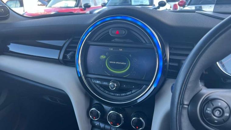 Acoustic seat-belt warning, Brake fluid level warning light, Brake pad wear indicator warning light, DTC - Dynamic traction control, Exterior temperature gauge, MINI TeleServices, Oil level indicator, On board computer, Rear view camera, Service interval indicator, Servotronic PAS, Stop/start button, Electronic differential lock, Performance Control, Auxiliary input socket, DAB digital radio module, Radio visual boost with MINI Connected, Anti dazzle mirror, Anti trapping/one touch open close front windows, Body coloured bumpers, Chrome bezels around rear lights and headlights, Chrome door handles, Chrome exhaust tailpipe, Chrome plated fuel cap, Chrome plated radiator grille, Electric front windows, Electrically adjustable door mirrors, Follow me home headlights, Heated door mirrors, Heated rear window with auto timer, Heated windscreen washer jets, High gloss black tailgate handle, Honeycomb radiator grille, Metal look door sill finishers, White indicator lights, 2 rear head restraints, 4 boot load lashing points, 50/50 split folding rear seats, 6-way manually adjustable driver's seat, Active carbon filter, Auxiliary socket in centre console storage compartment, Centre console storage, Driver/passenger sunvisors and vanity mirrors, Easy entry seats, Front and rear cupholders, Front head restraints, Front sports seats with front seat backrest storage nets, Gear/selector and handbrake in artificial leather, Glovebox, Internal chrome door handles, Isofix child seat preparation, Luggage compartment lighting, Reach + rake adjustable steering column, Storage compartments in doors, Toolkit in luggage compartment, 3 point seatbelts, ABS/EBD, ASC+T, CBC - (Cornering brake control), Crash Sensor - activates hazard/interior lighting + unlocks doors, Driver and passenger airbags, Driver/front passenger side airbags, DSC - Dynamic Stability Control, Fuel cut off safety device, Head airbags, Hill start assist, Passenger airbag deactivation system, Seatbelt pretensioners, Tyre pressure warning, Drive away door locking, Keyless Start, Locking wheel bolts, Remote central locking/doors+fuel cap+tailgate, Second remote key, Thatcham category 1 alarm + immobiliser,